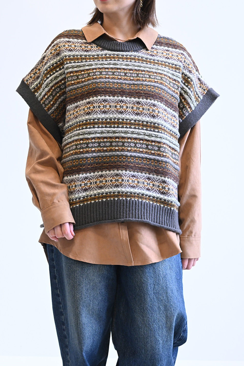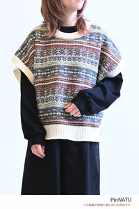 着るだけで秋冬らしさがぐっと高まる、ノルディック柄のジャガードニットベスト。