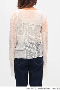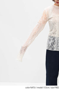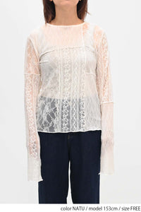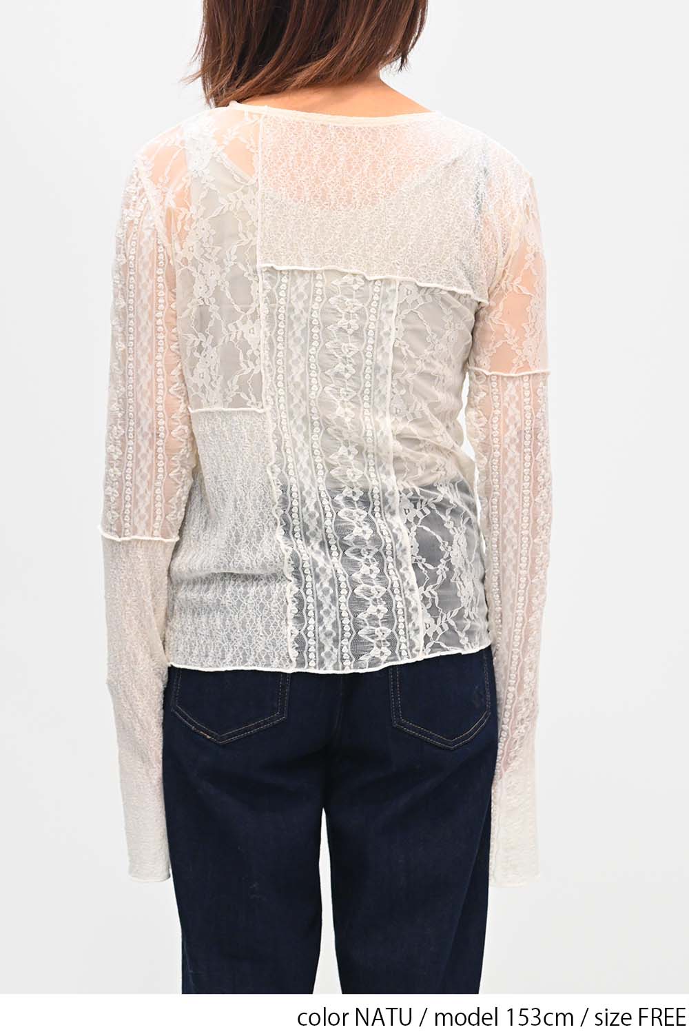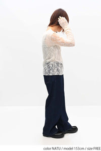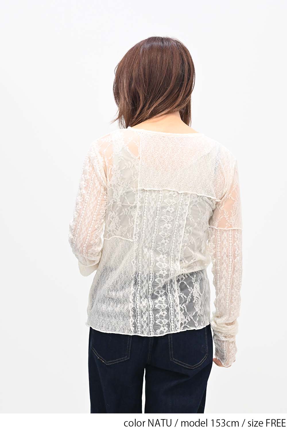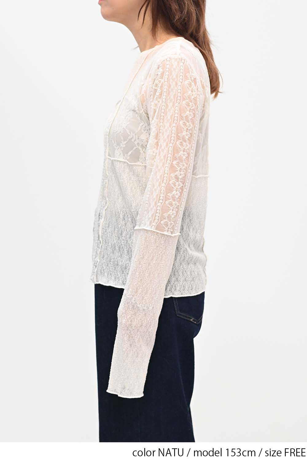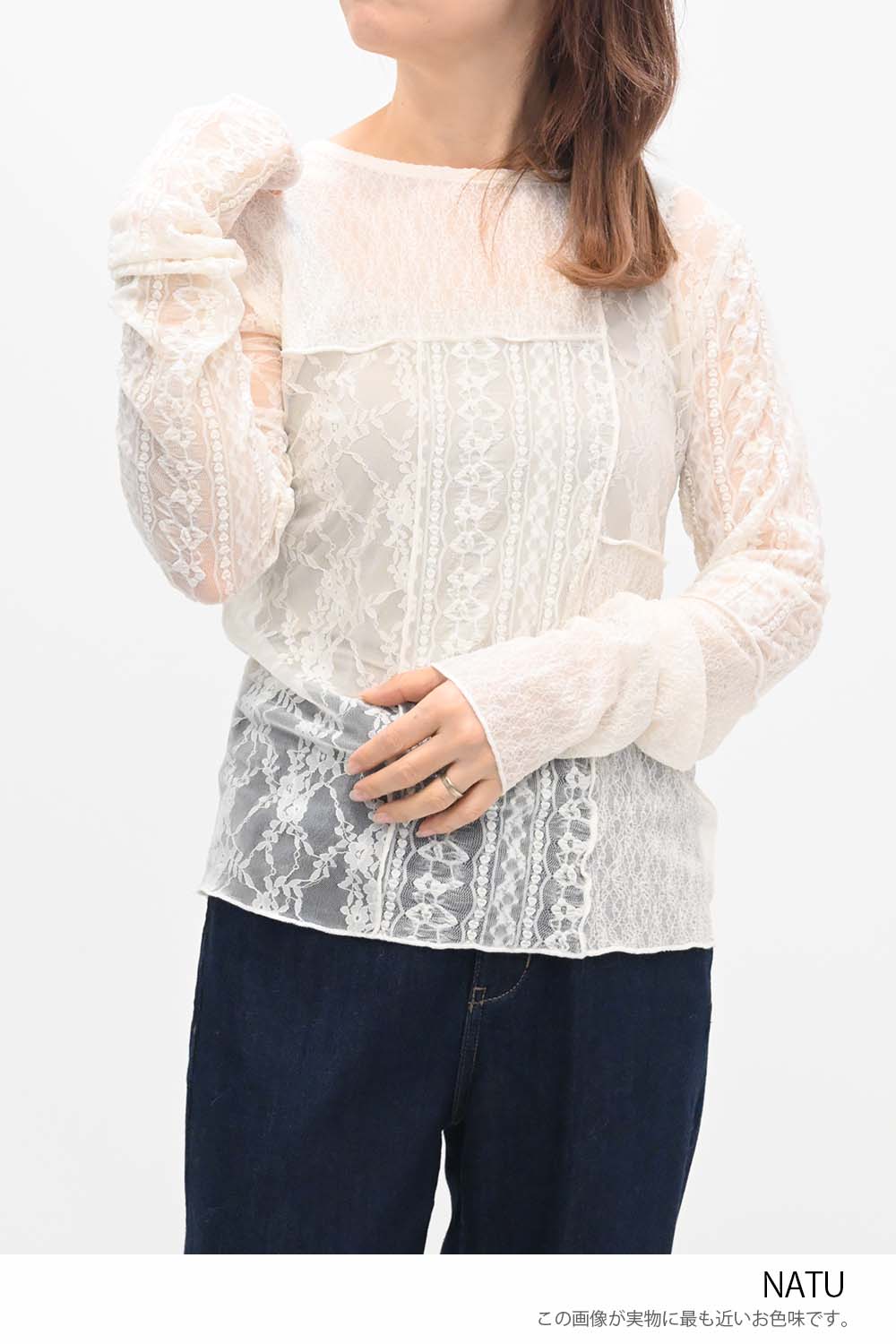 レースの透け感が女性らしいエアリーな印象を引き立てます。