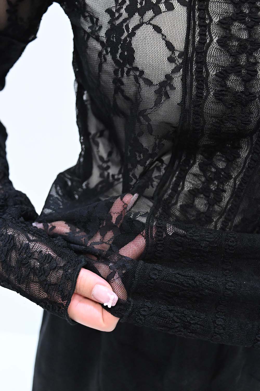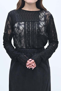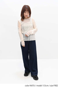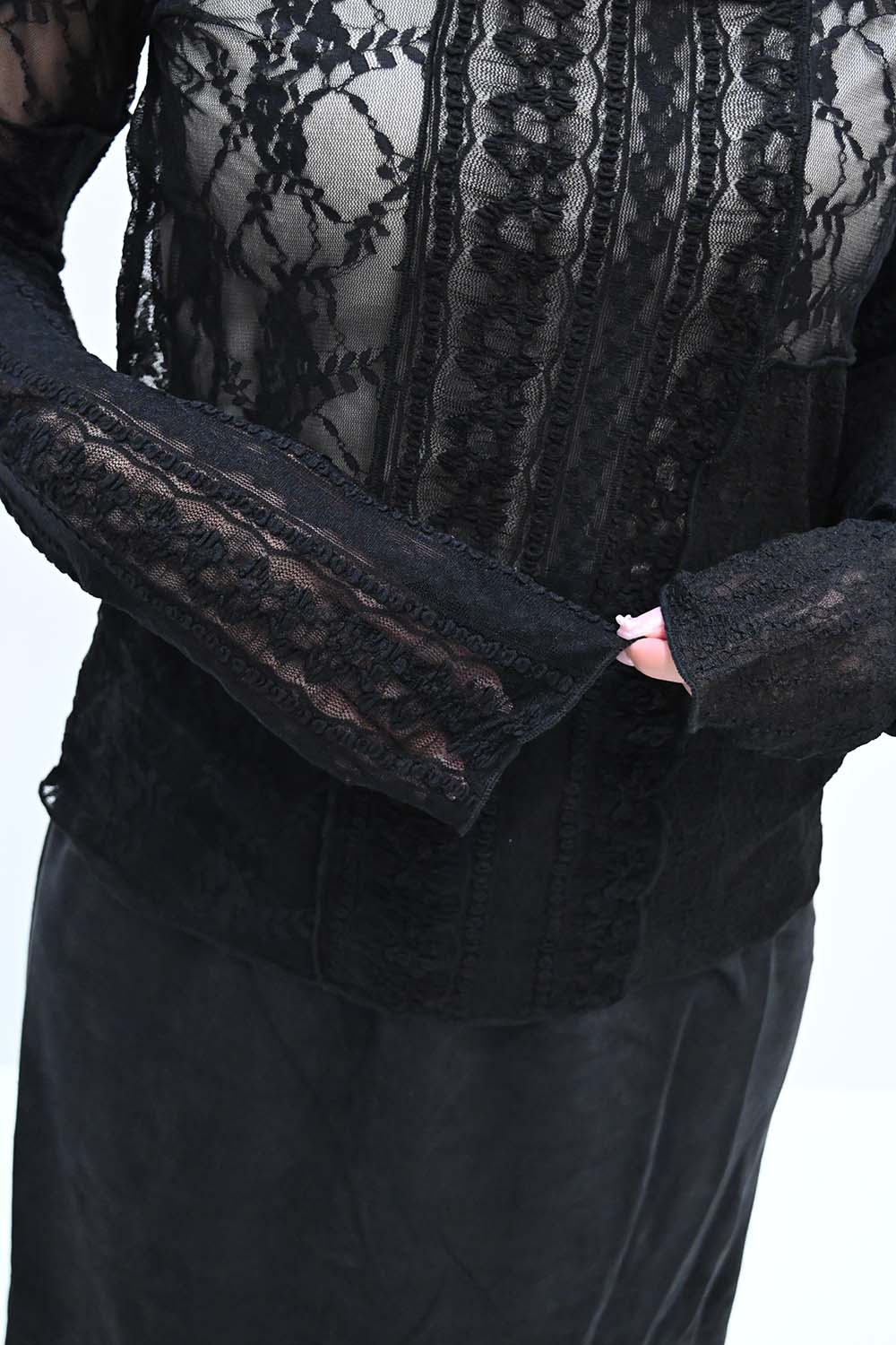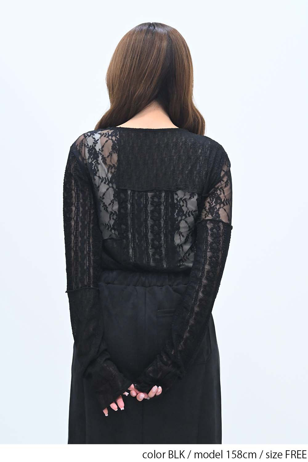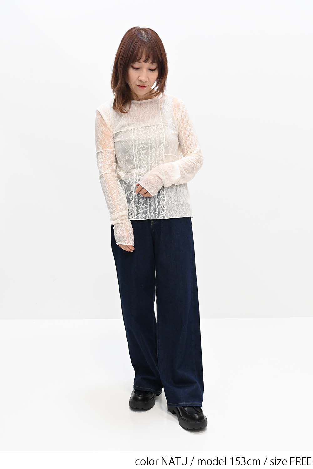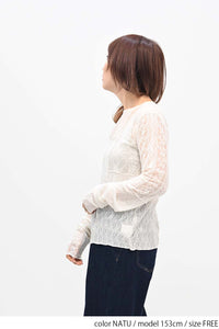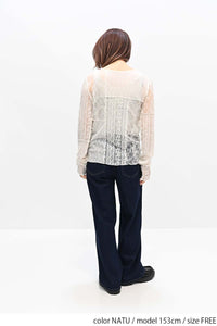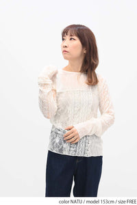 レースの透け感が女性らしいエアリーな印象を引き立てます。
