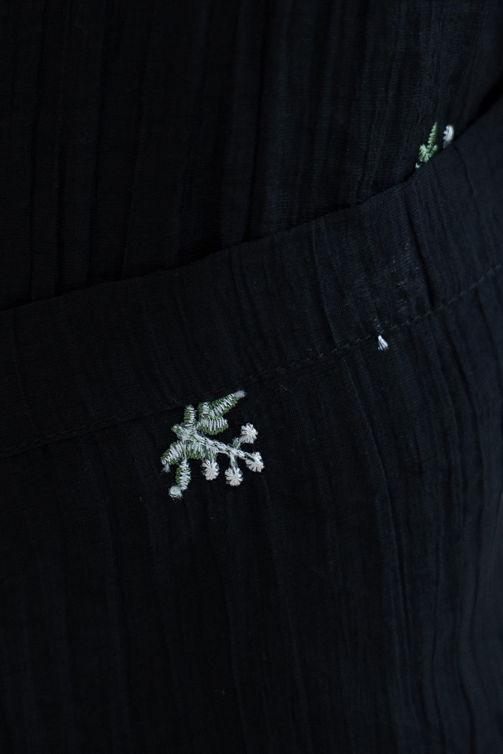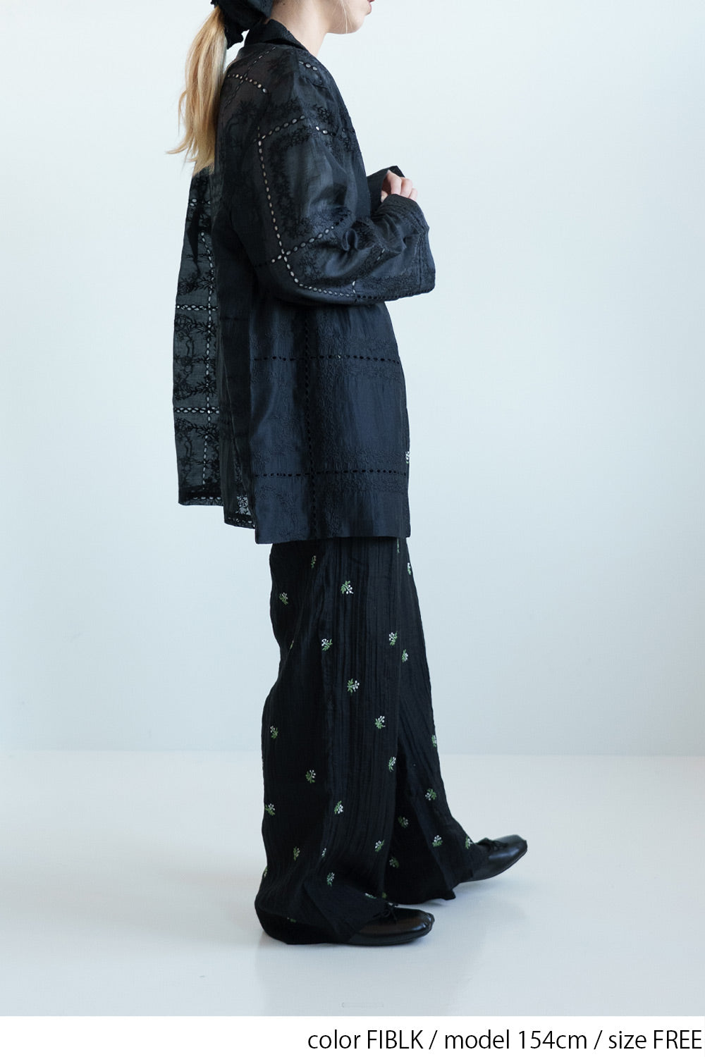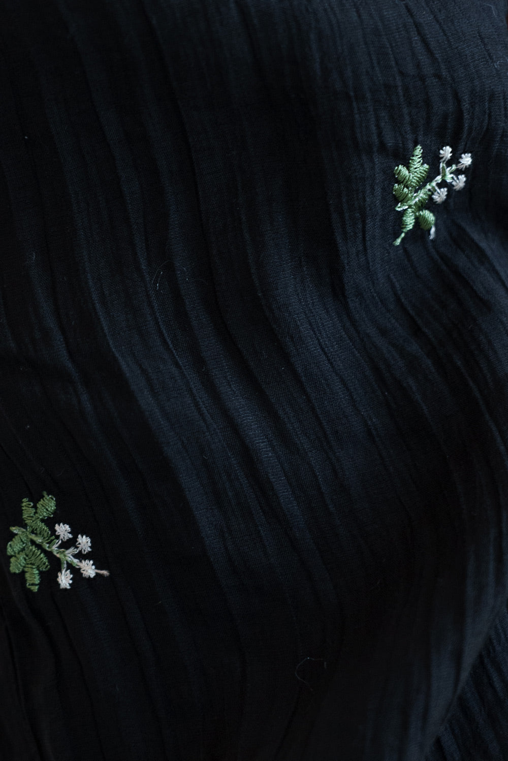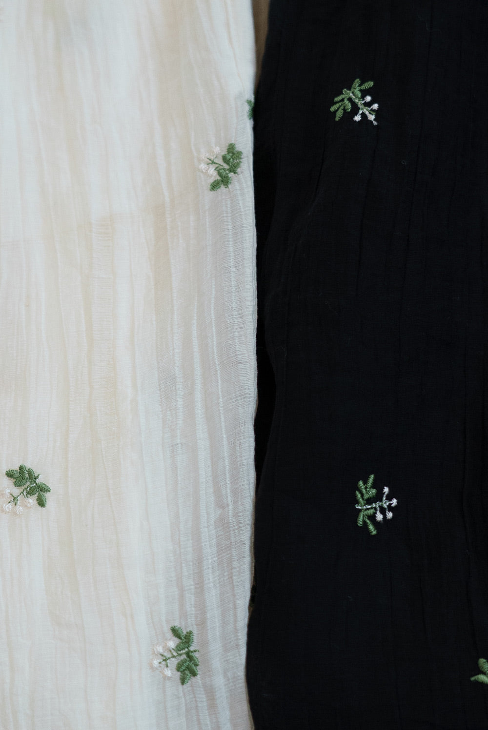 軽やかで透け感のあるシアー生地に小花刺繍をあしらいました。