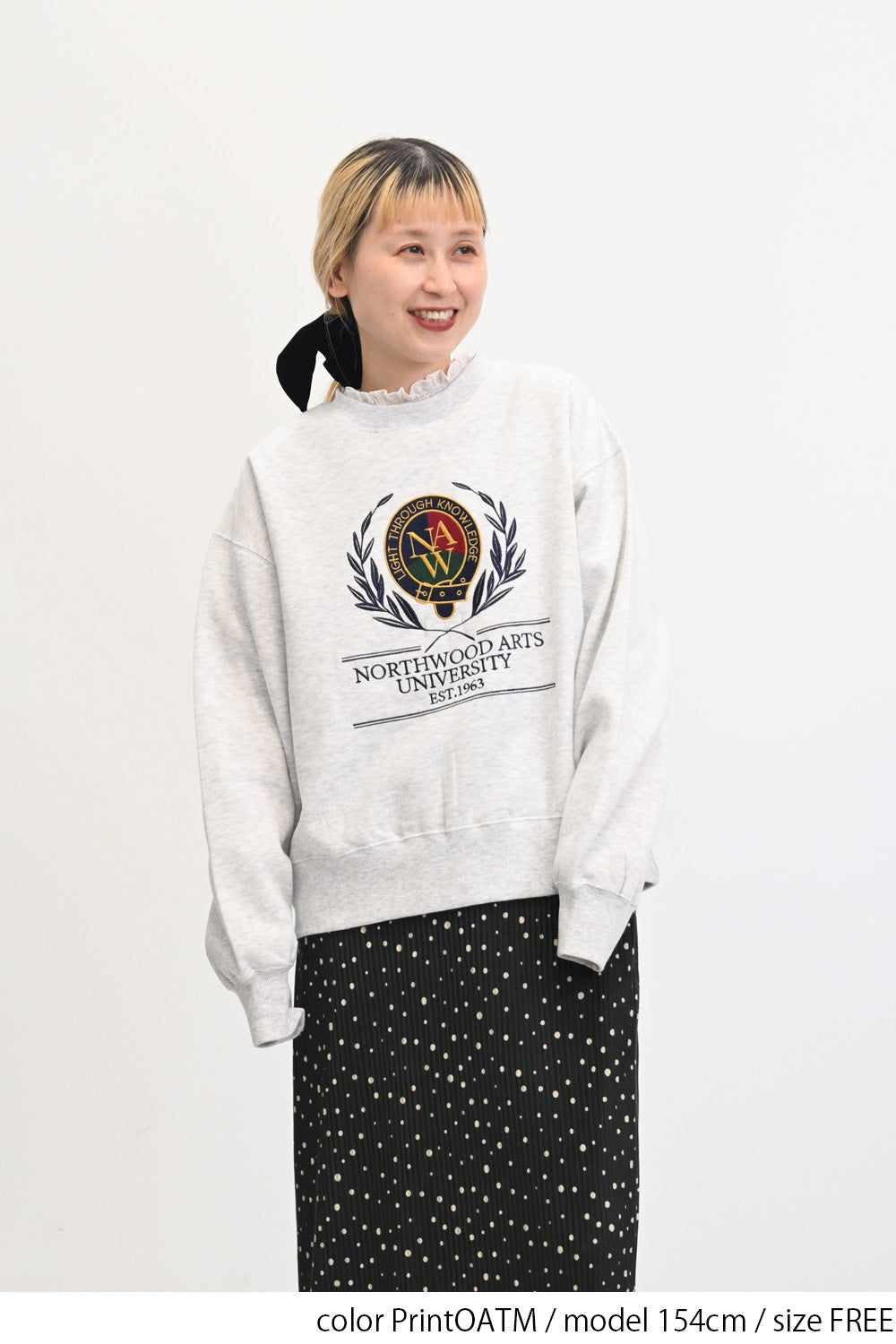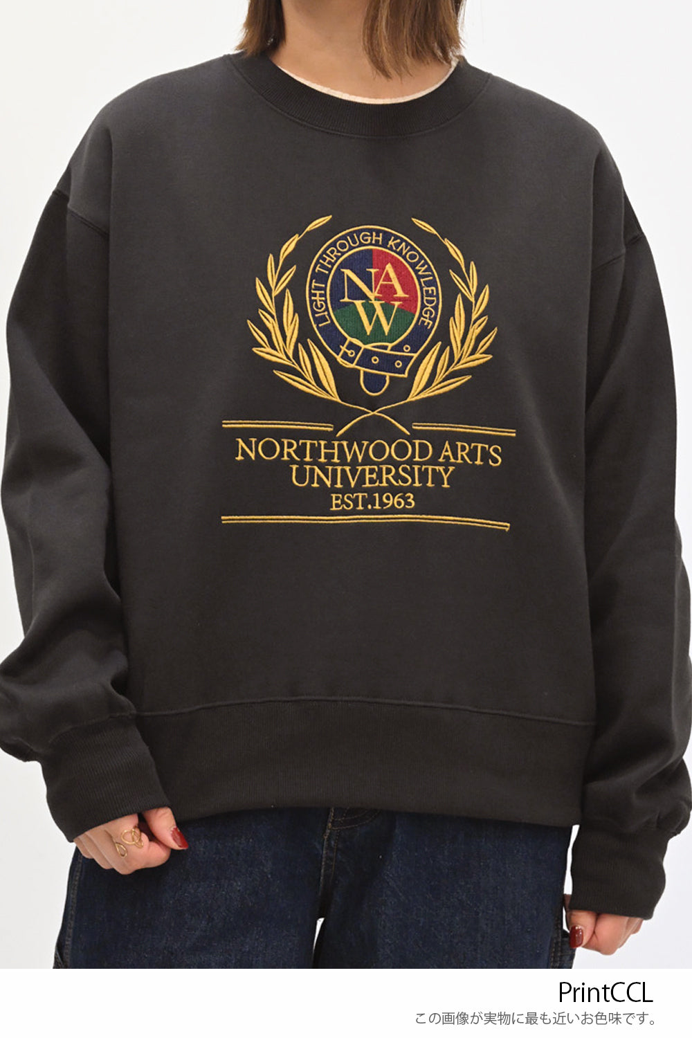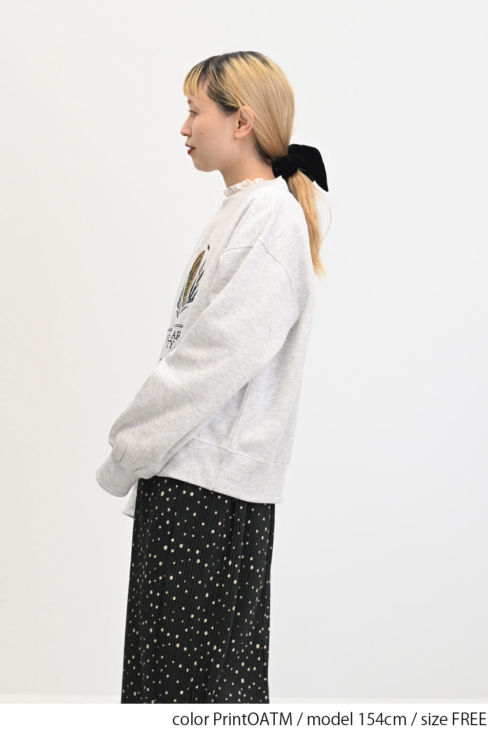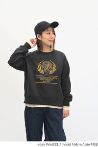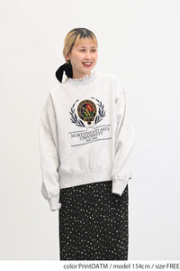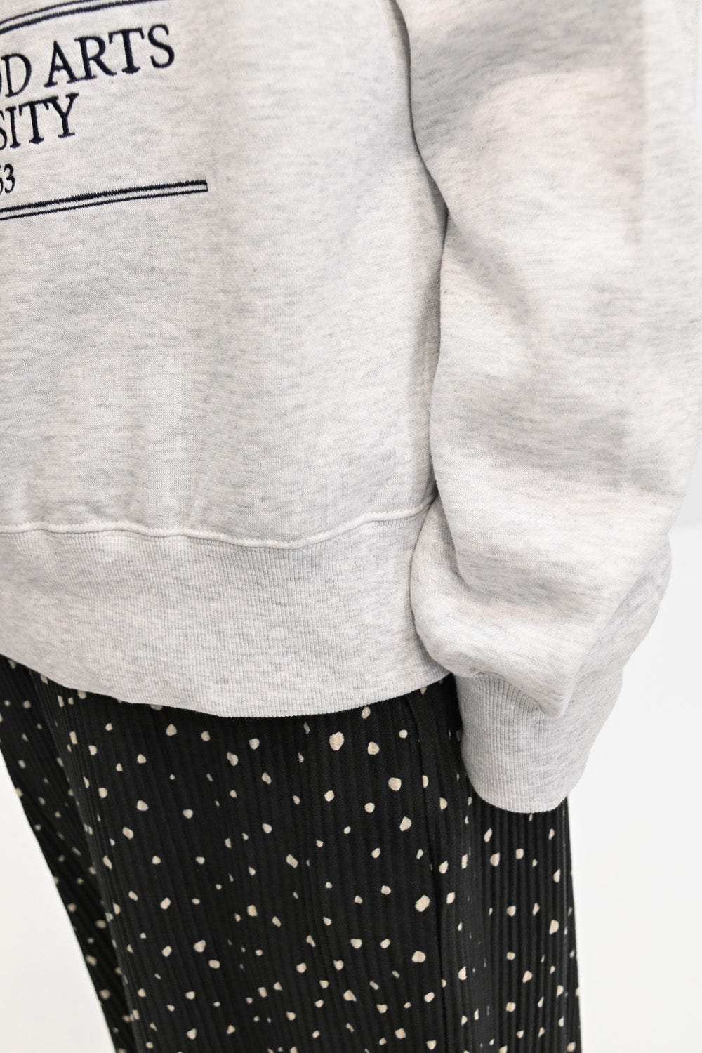 フロントに施されたエンブレム刺繍がさりげないアクセントになった、裏起毛プルオーバー。