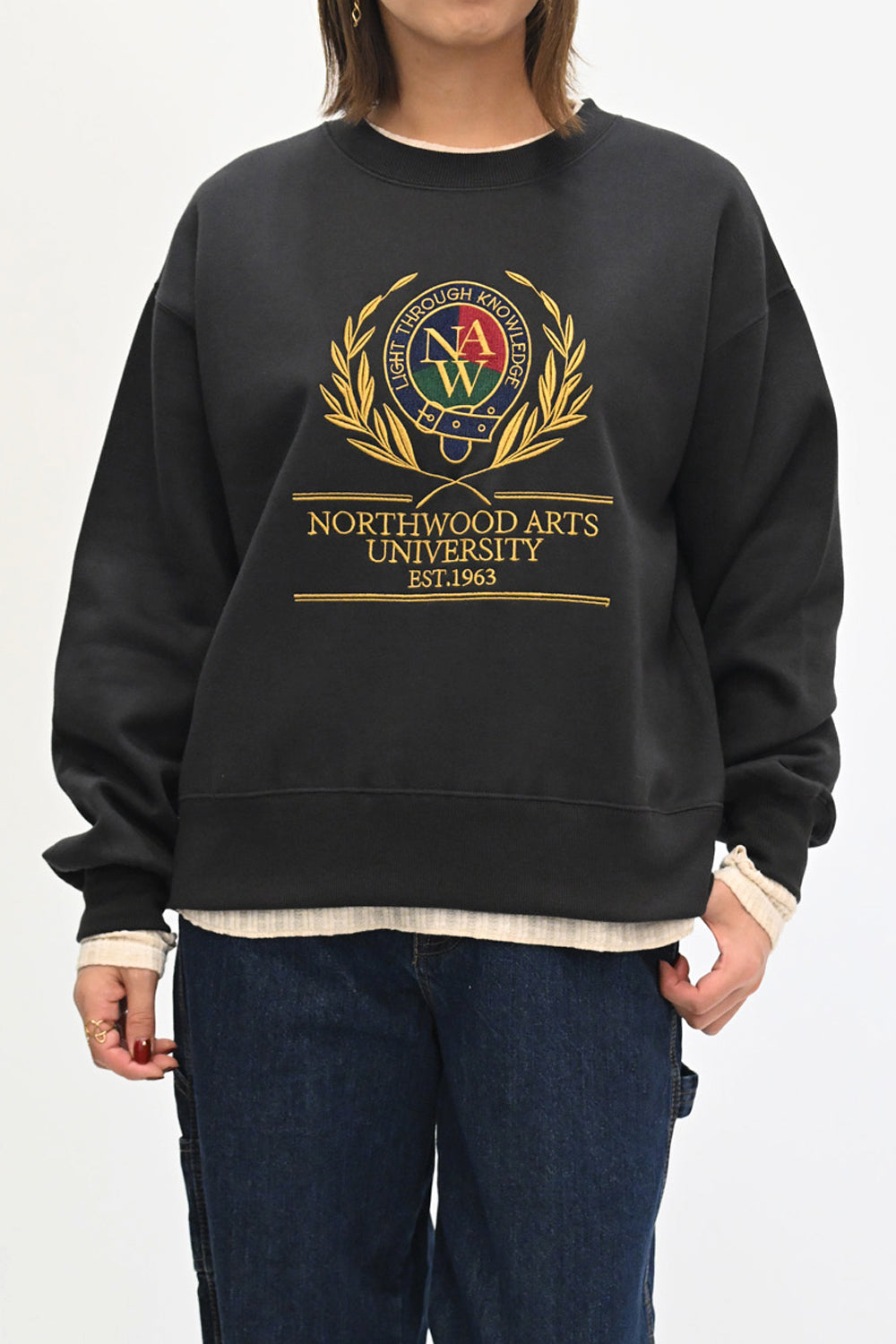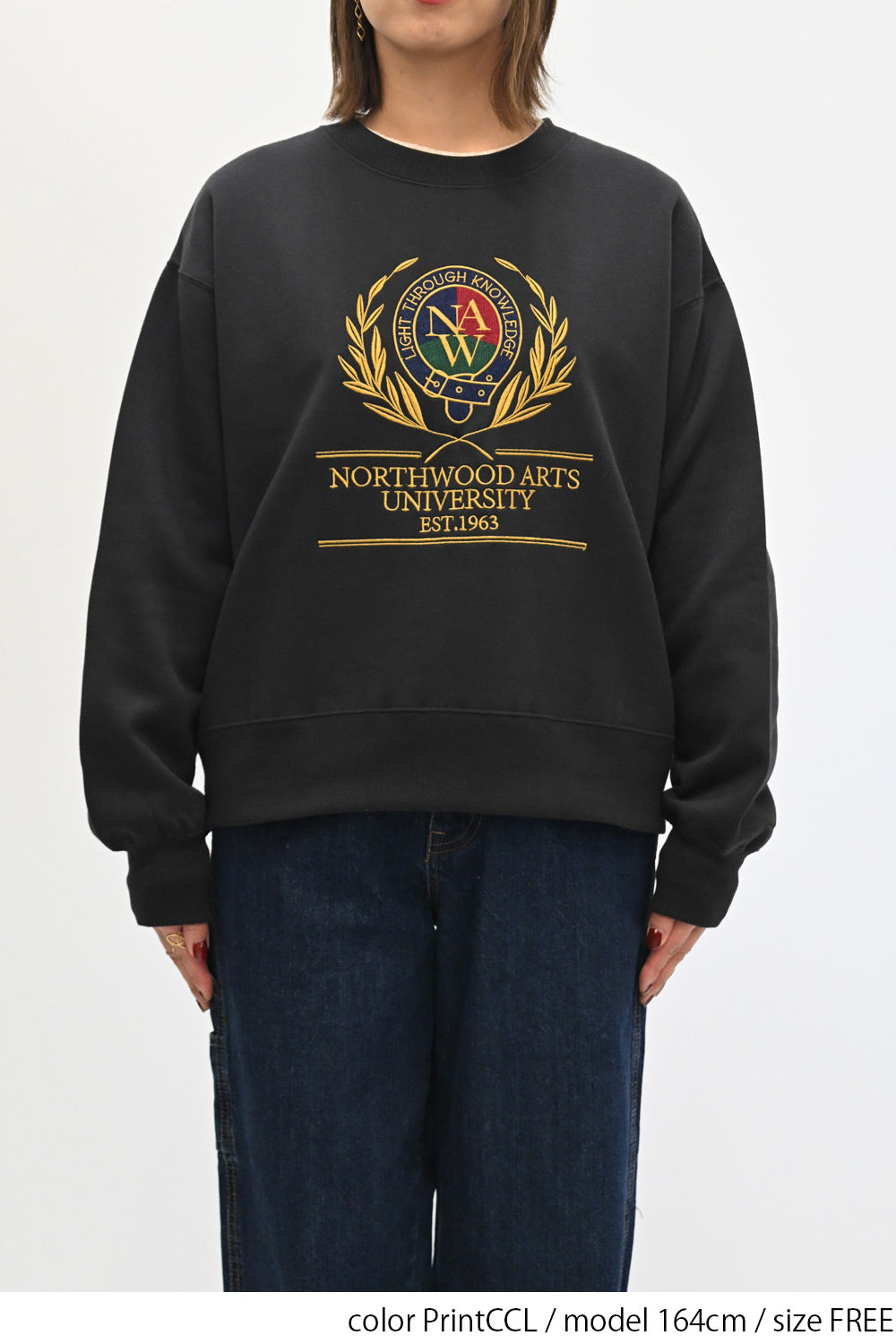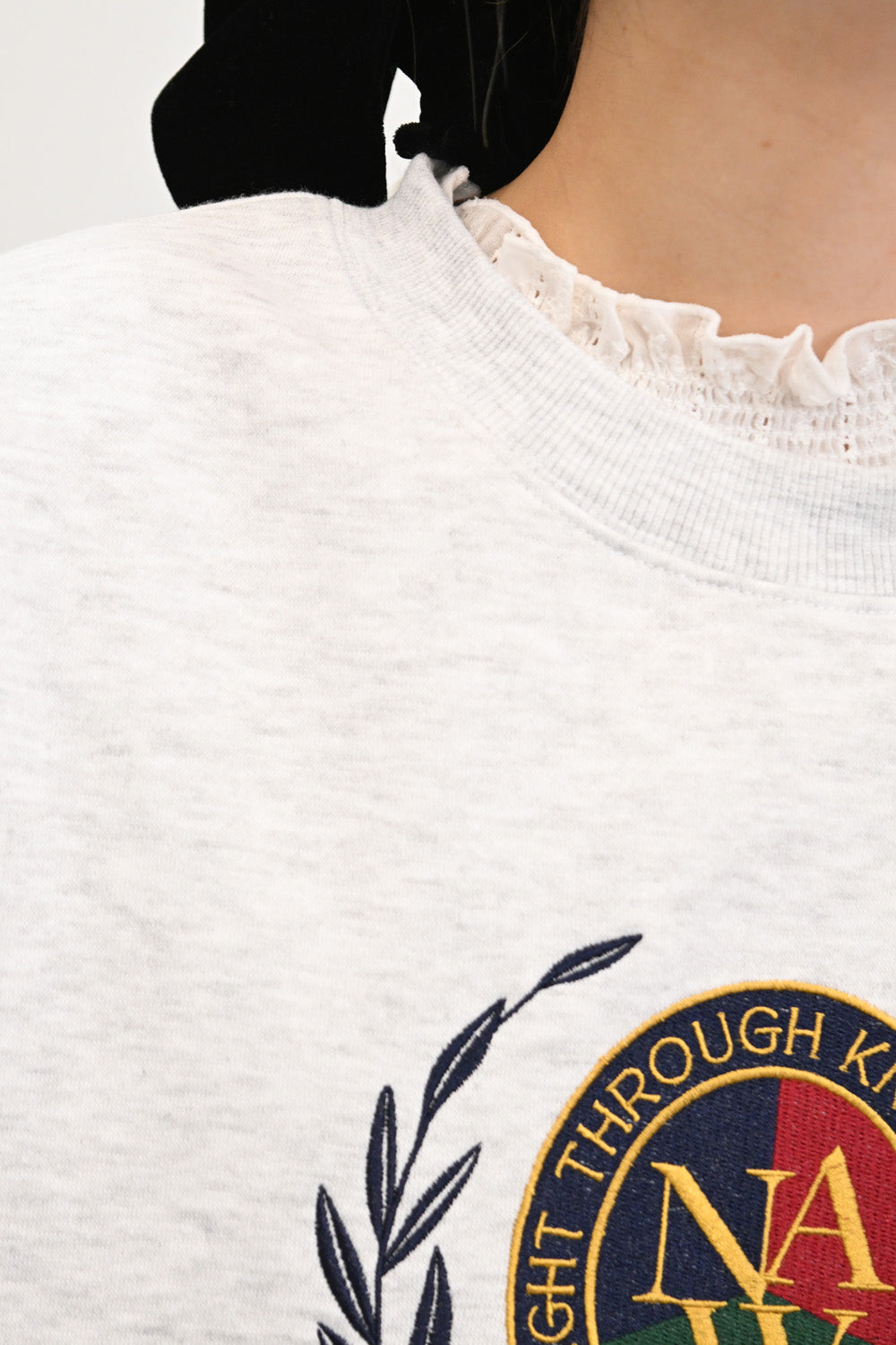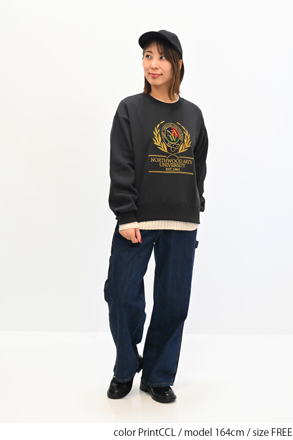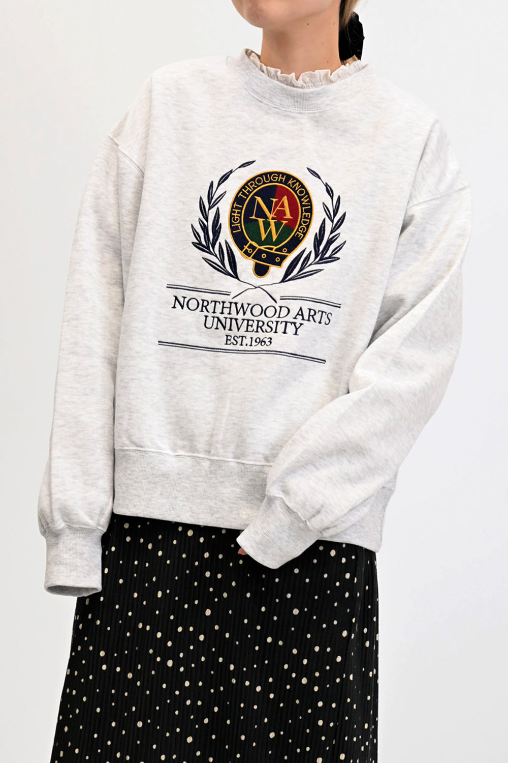 フロントに施されたエンブレム刺繍がさりげないアクセントになった、裏起毛プルオーバー。