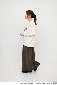 ワイドパンツやスカートを合わせた、ゆるっと可愛いスタイリングがおすすめ。