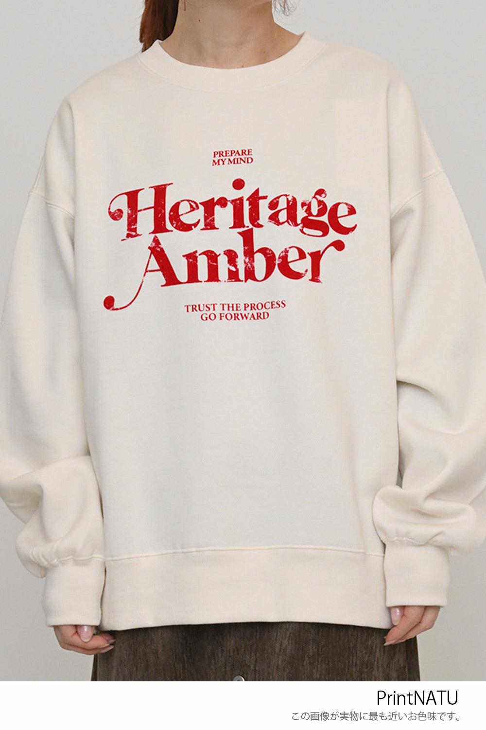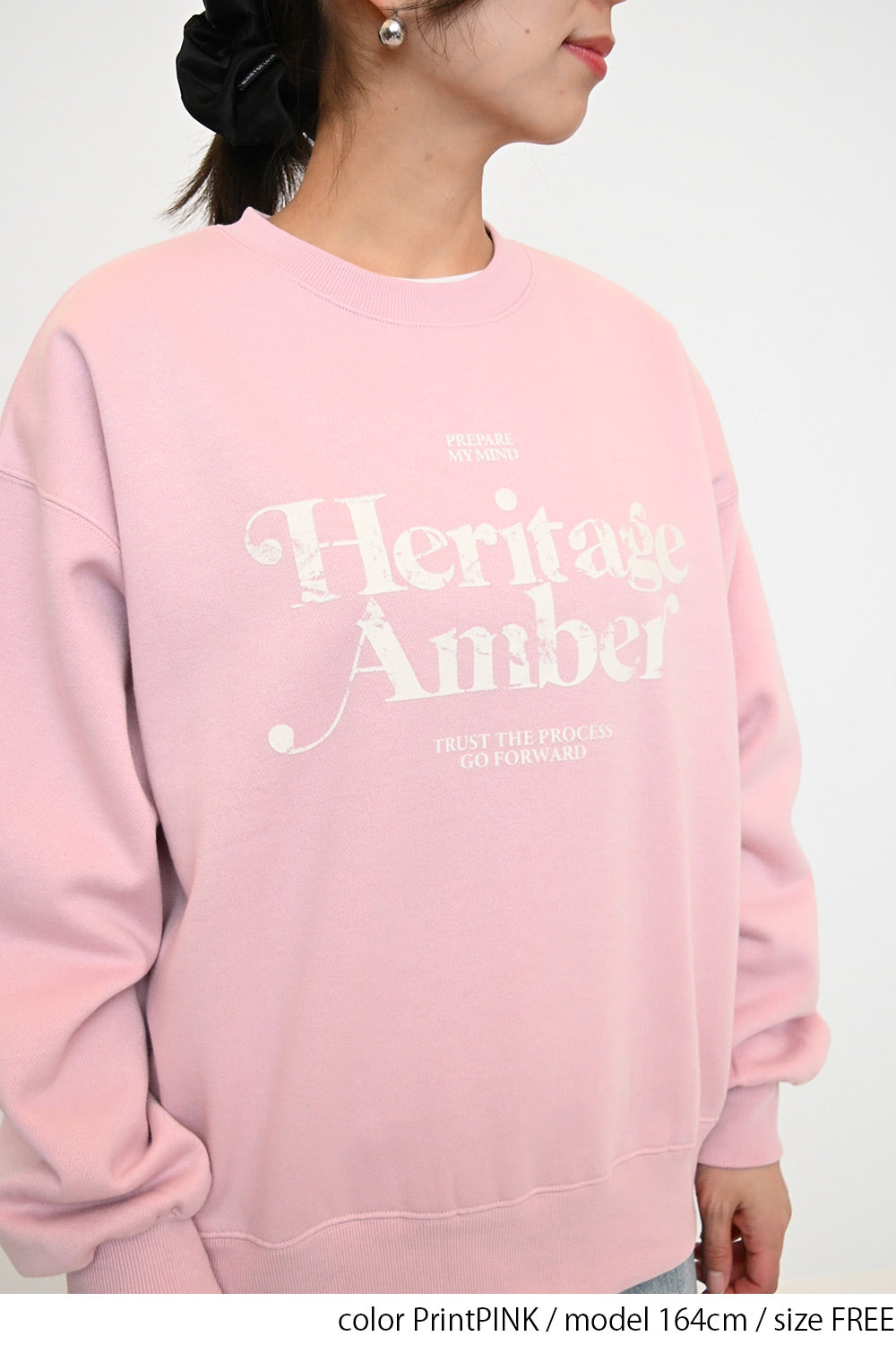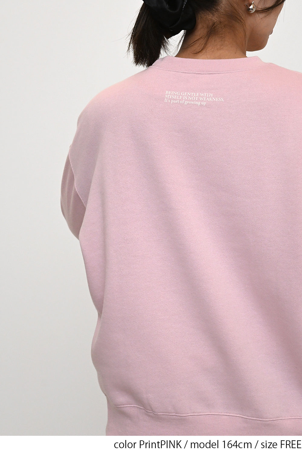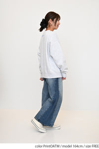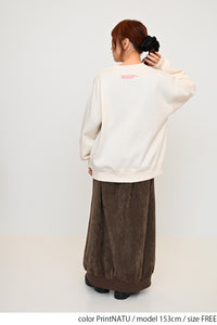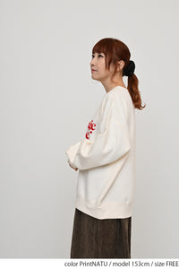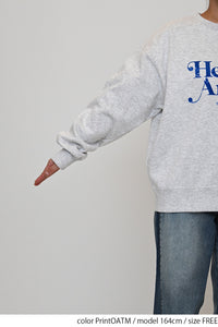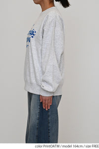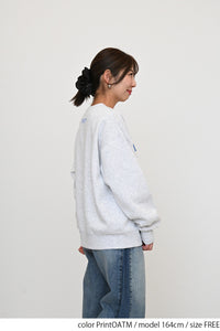 淡いカラーリングのボディにフロッキーロゴの可愛らしいアクセントを添えた、裏起毛プルオーバーです。