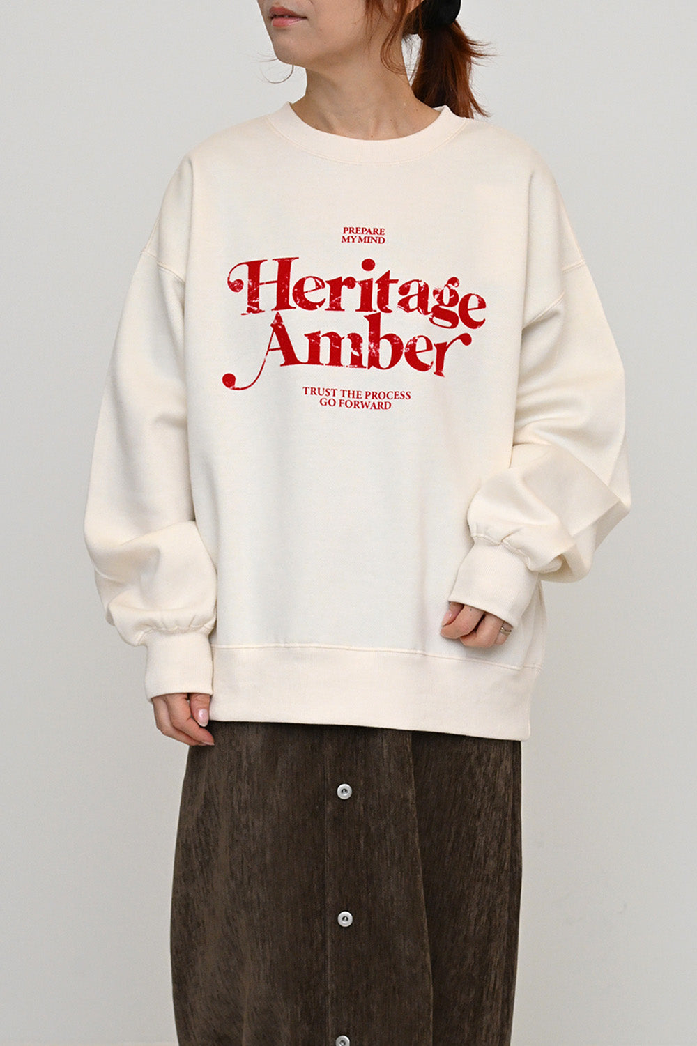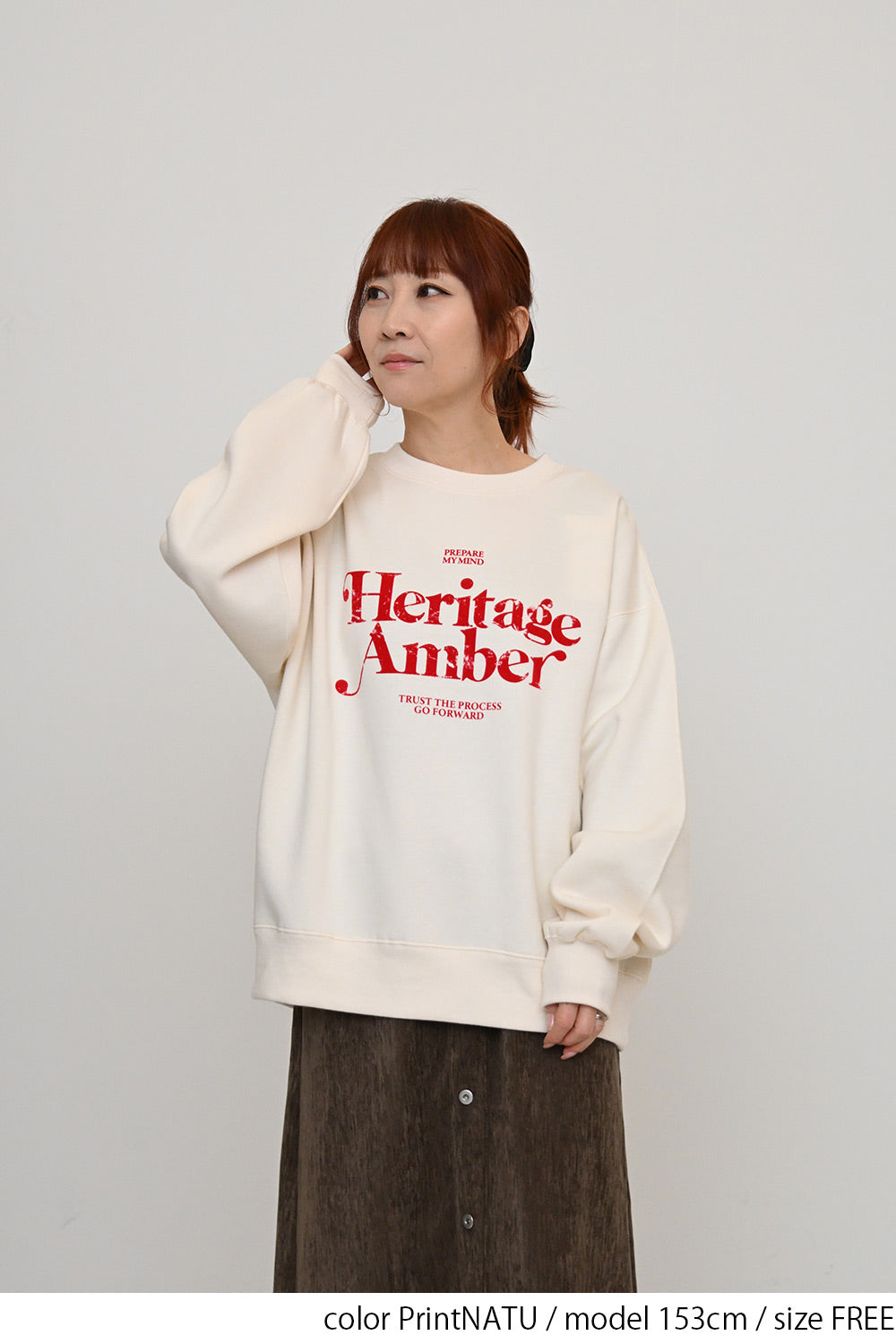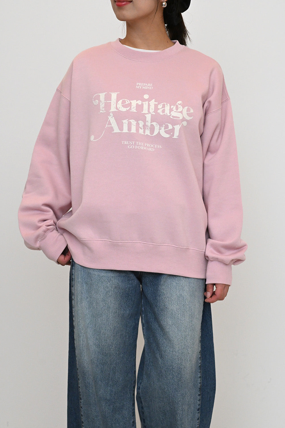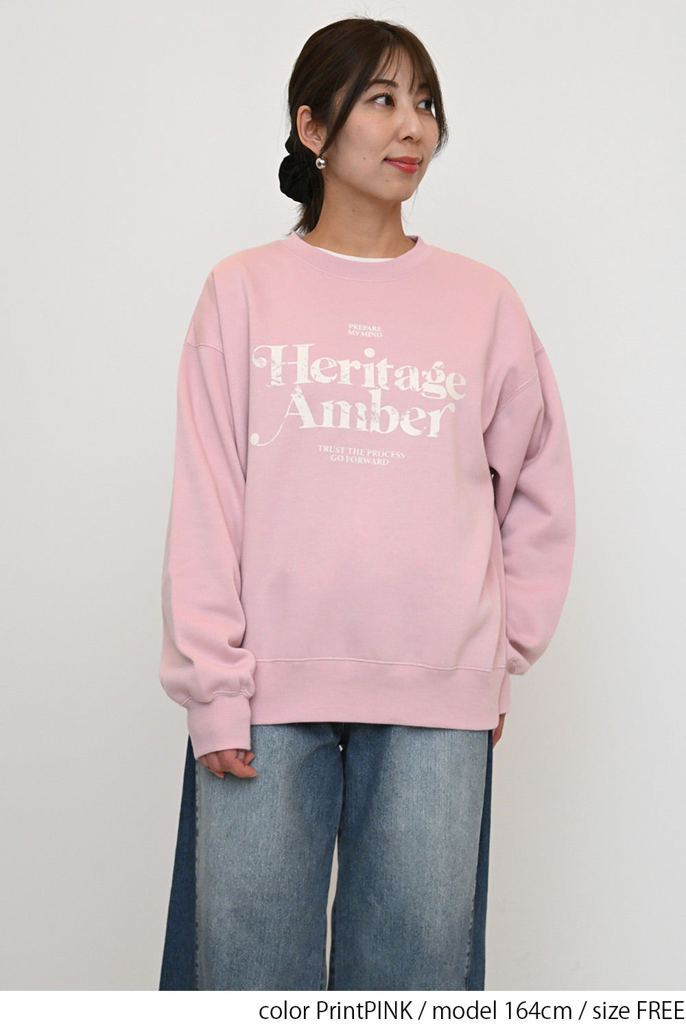 淡いカラーリングのボディにフロッキーロゴの可愛らしいアクセントを添えた、裏起毛プルオーバーです。
