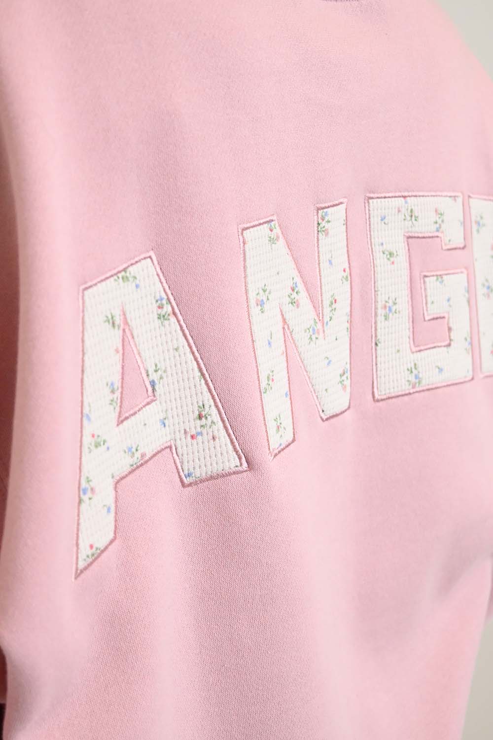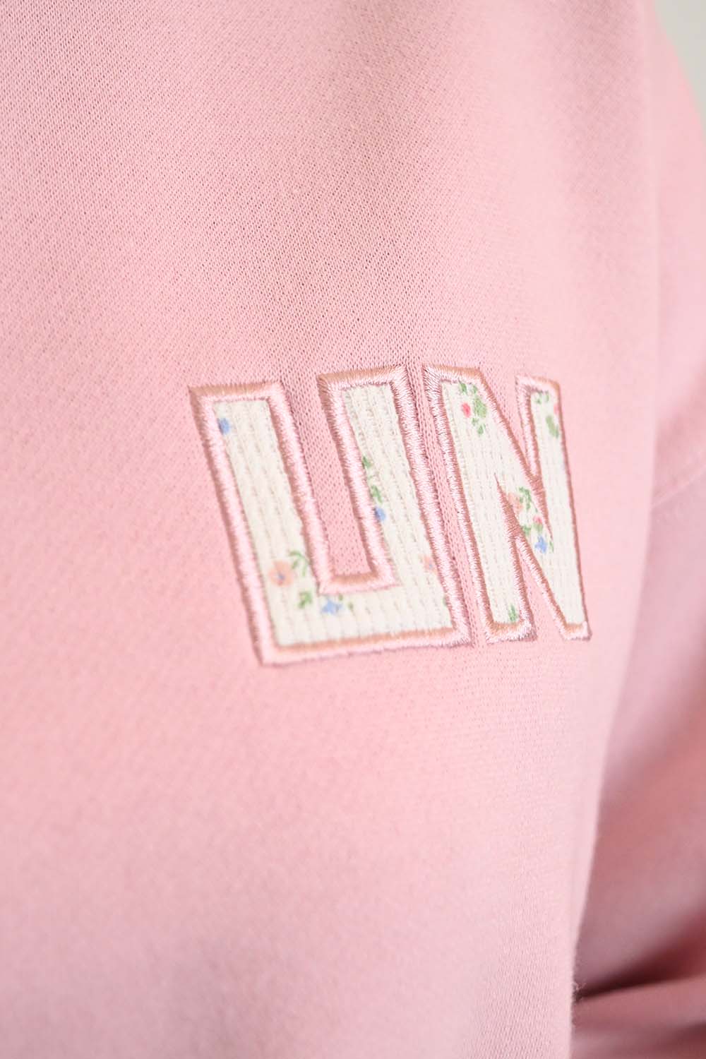 胸元には小さな花をあしらったロゴデザインを施し、カジュアルの中にさりげない可愛さをプラス。