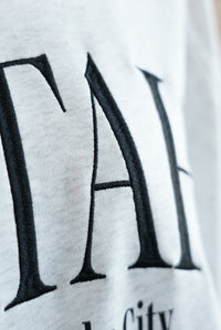 存在感がある胸元のカレッジロゴがアクセントになる裏毛のプルオーバー。