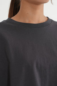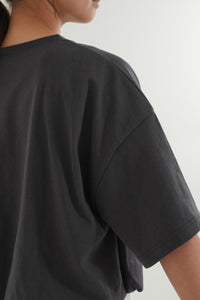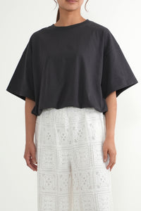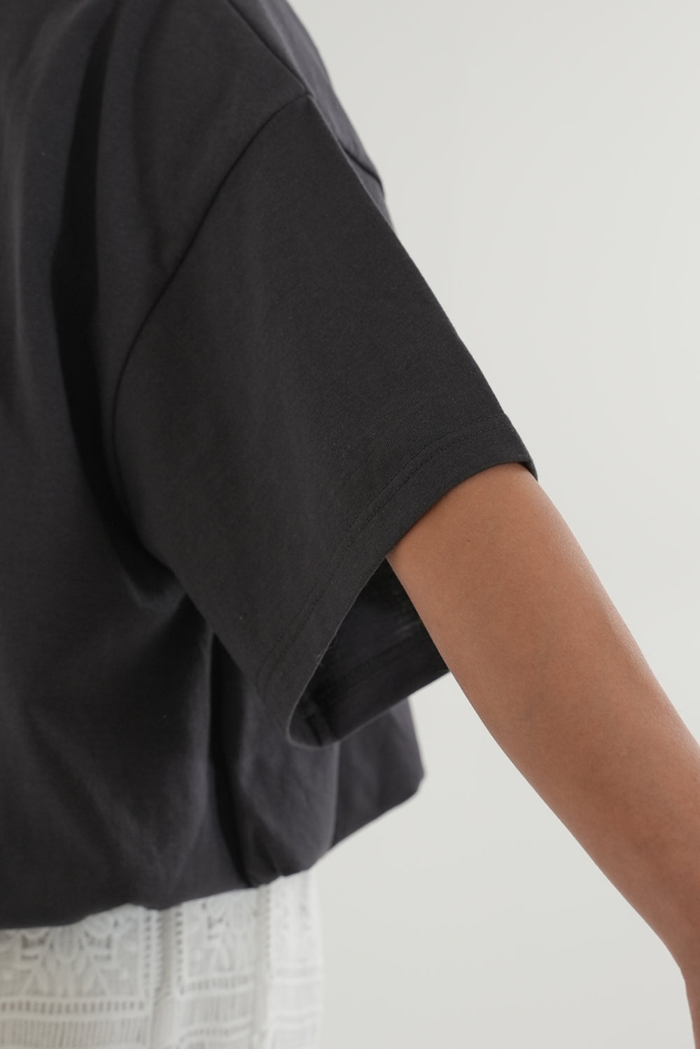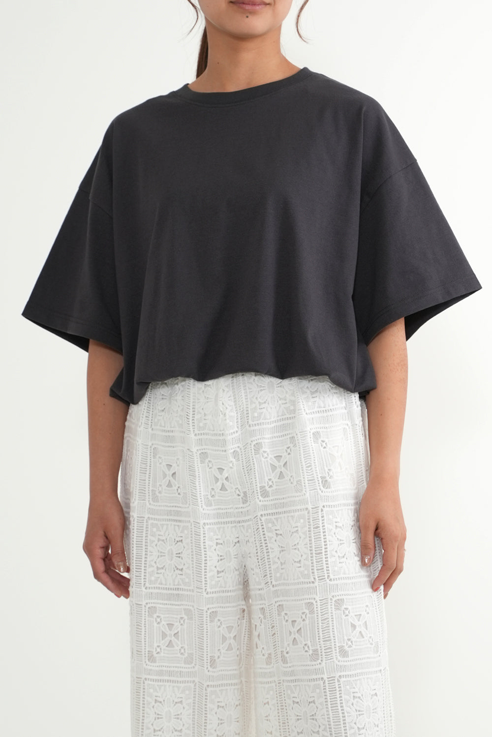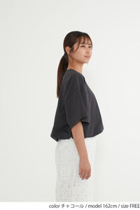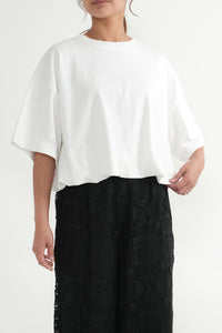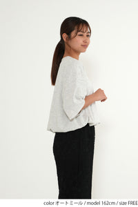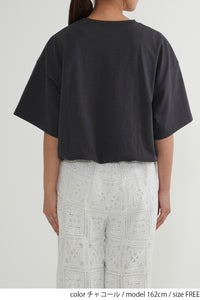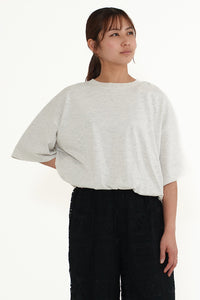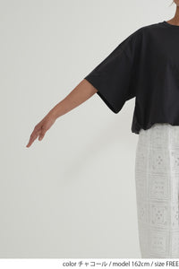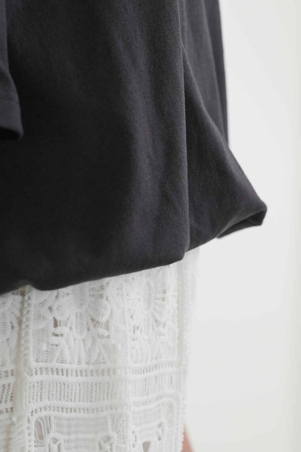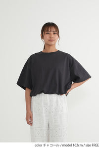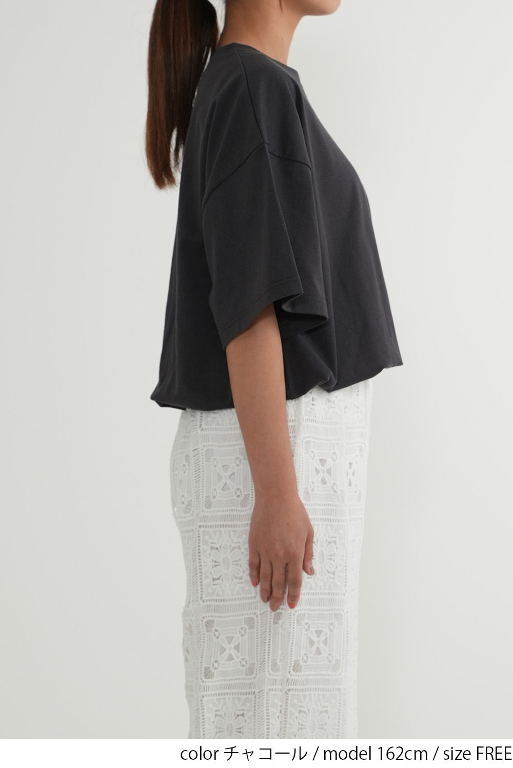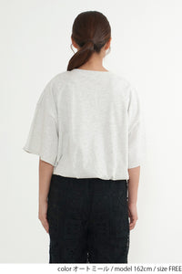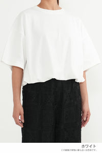 シンプルなTシャツに、裾バルーンの立体シルエットをプラスしたデザイン。