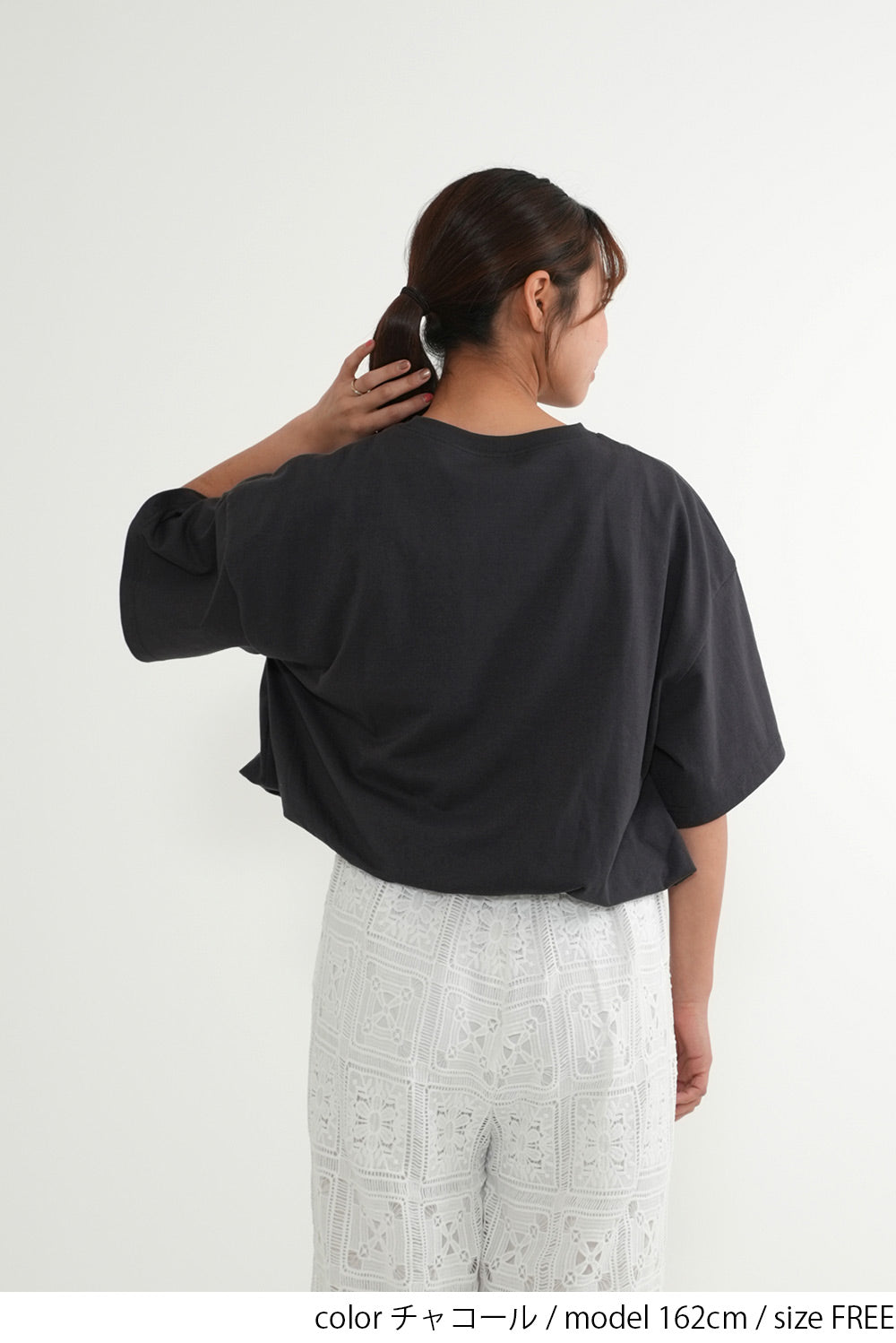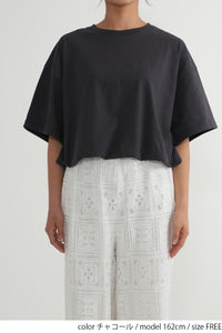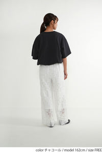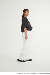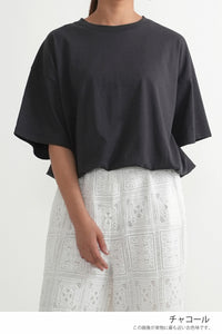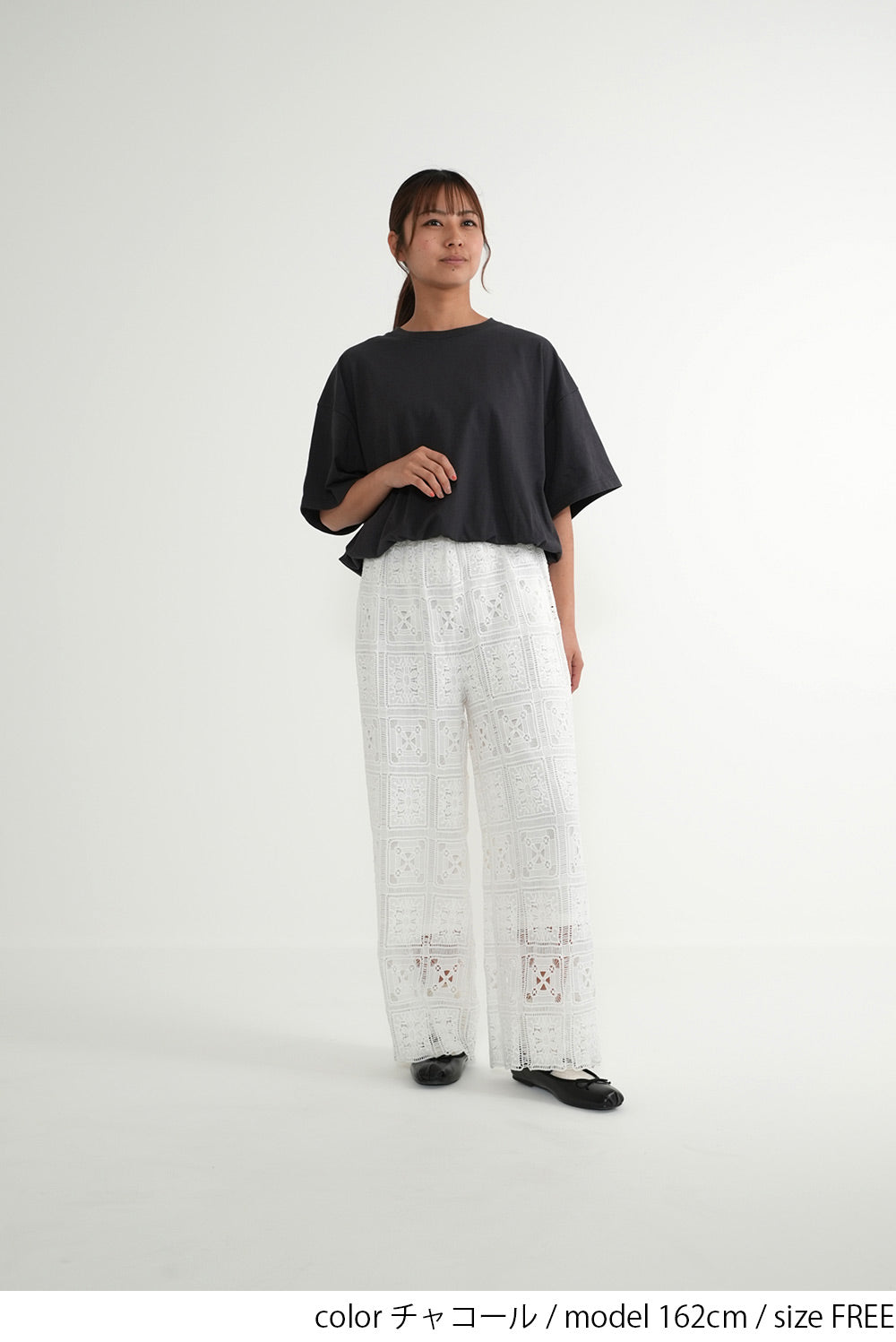 レースパンツや柄ボトムと合わせれば、トップスのシンプルさが引き立ち、大人のナチュラルスタイルに。
