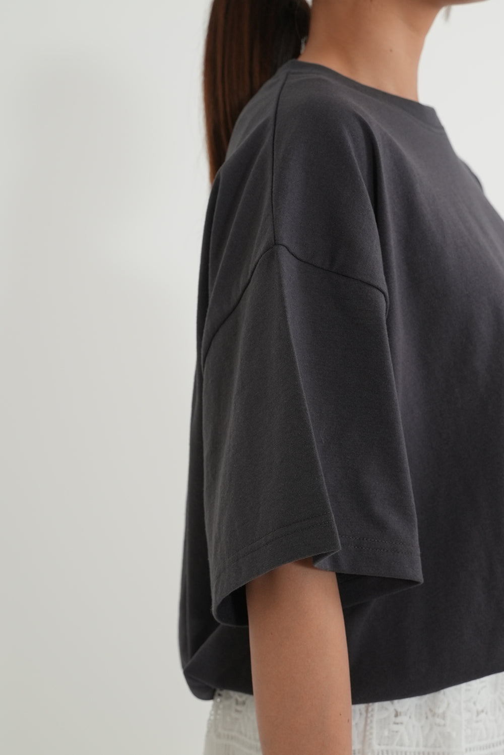 肩を落としたゆったりシルエットと、肘にかかる安心感のある袖丈で、気になる二の腕もカバー。
