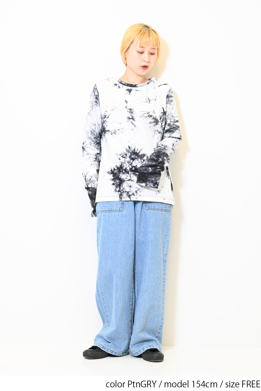 タイダイ柄がアクセントになるので、シンプルなパンツやスカート合わせでバランス良くまとまります。