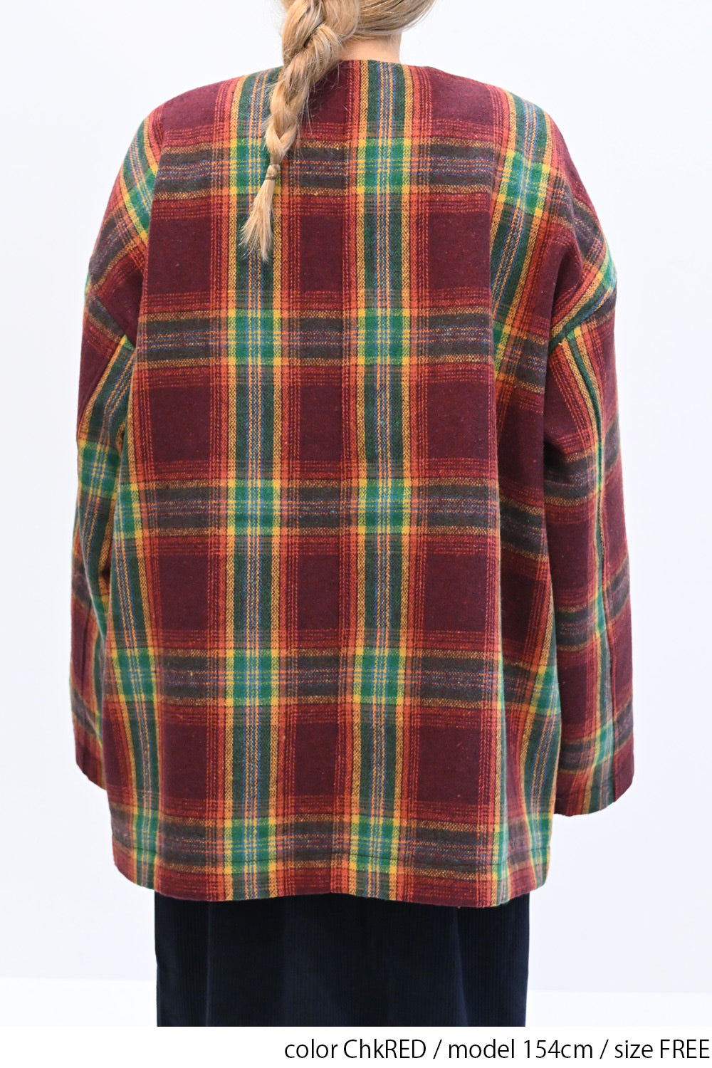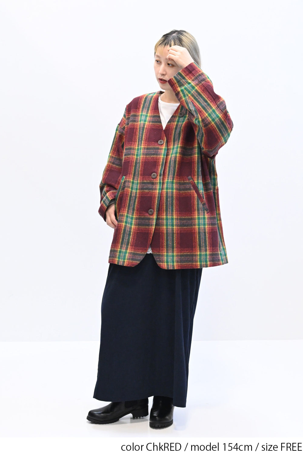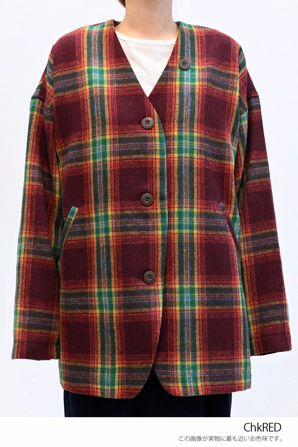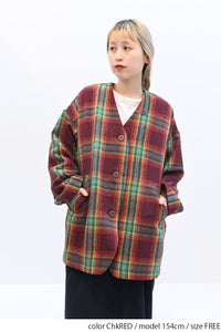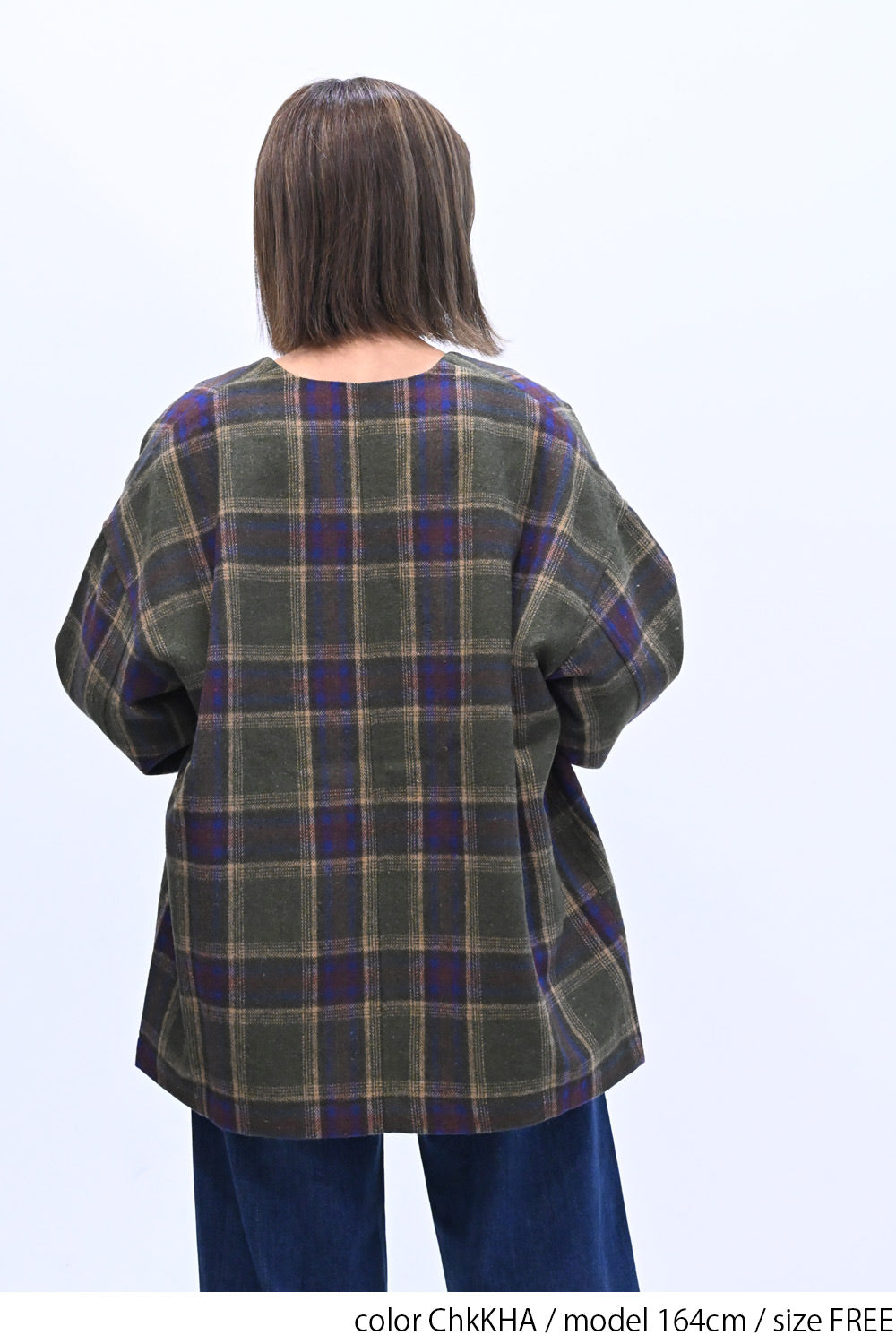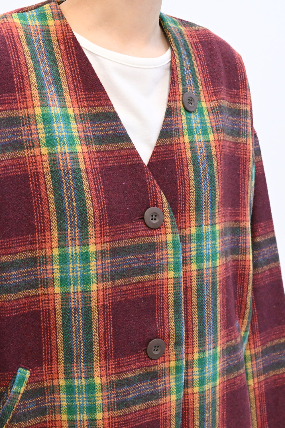 大柄チェックがコーデに季節感を添えるVネックコート。