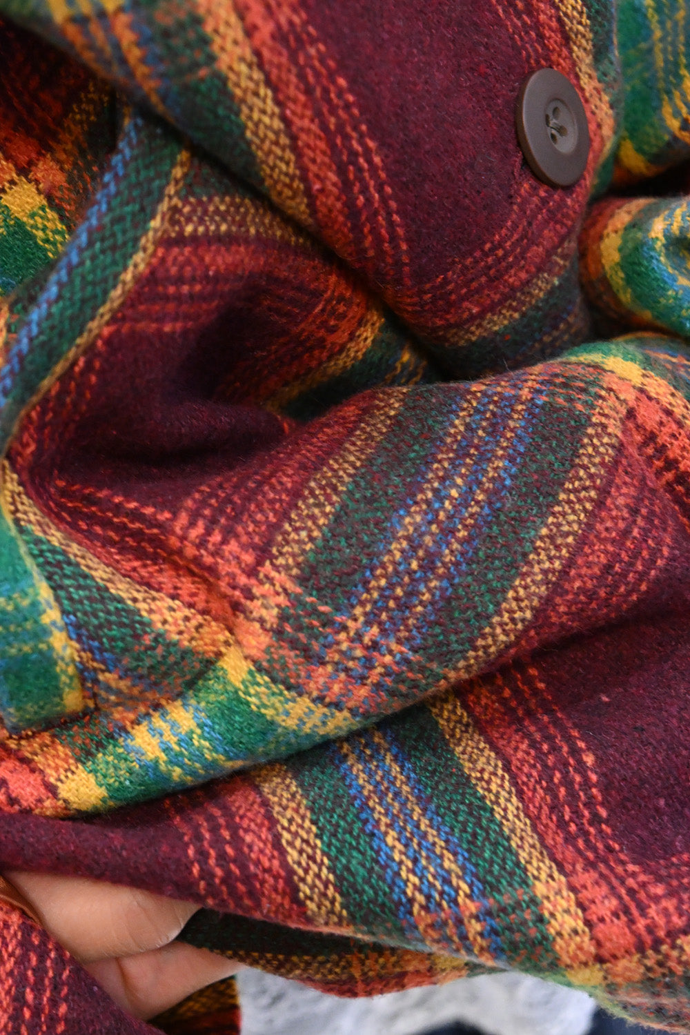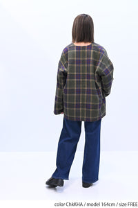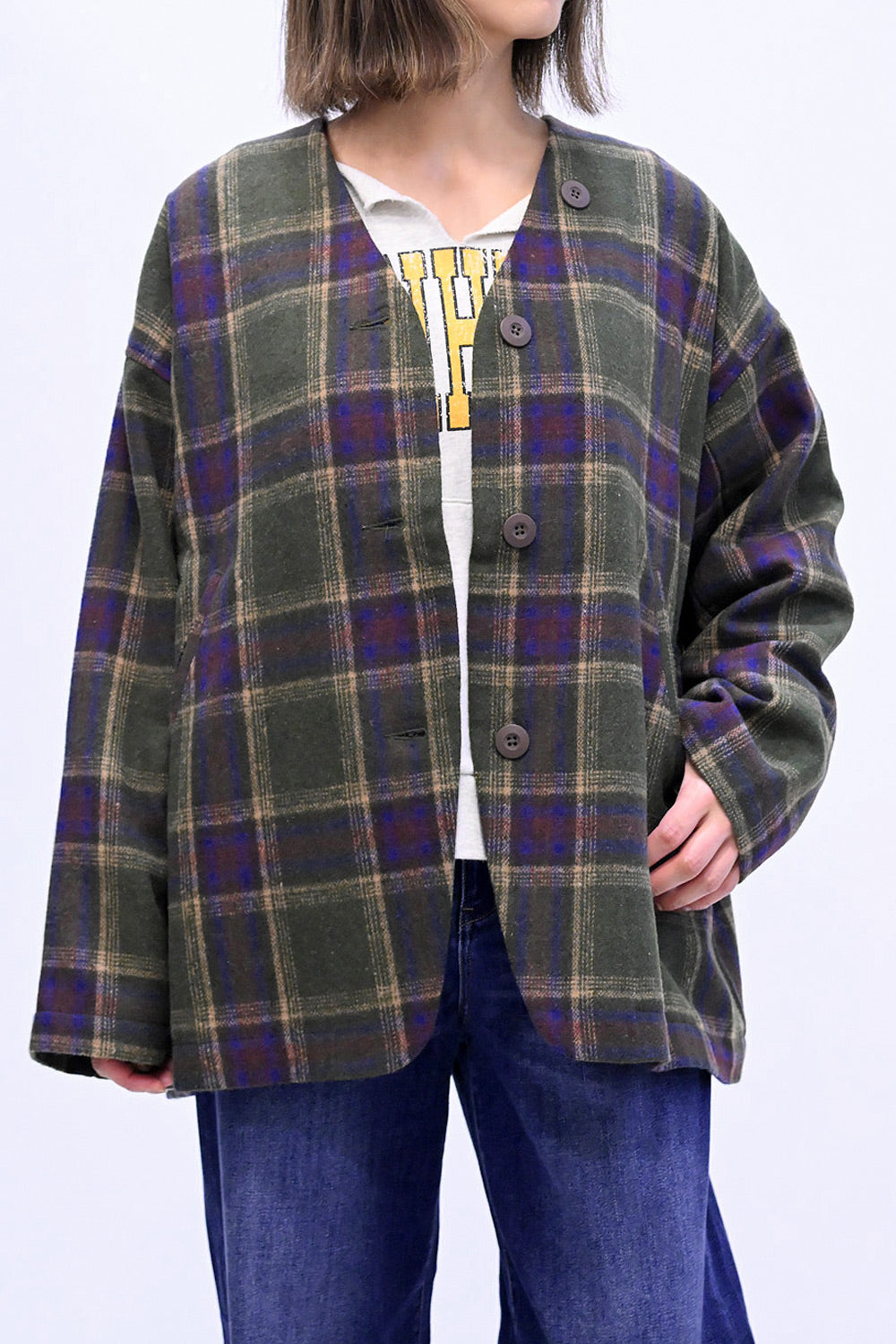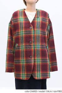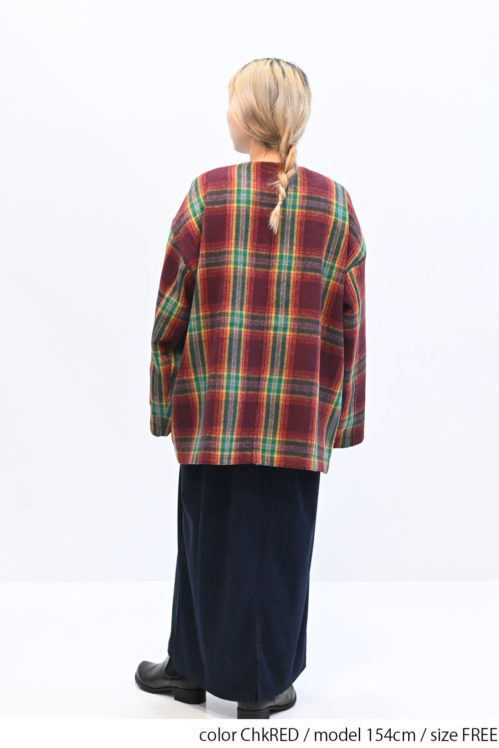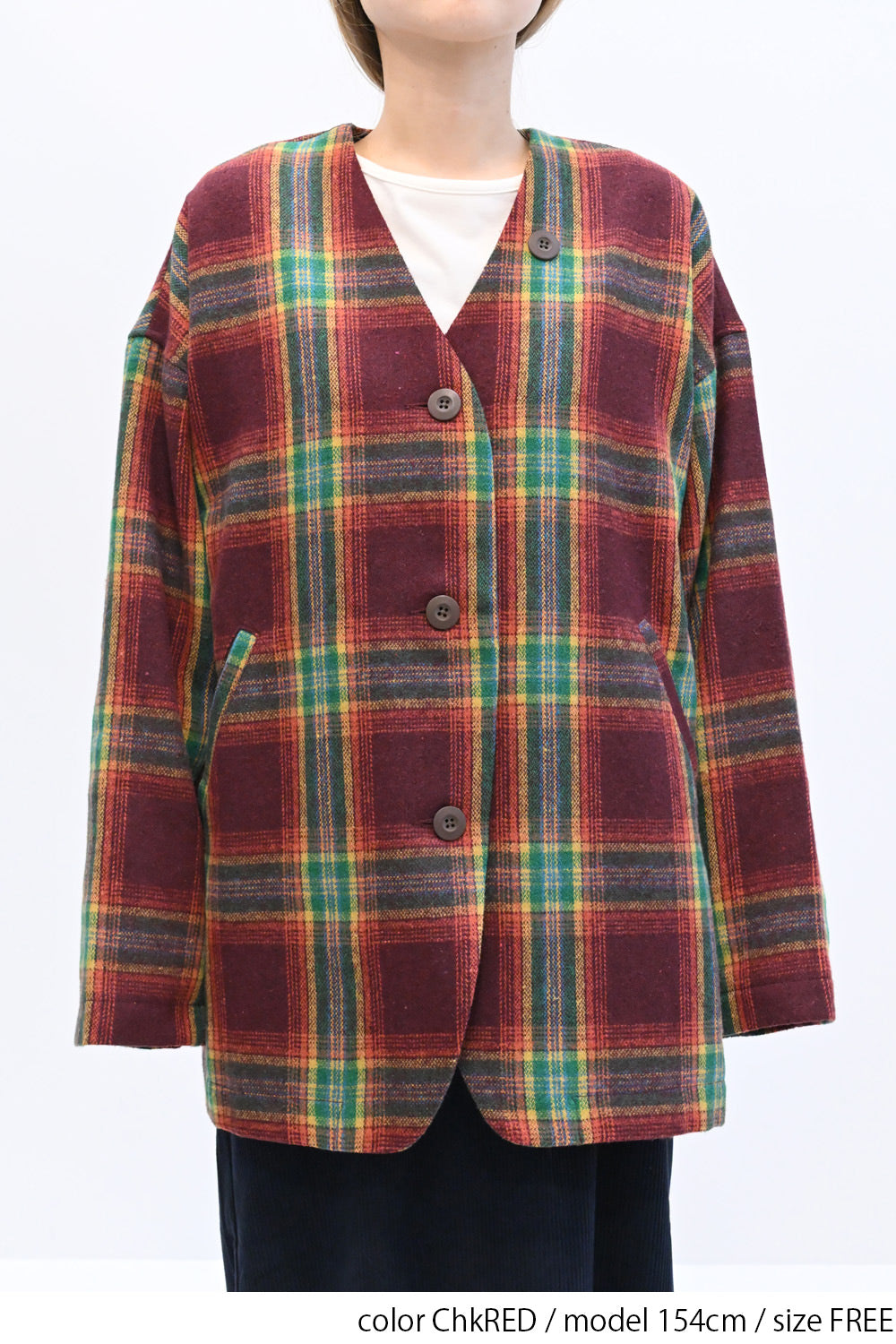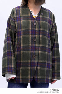 大柄チェックがコーデに季節感を添えるVネックコート。