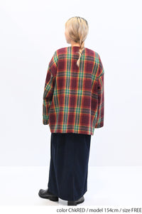 存在感のあるチェック柄で、シンプルなトップスやボトムと合わせるだけで主役級のスタイリングに。