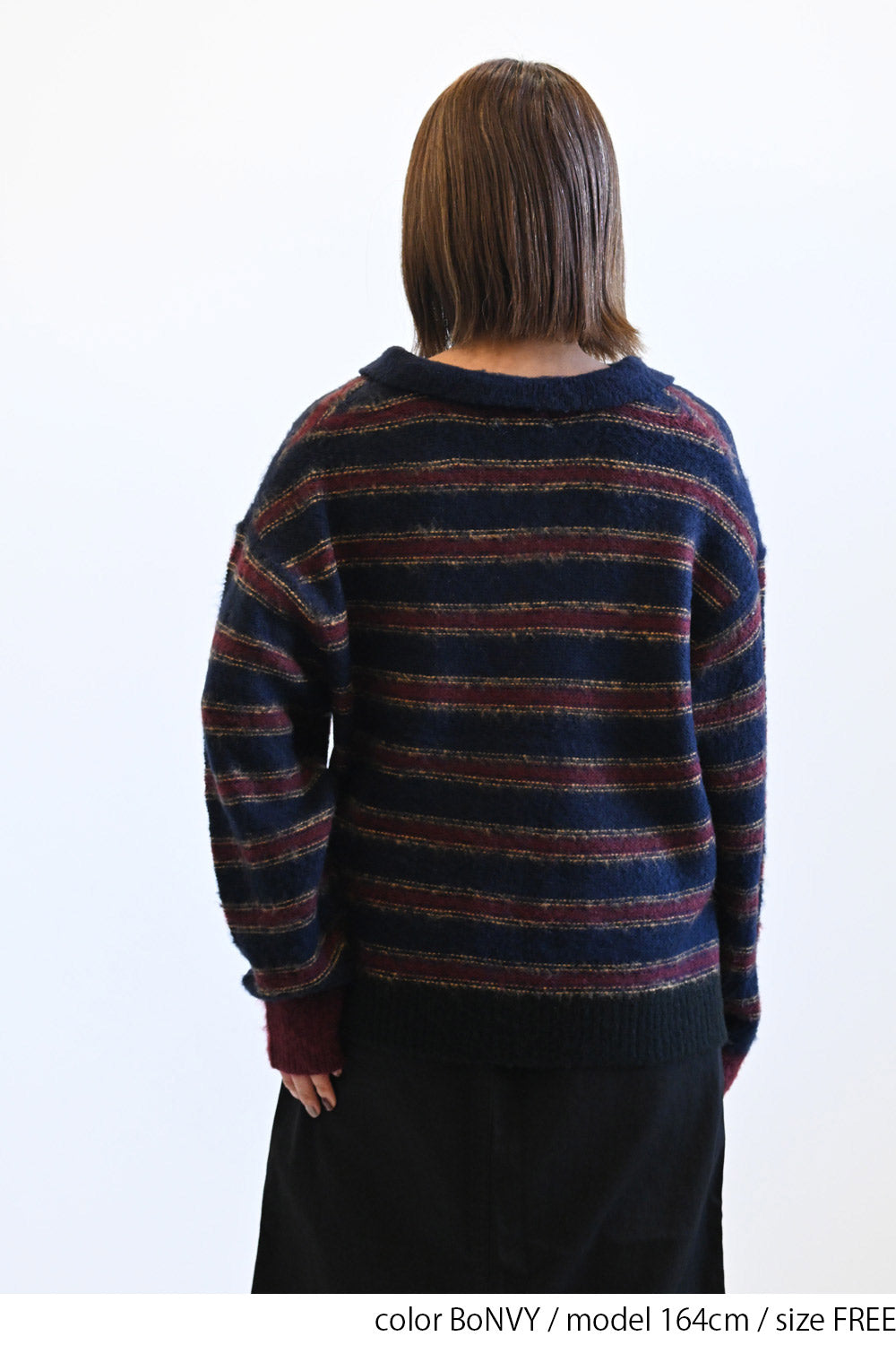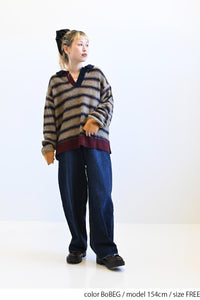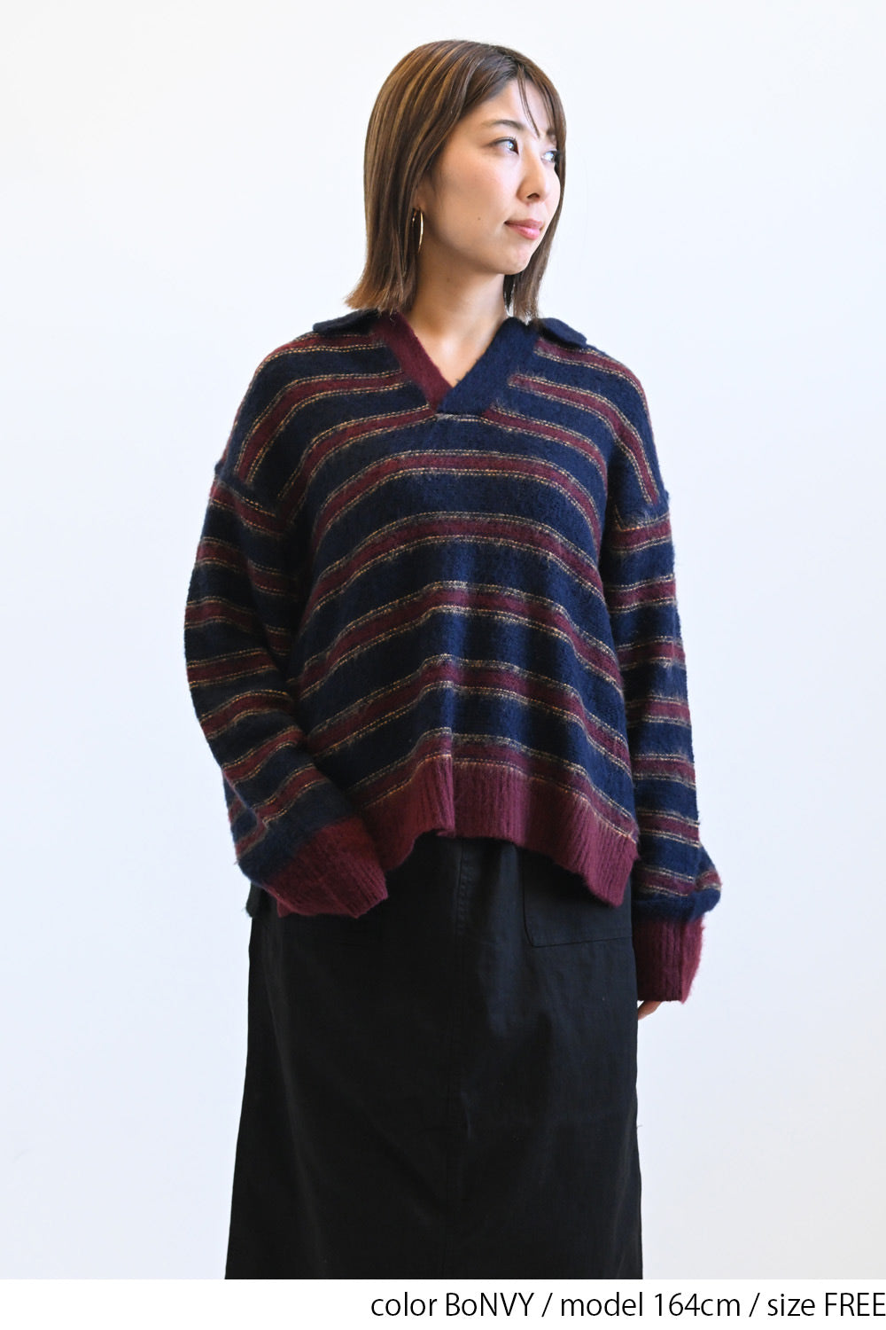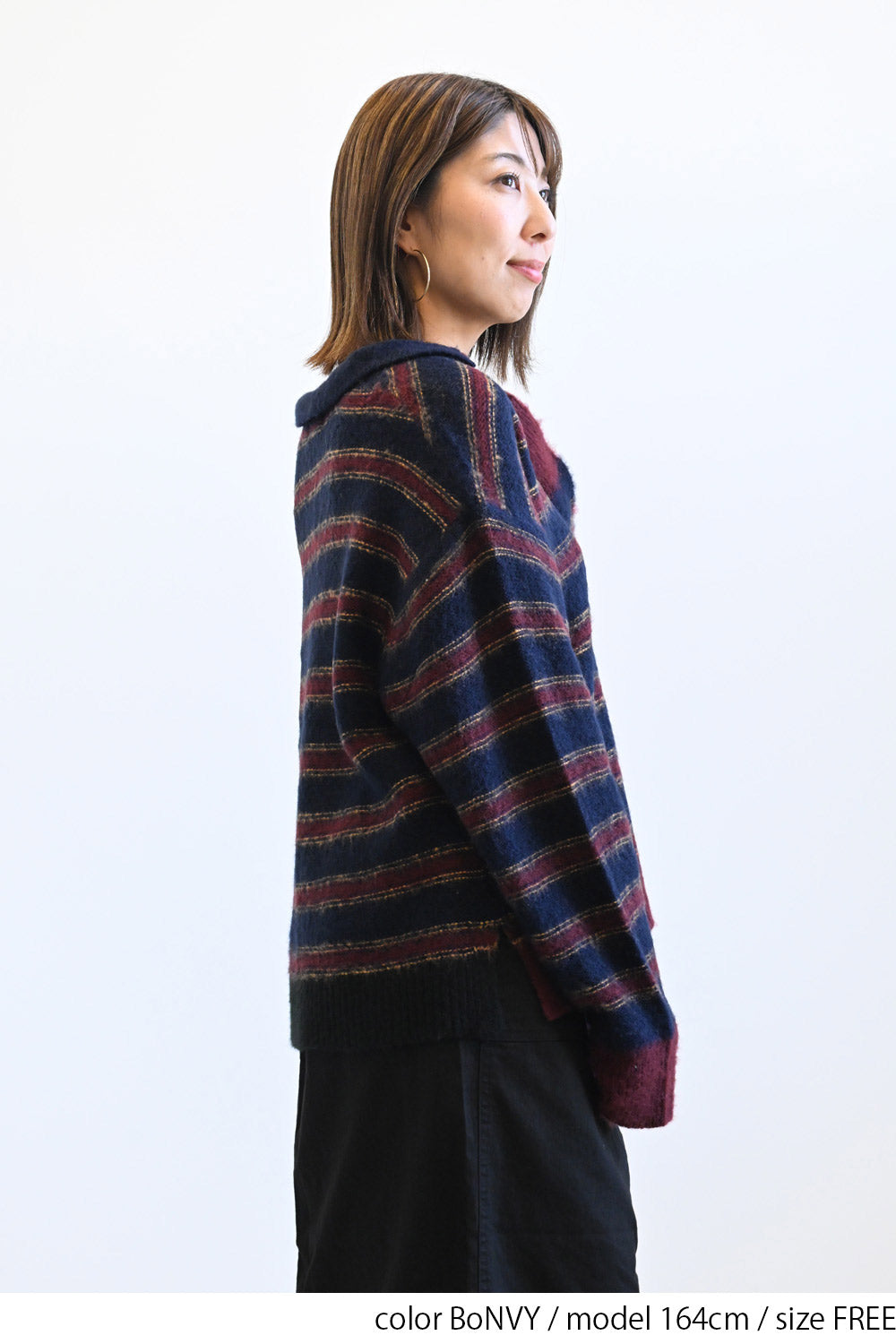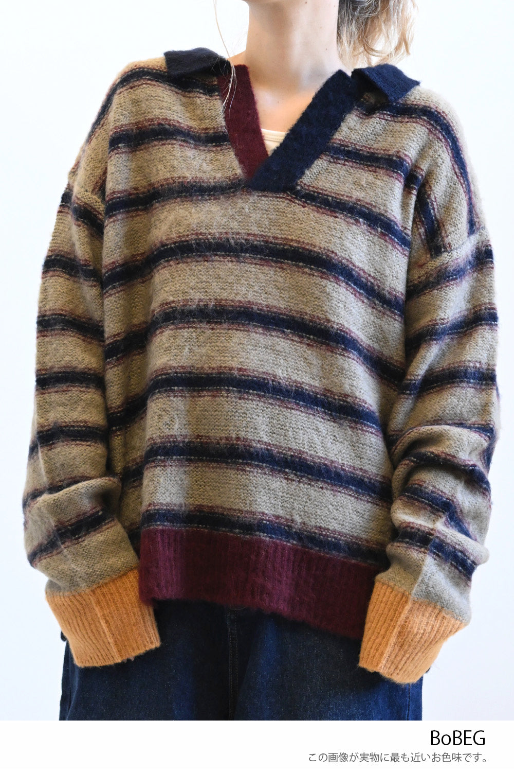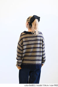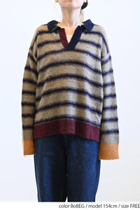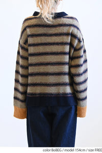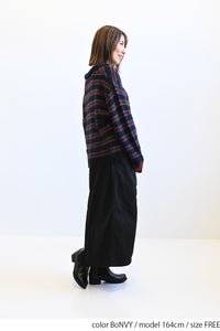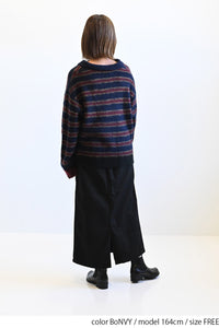 ふんわりとした起毛感がやさしい印象のマルチボーダースキッパーニット。