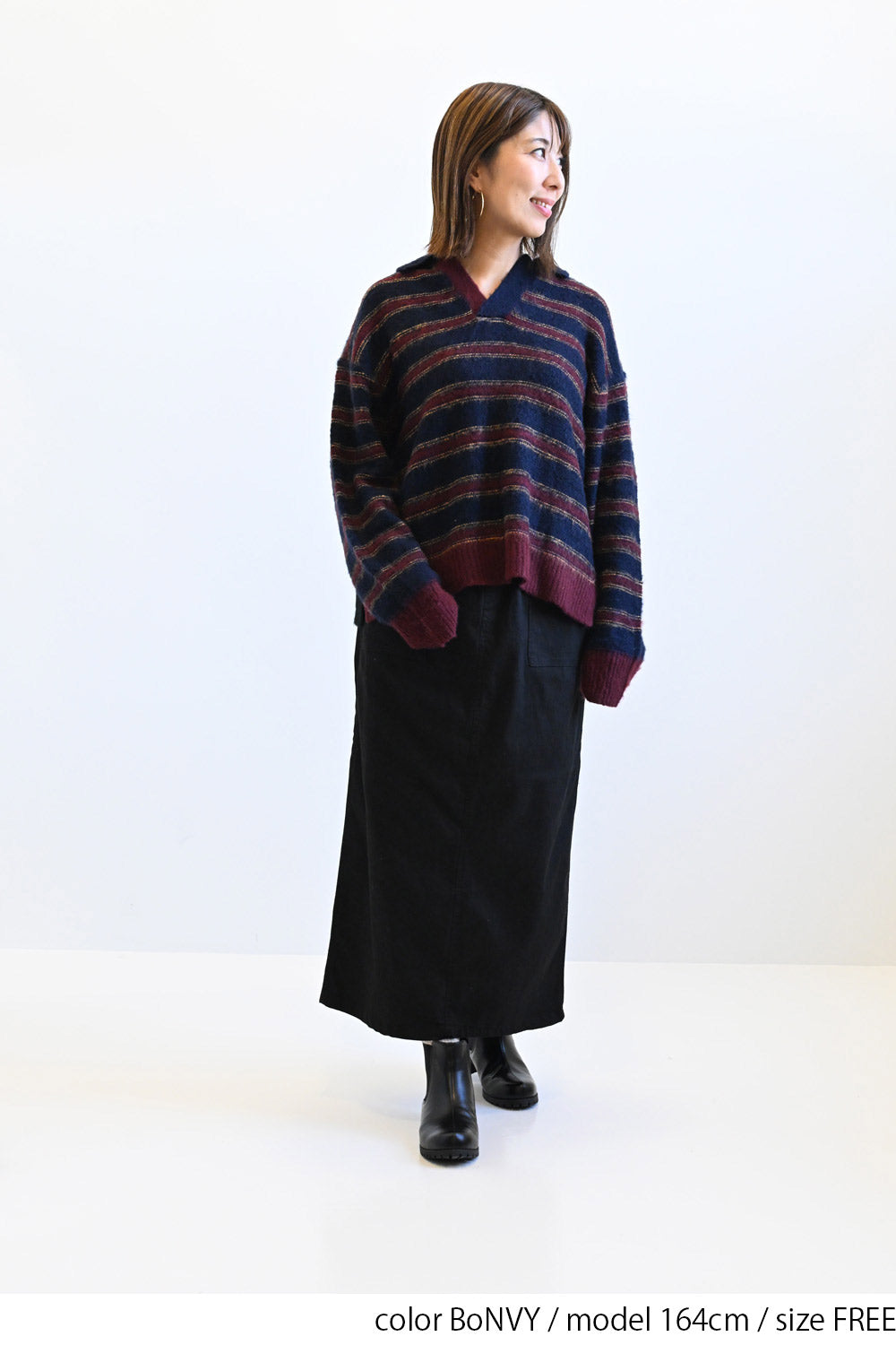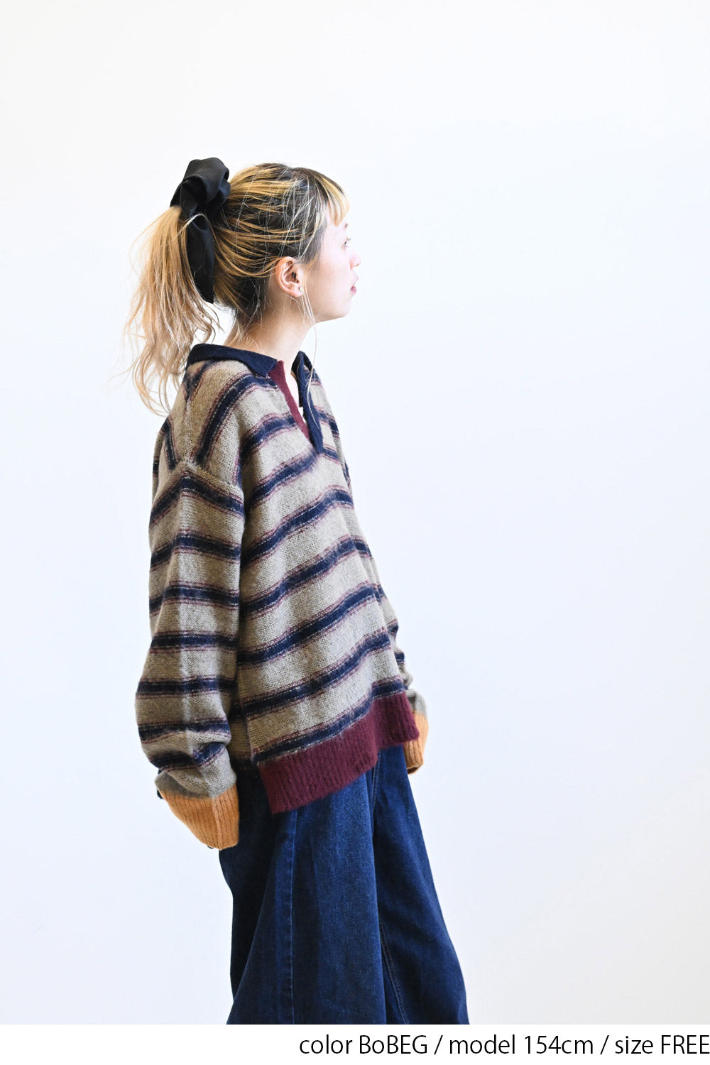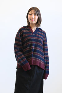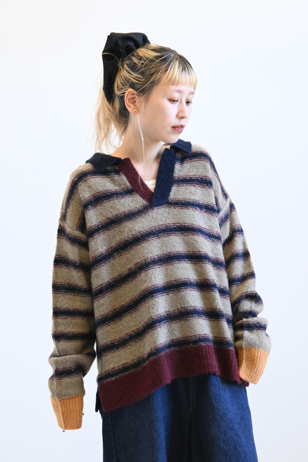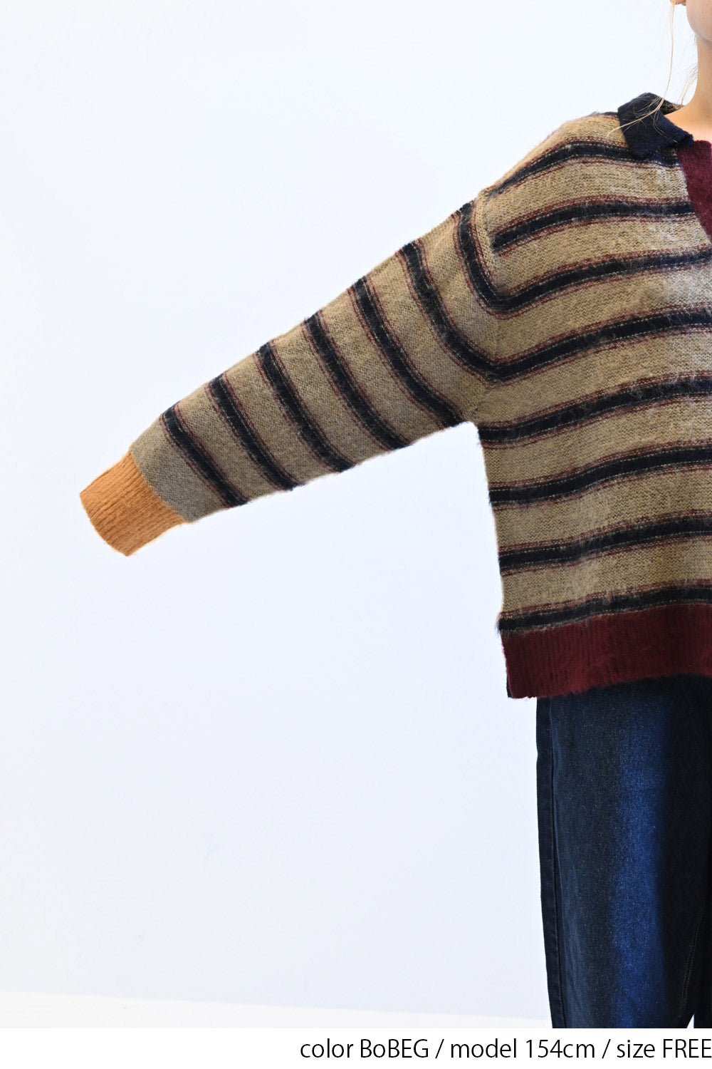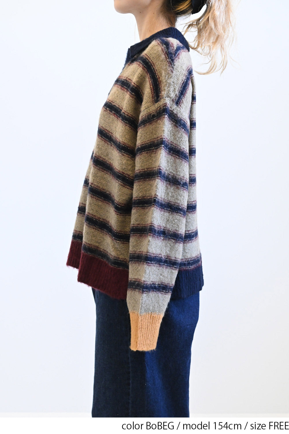 ふんわりとした起毛感がやさしい印象のマルチボーダースキッパーニット。