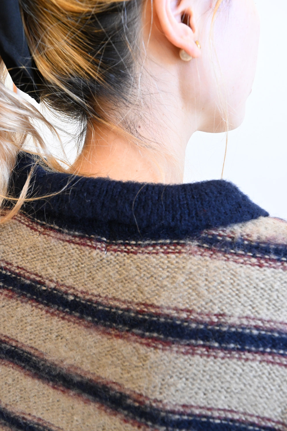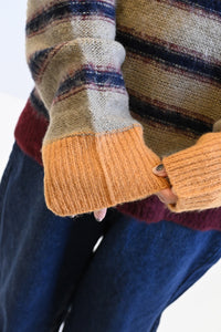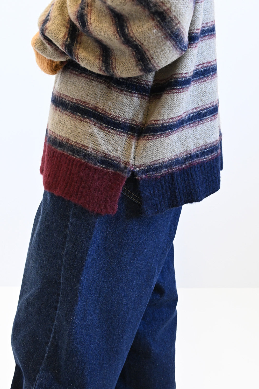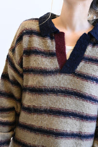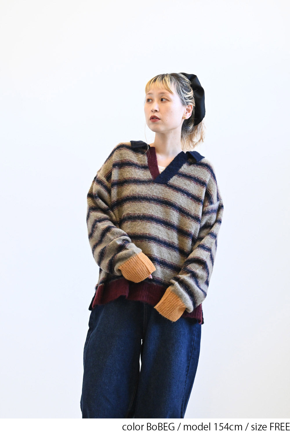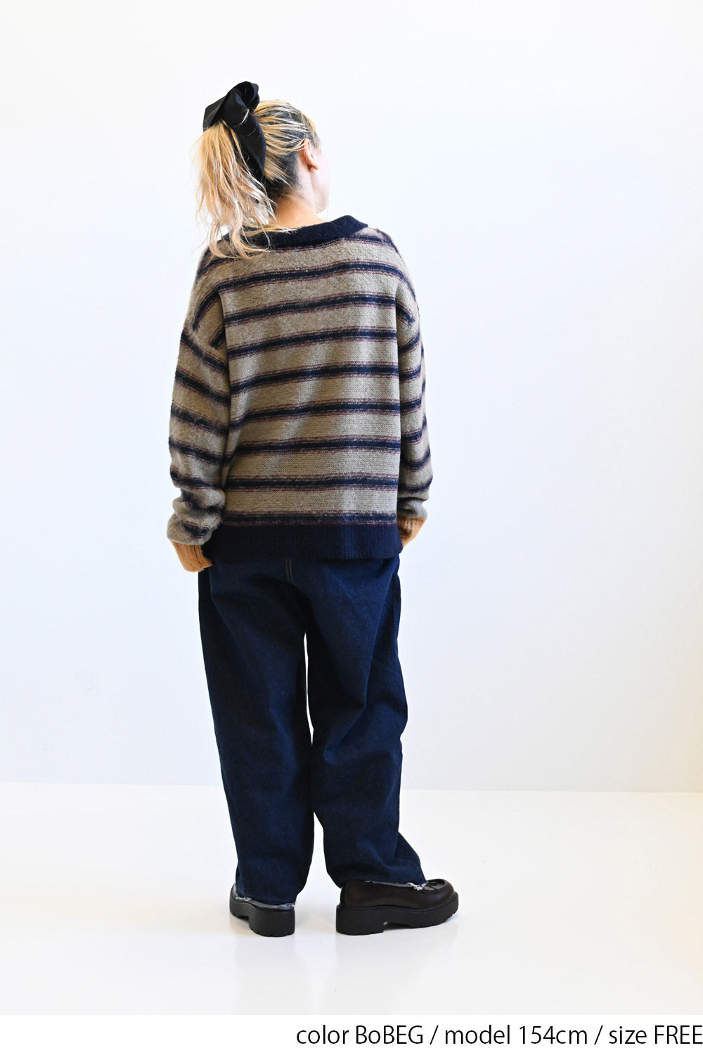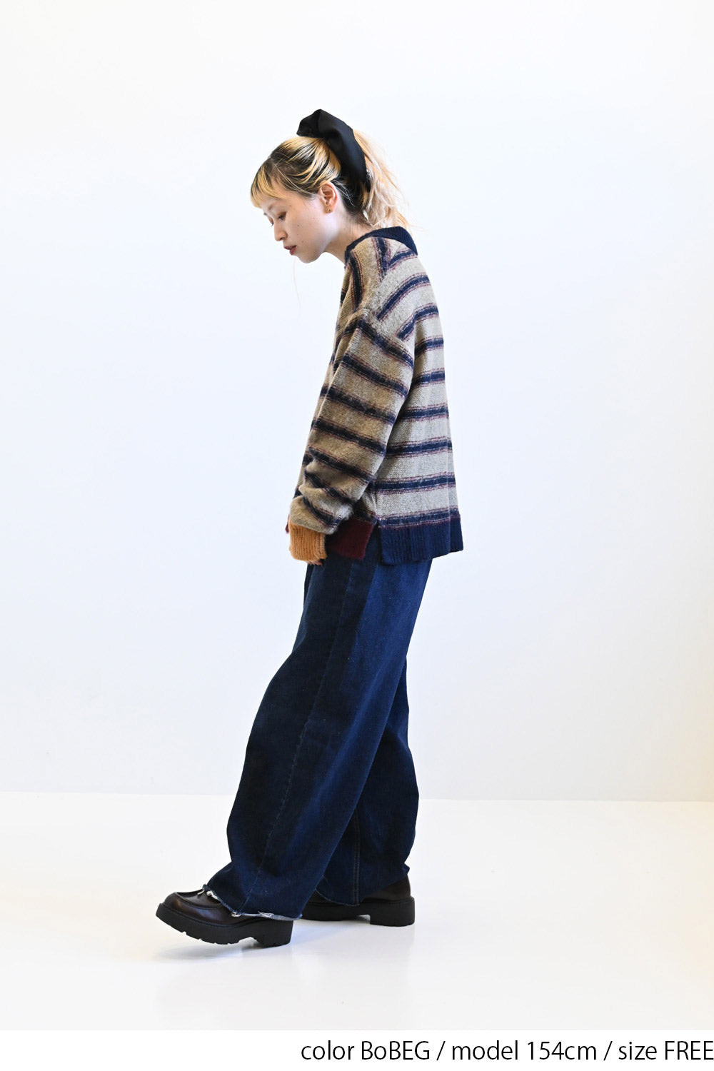 ふんわりとした起毛感がやさしい印象のマルチボーダースキッパーニット。