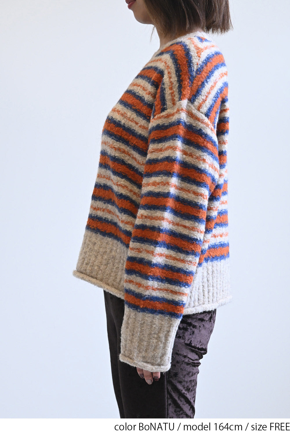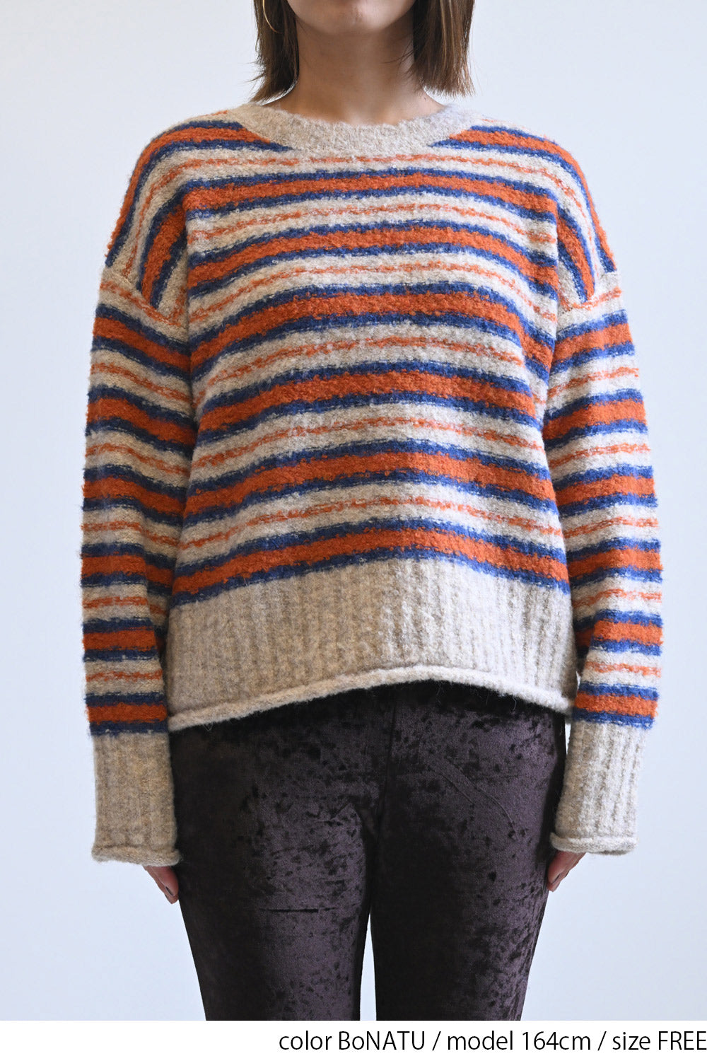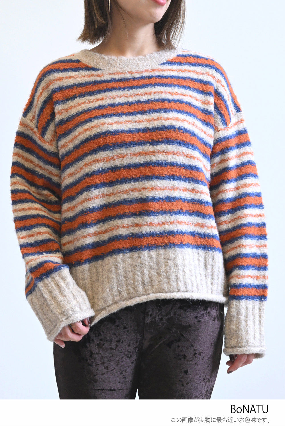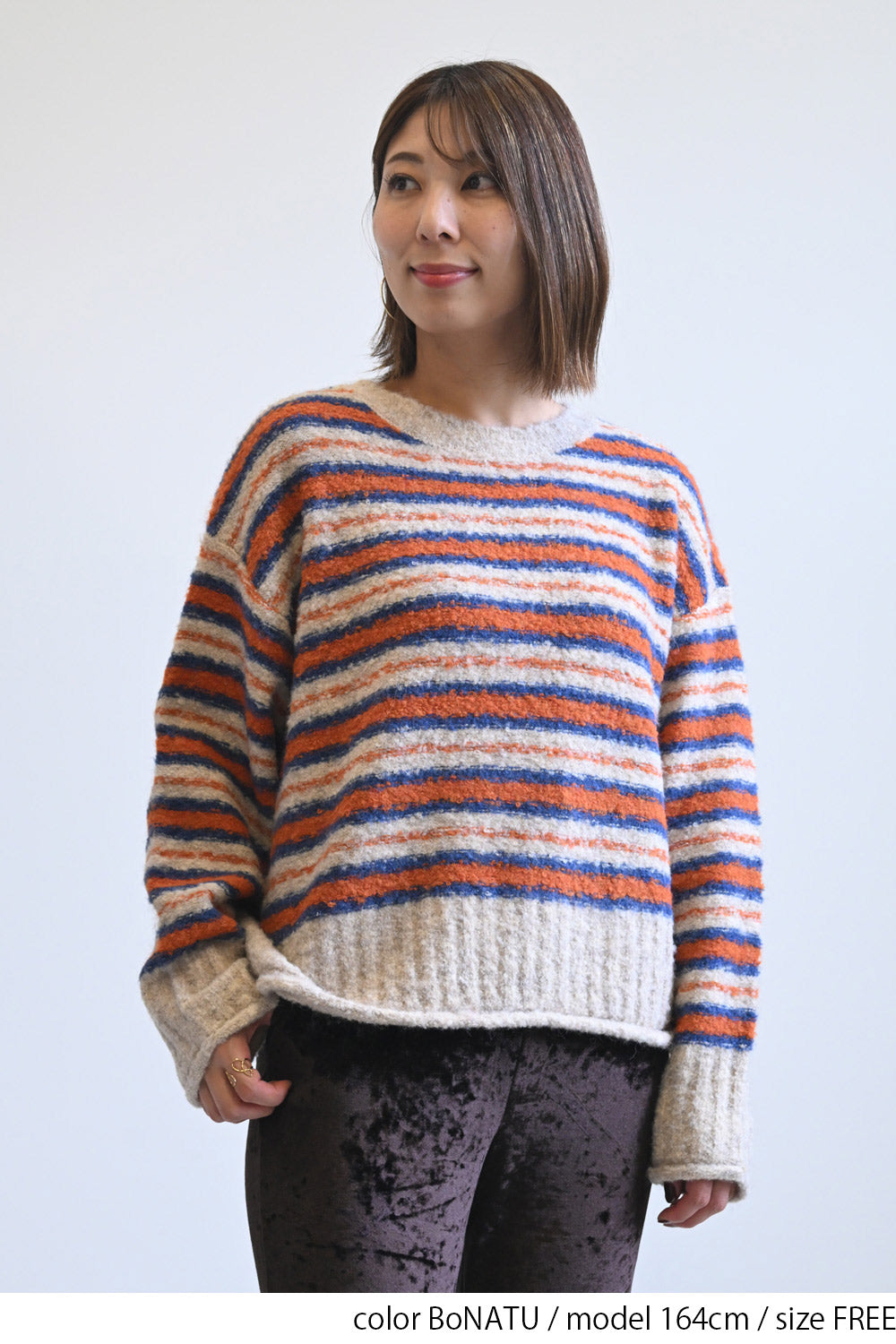 ふんわりとした風合いが魅力のマルチボーダーニット。