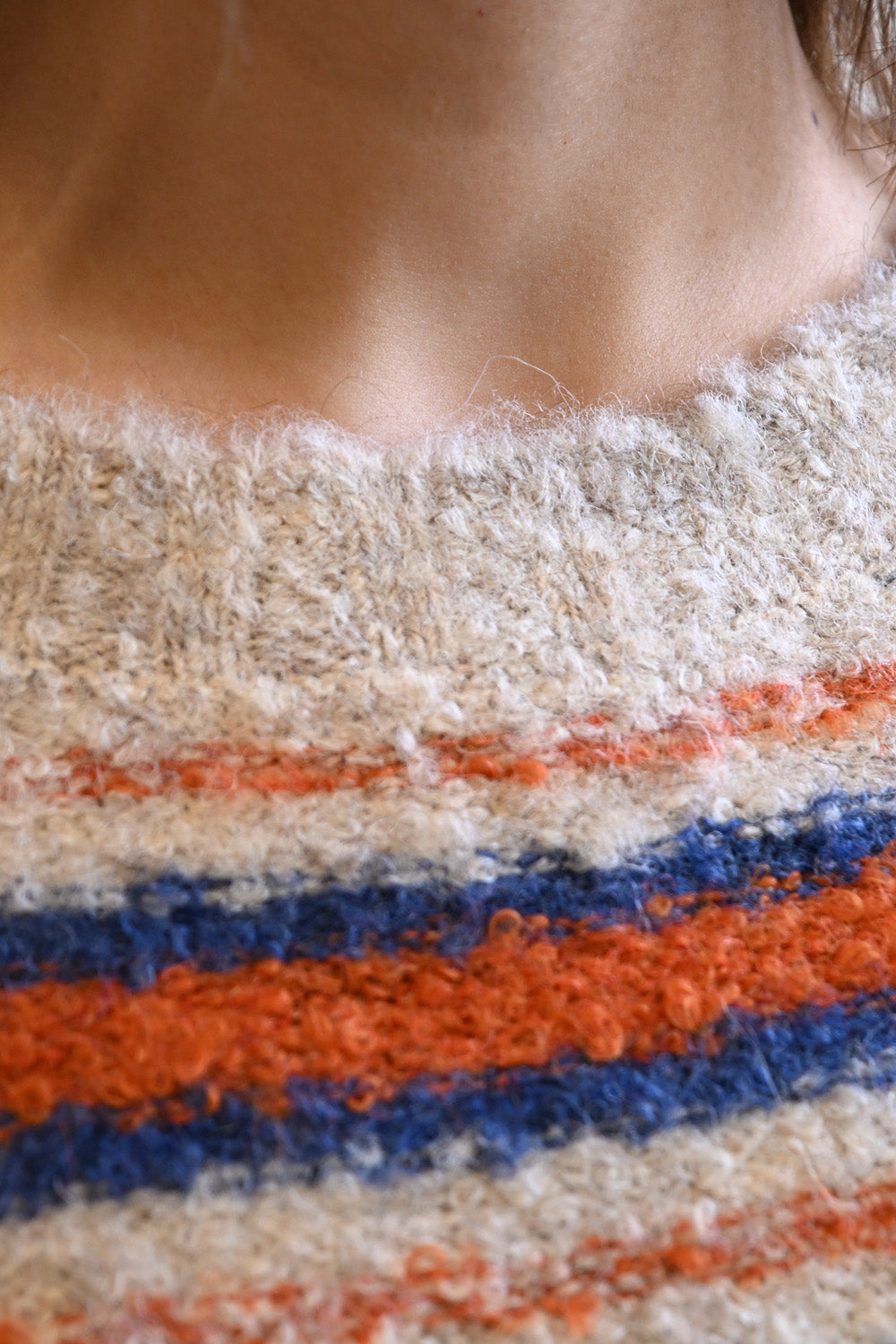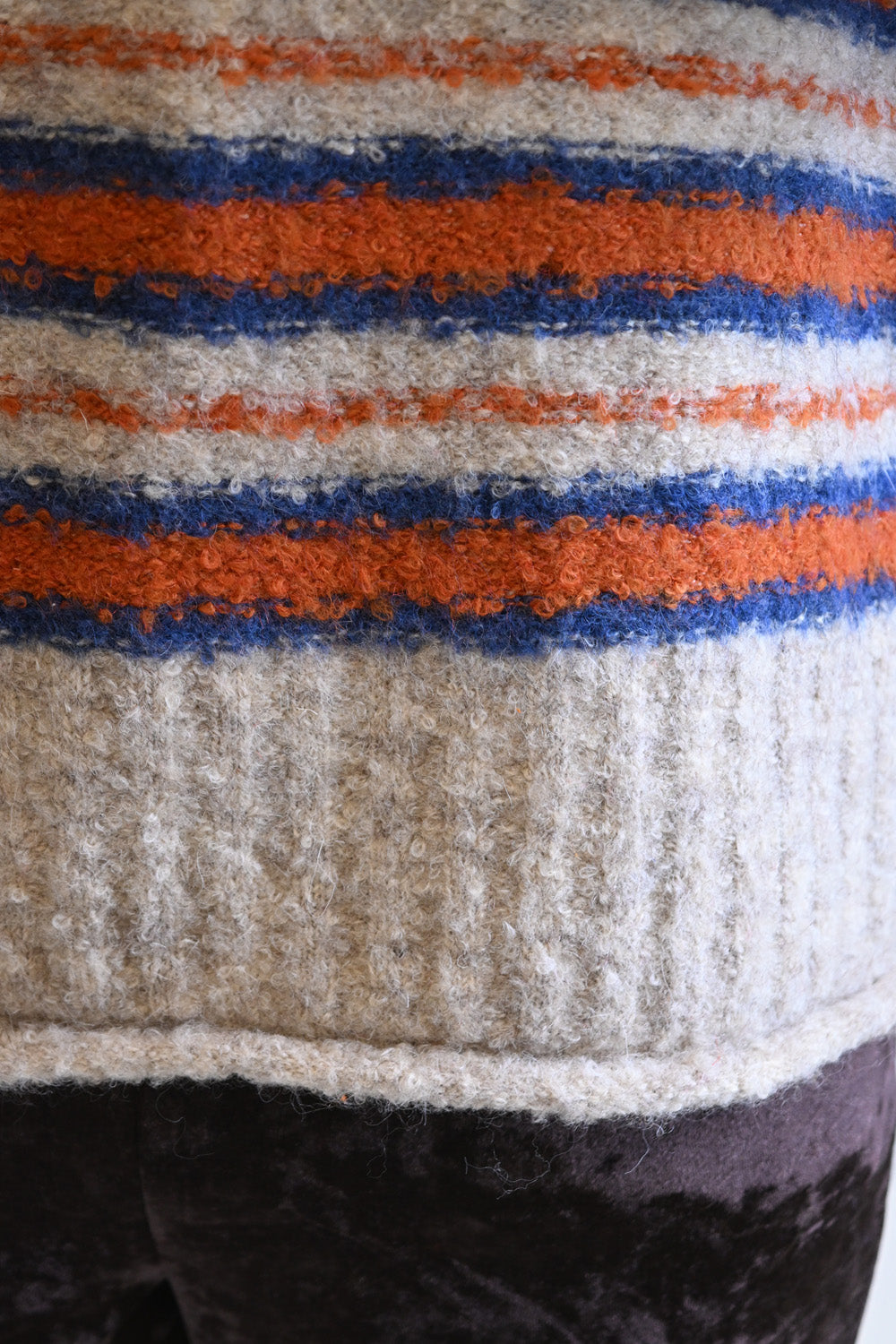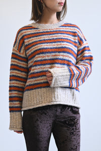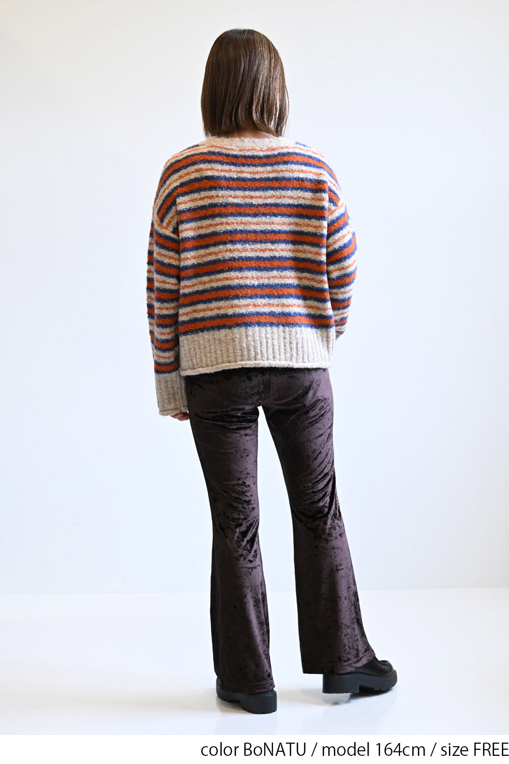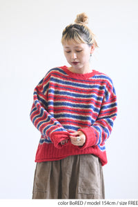 ふんわりとした風合いが魅力のマルチボーダーニット。