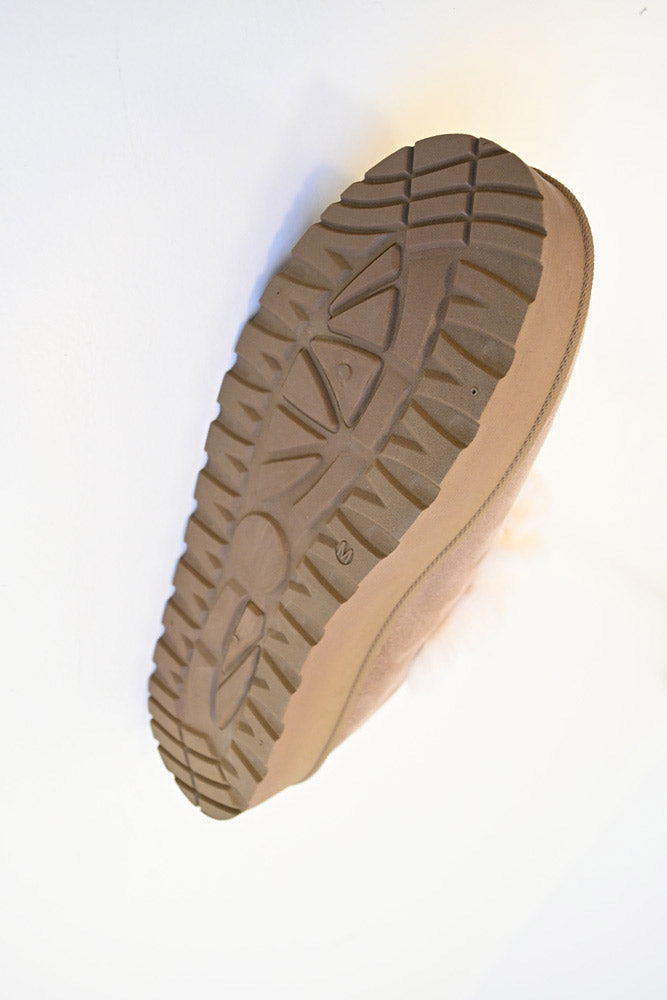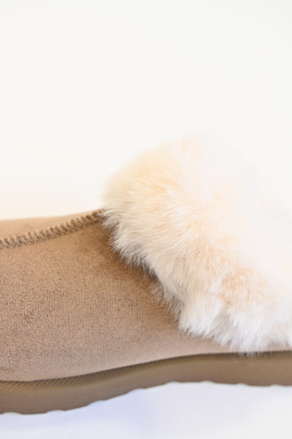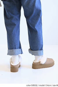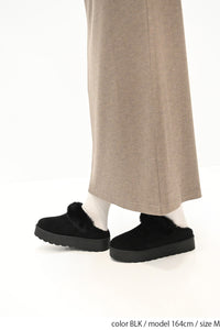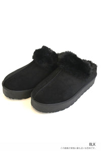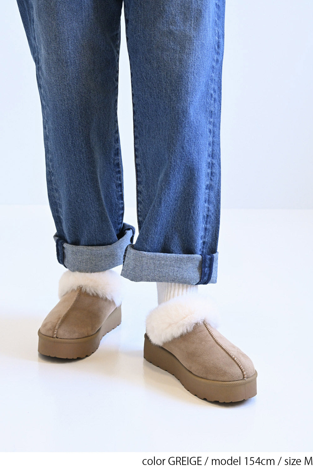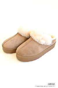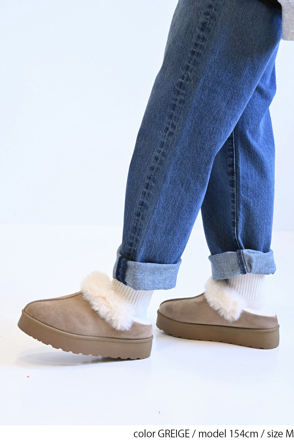 ふんわりファーが足元を包み込む、季節感たっぷりに仕上げたムートンサボ。