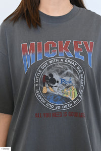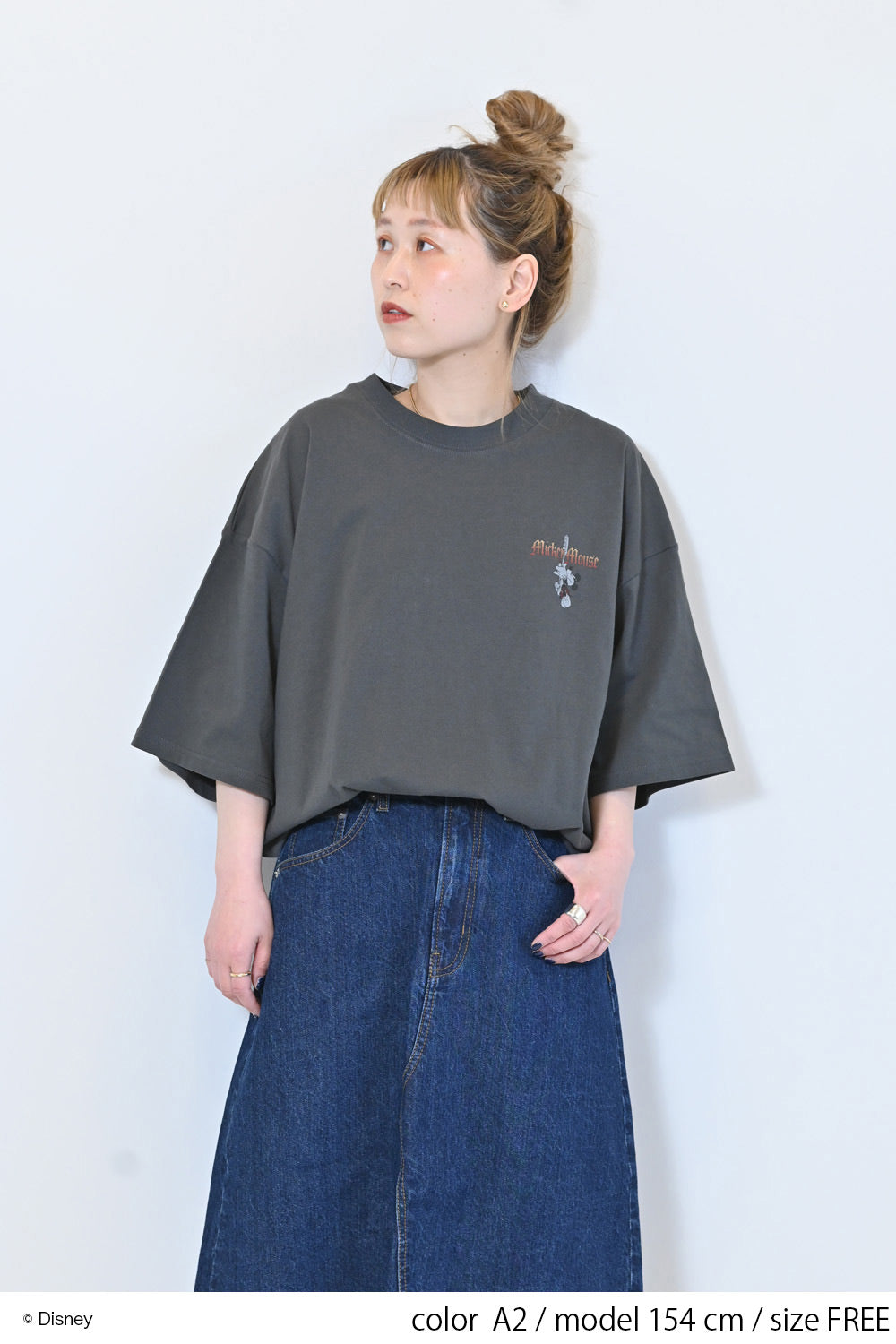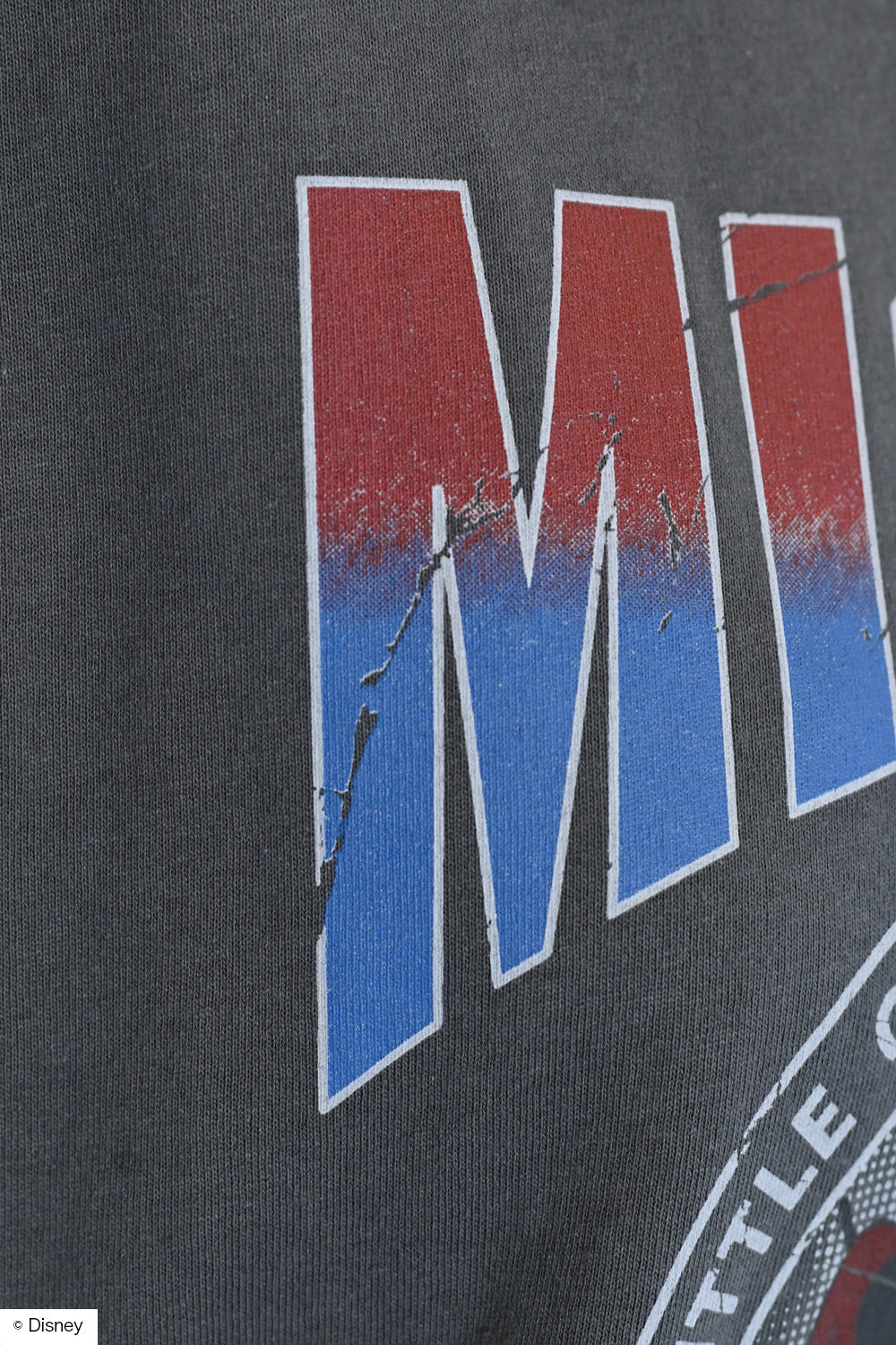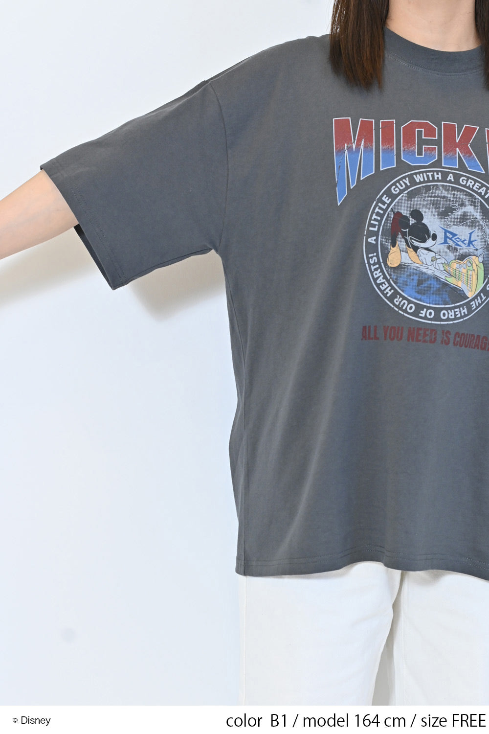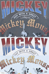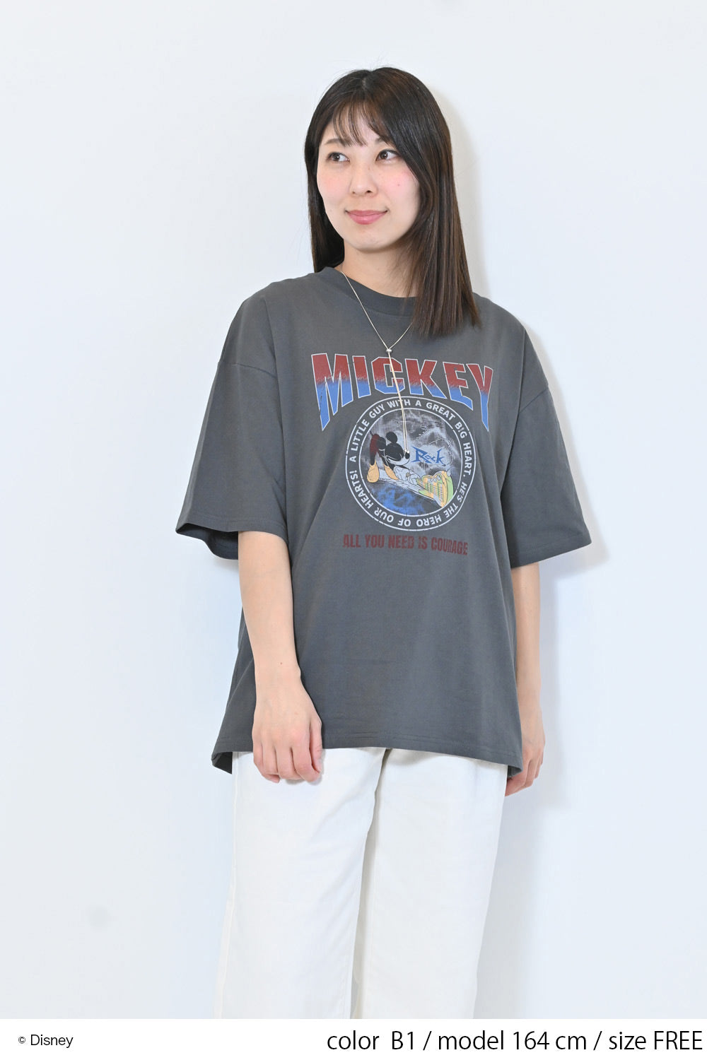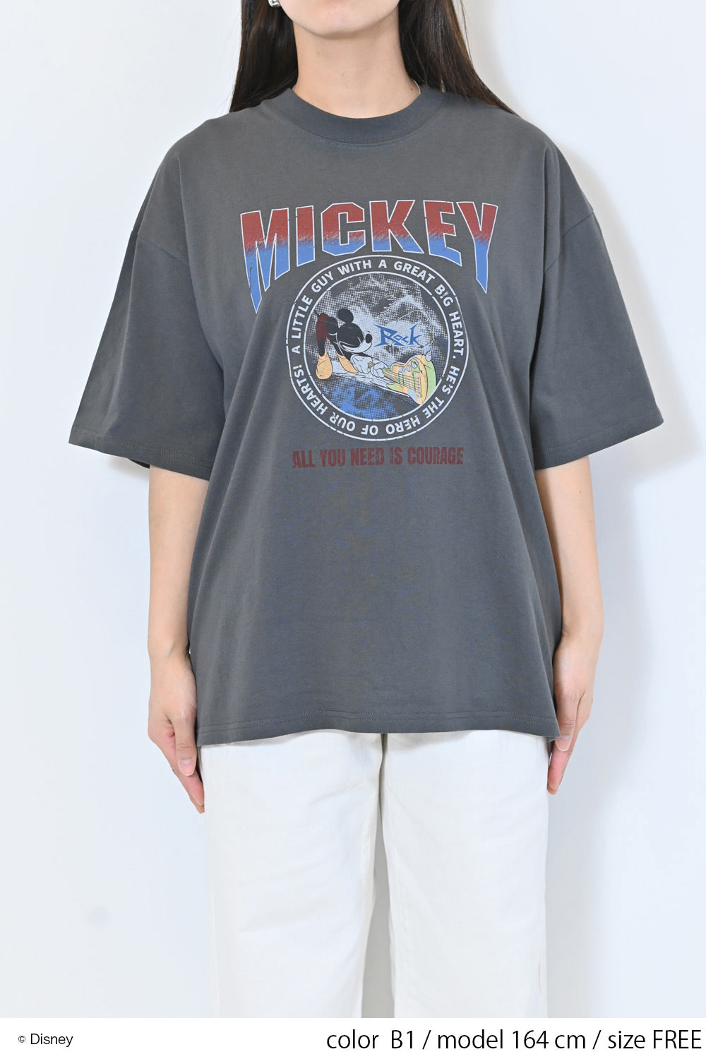 オールドイングリッシュや力強いミッキーマウスの表情がかっこいい半袖Tシャツ。