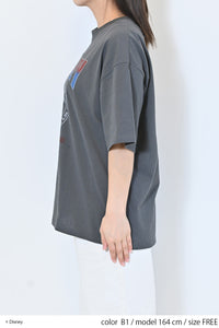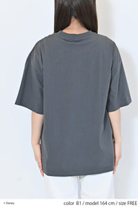 ピグメント風加工やかすれたプリントを施し古着のような風合いを表現。