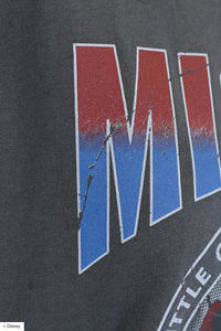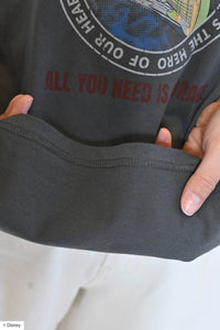 バンドTをイメージしたヴィンテージライクなグラフィックが特徴的。