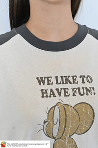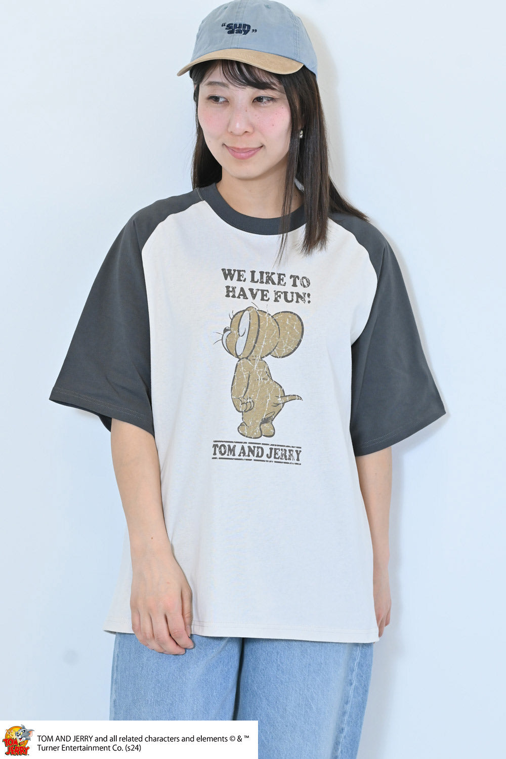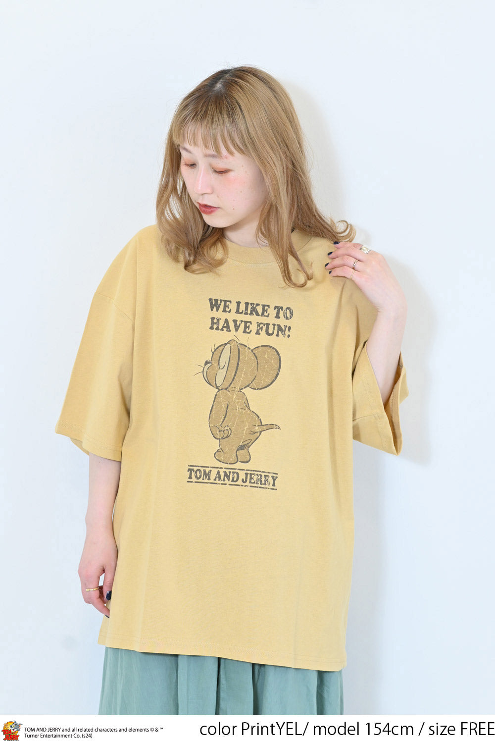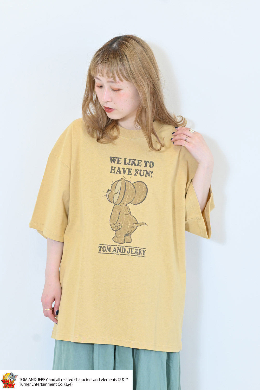 フロントにはかすれ加工で風合いを高めたトムジェリのアートワークをプリント。