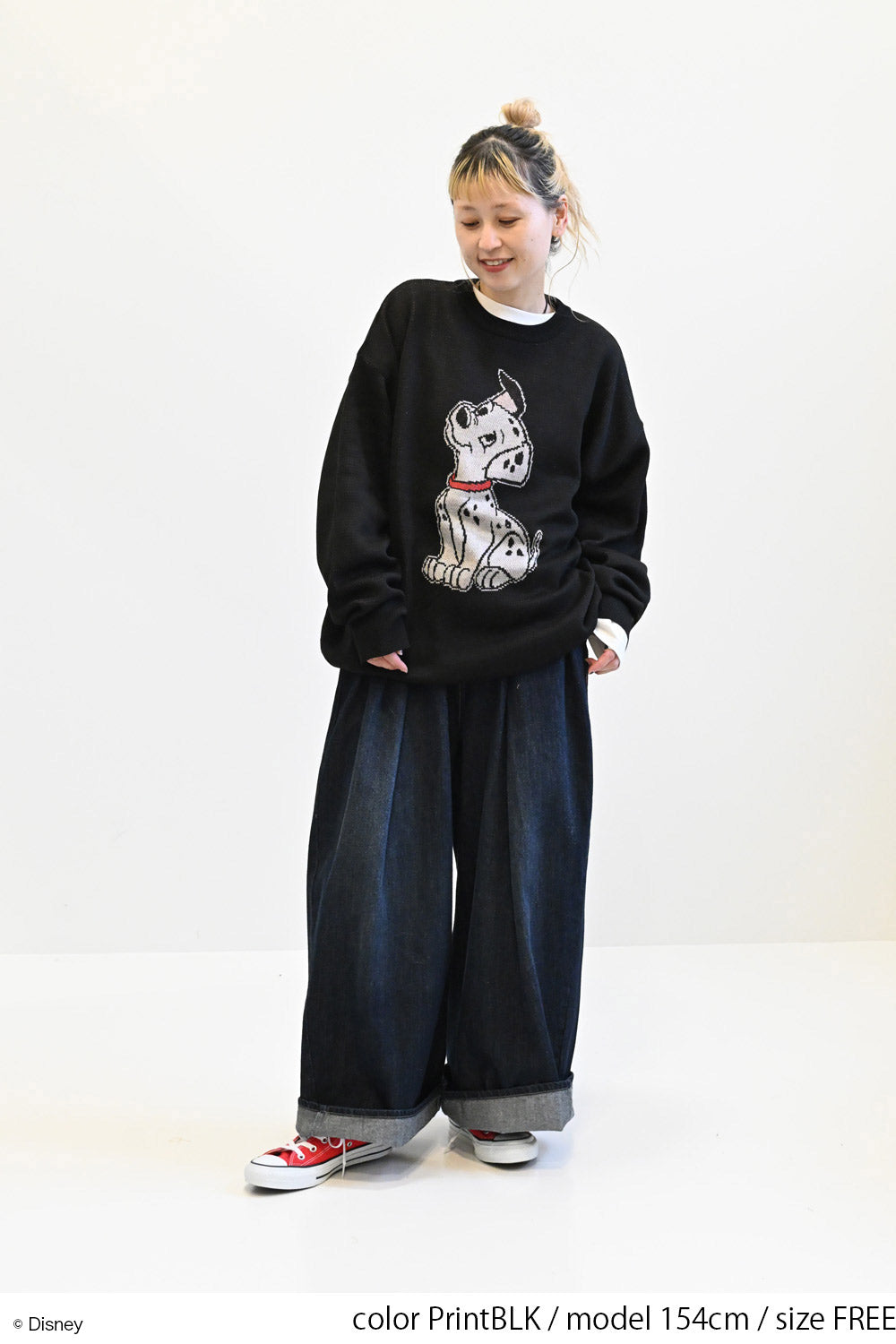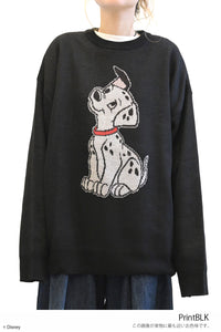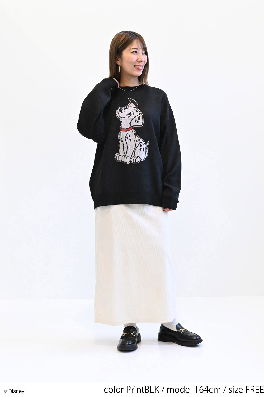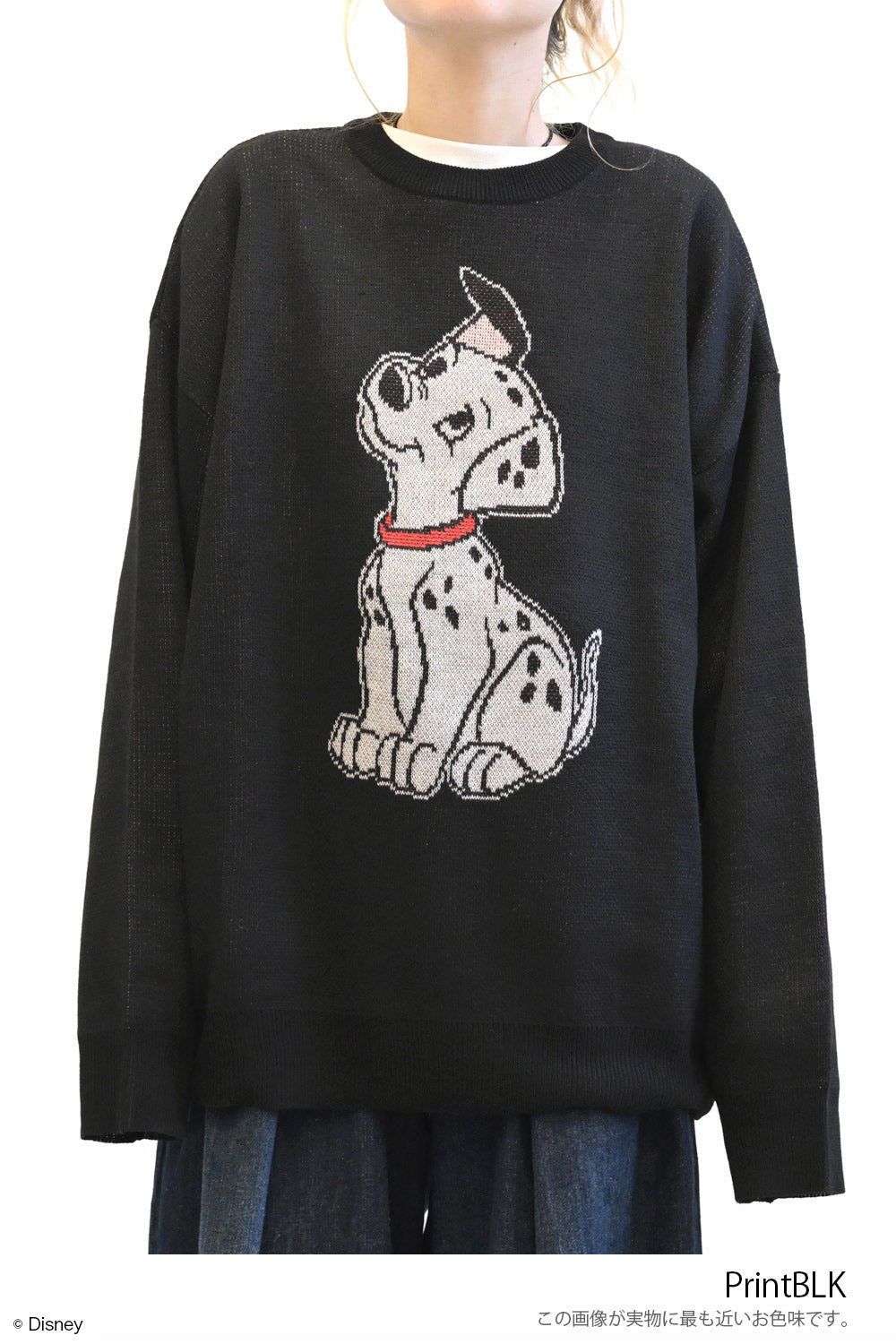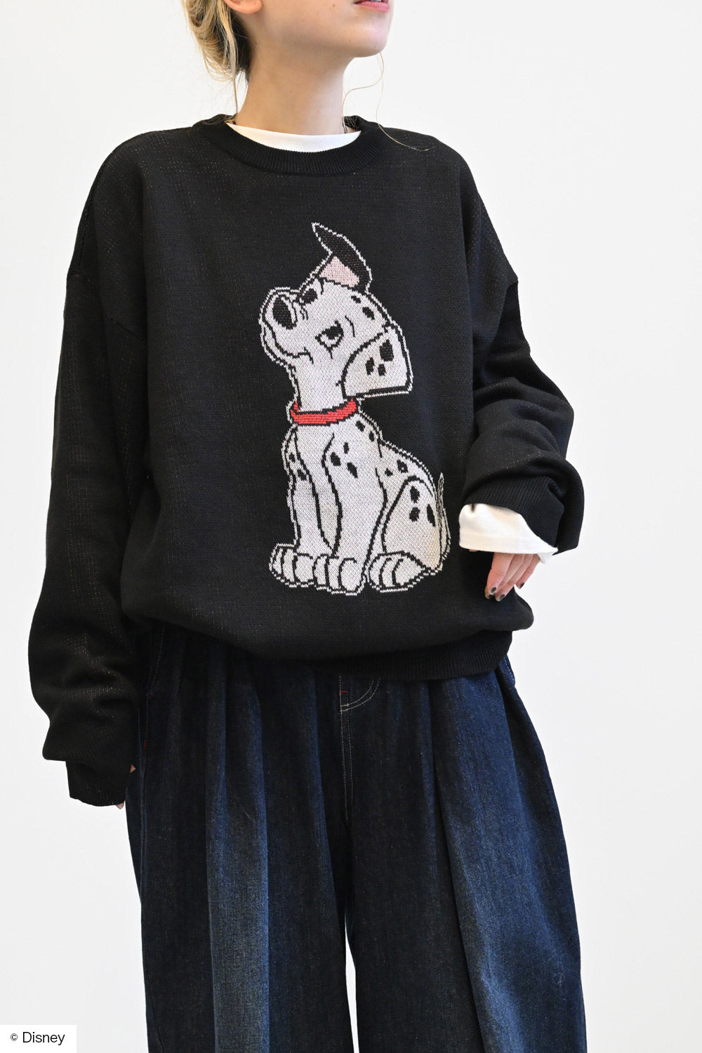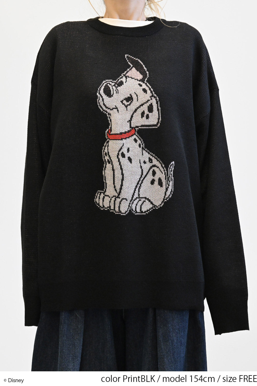 『101匹わんちゃん』の愛らしいアートワークを大胆に配置したジャガードニット。