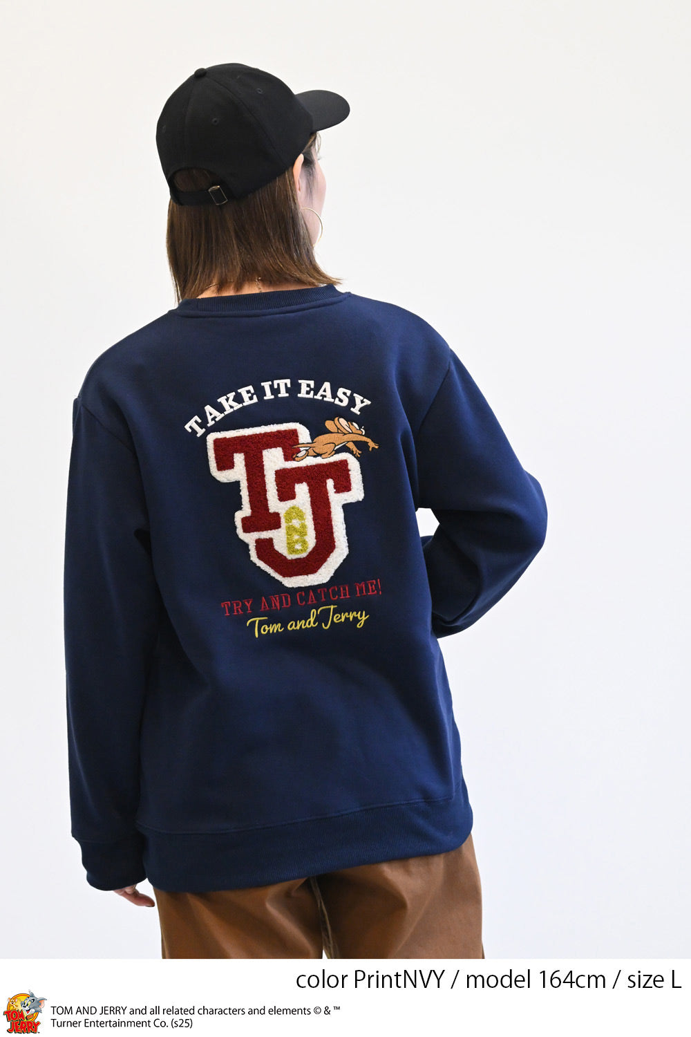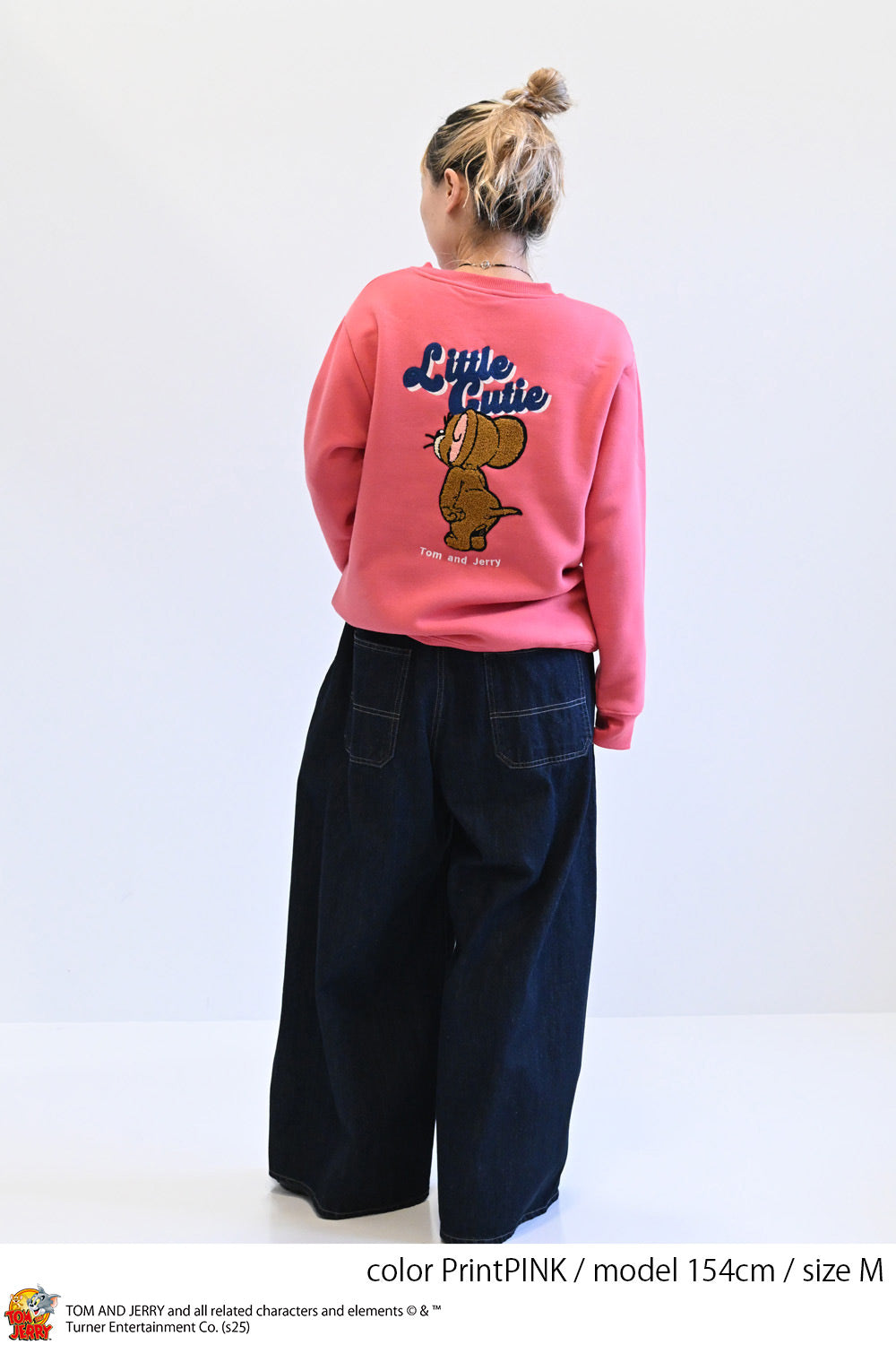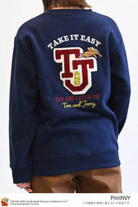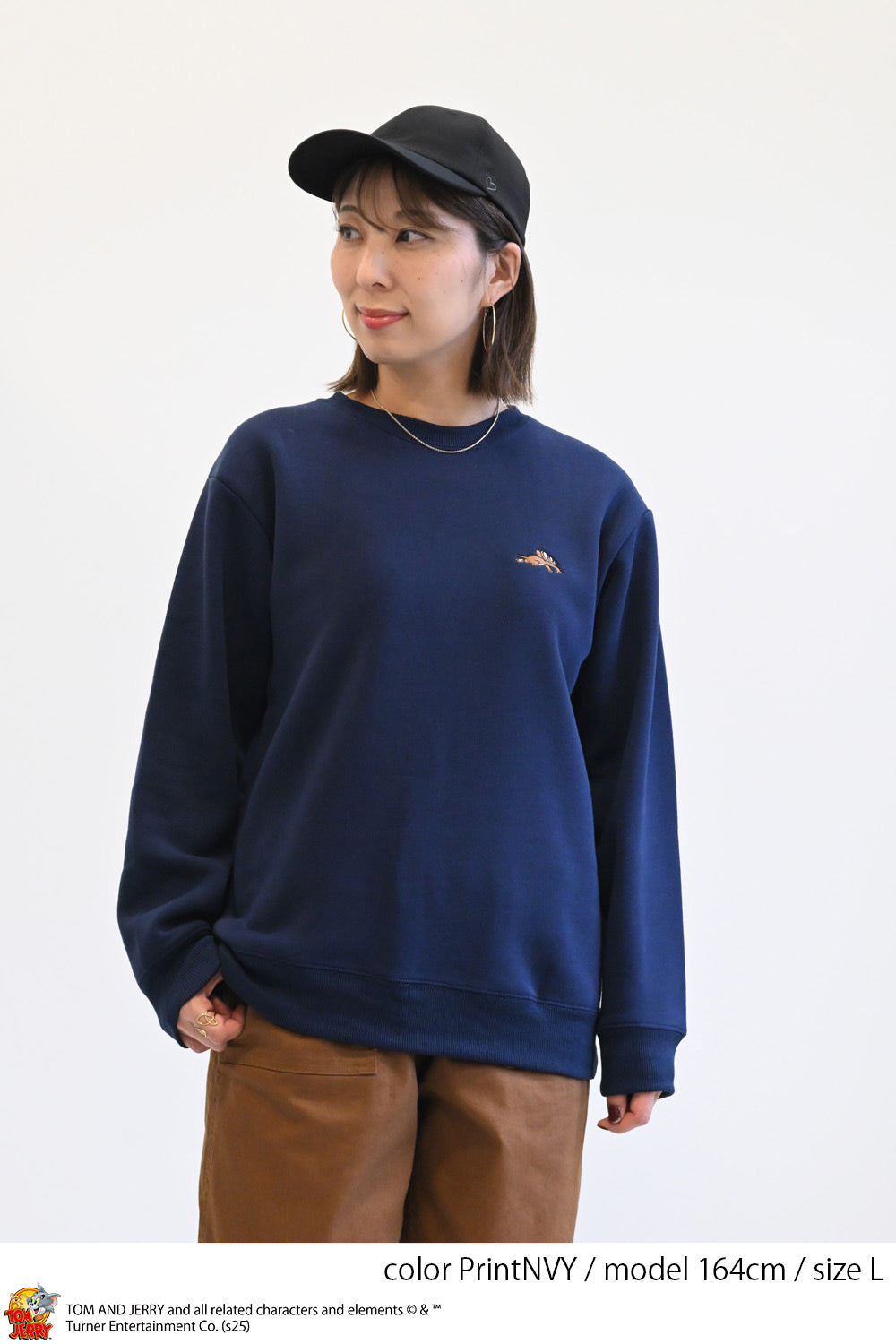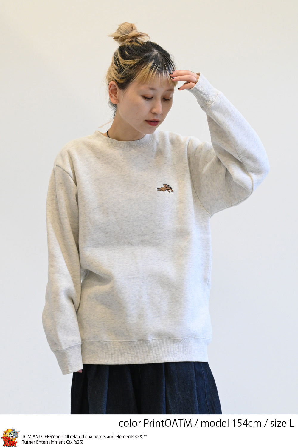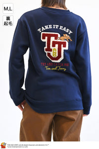 人気キャラクター「トムとジェリー」のイラスト刺繍が目を惹く裏起毛トレーナーです。