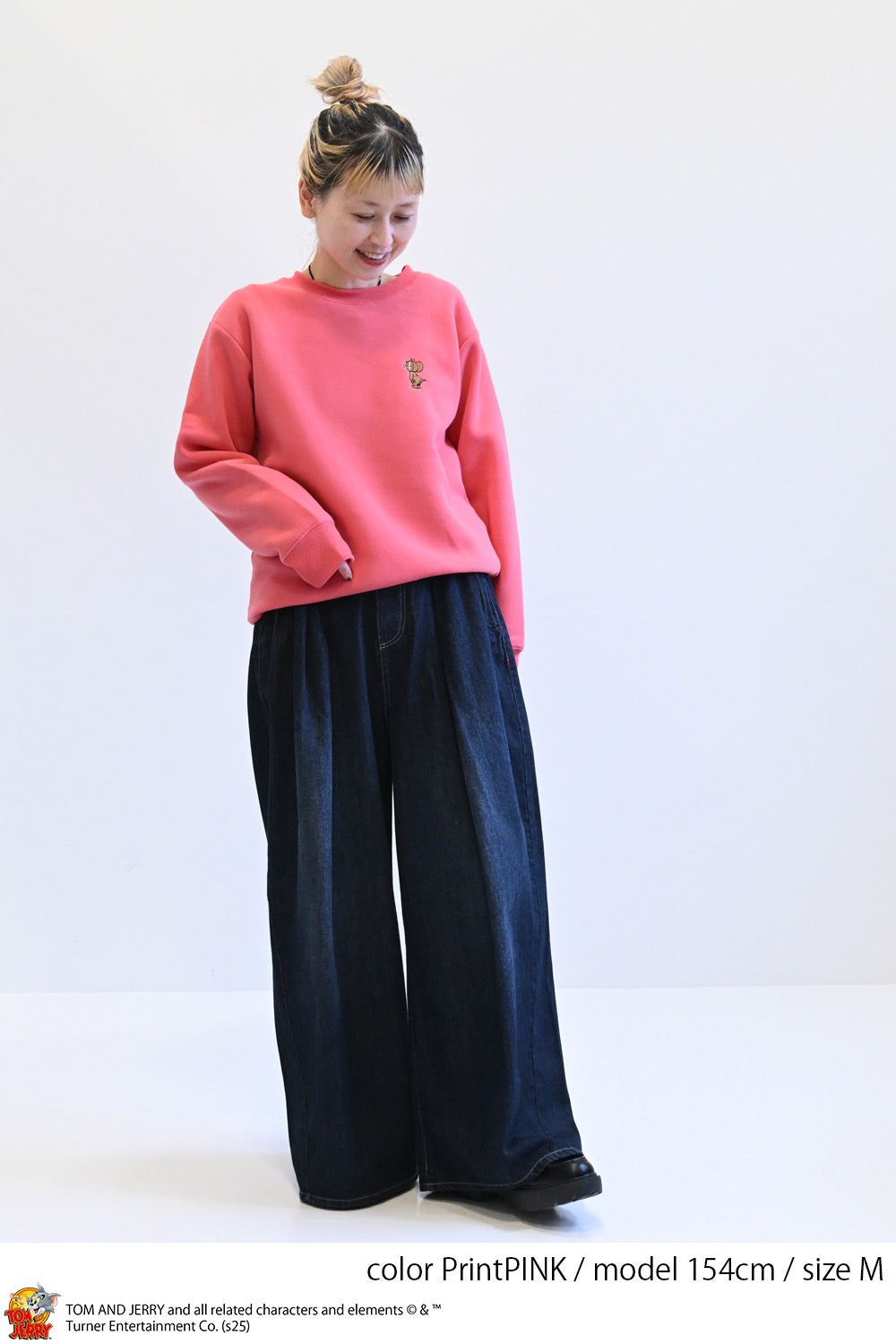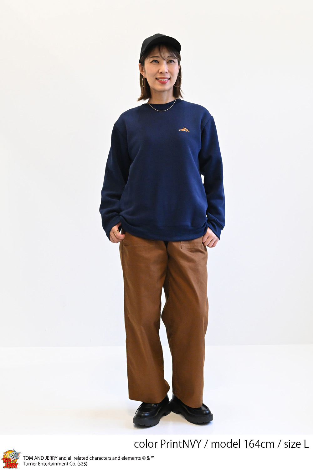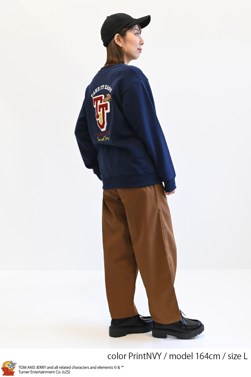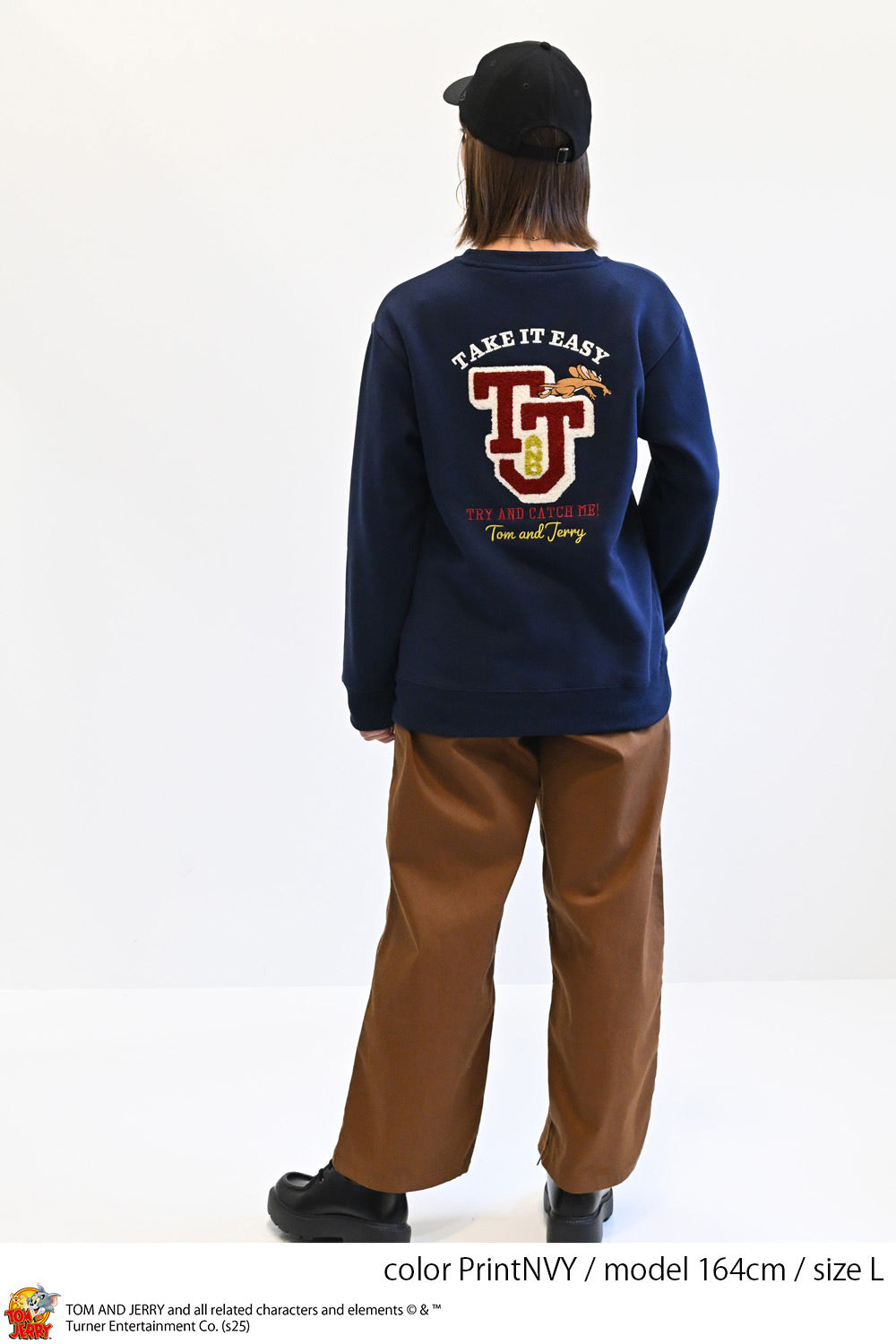 人気キャラクター「トムとジェリー」のイラスト刺繍が目を惹く裏起毛トレーナーです。