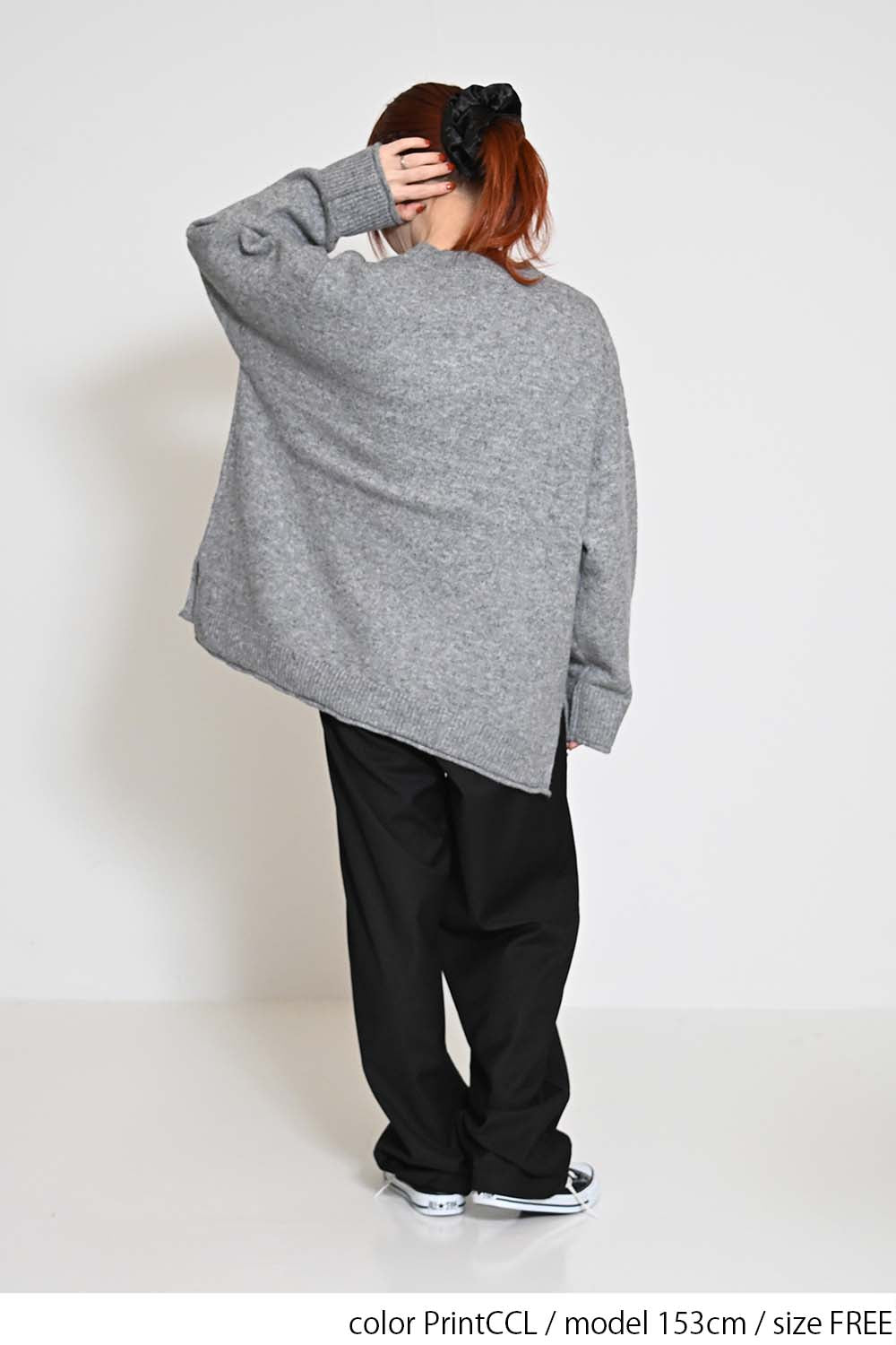杢感のある風合いが温かみを添えるフロントロゴセーター。