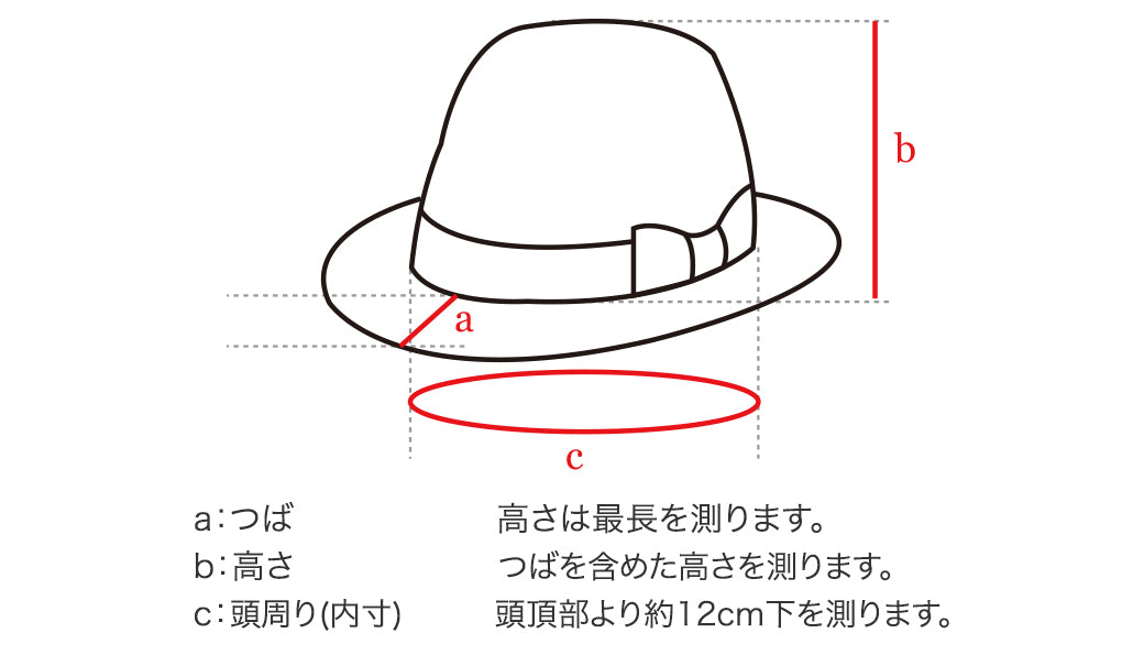 サイズ | つば | 高さ | 頭周り(内寸) |