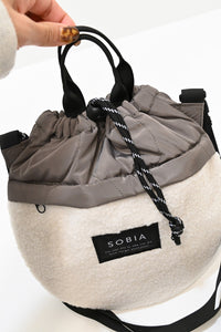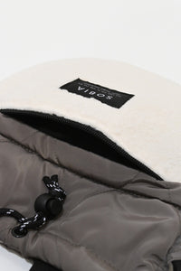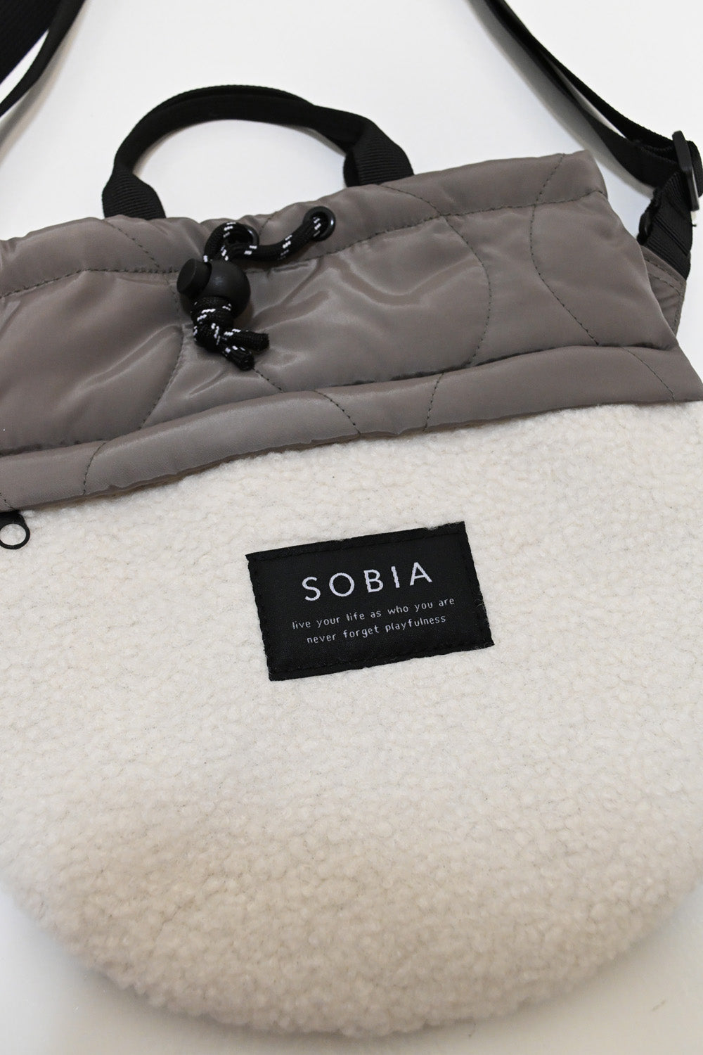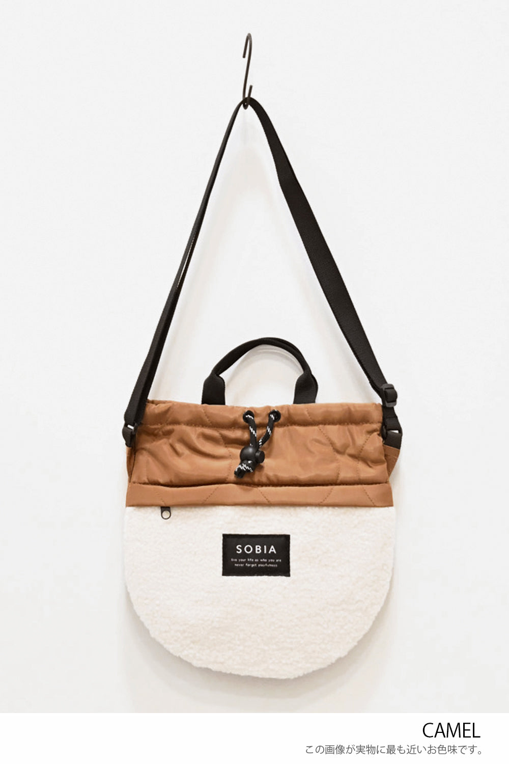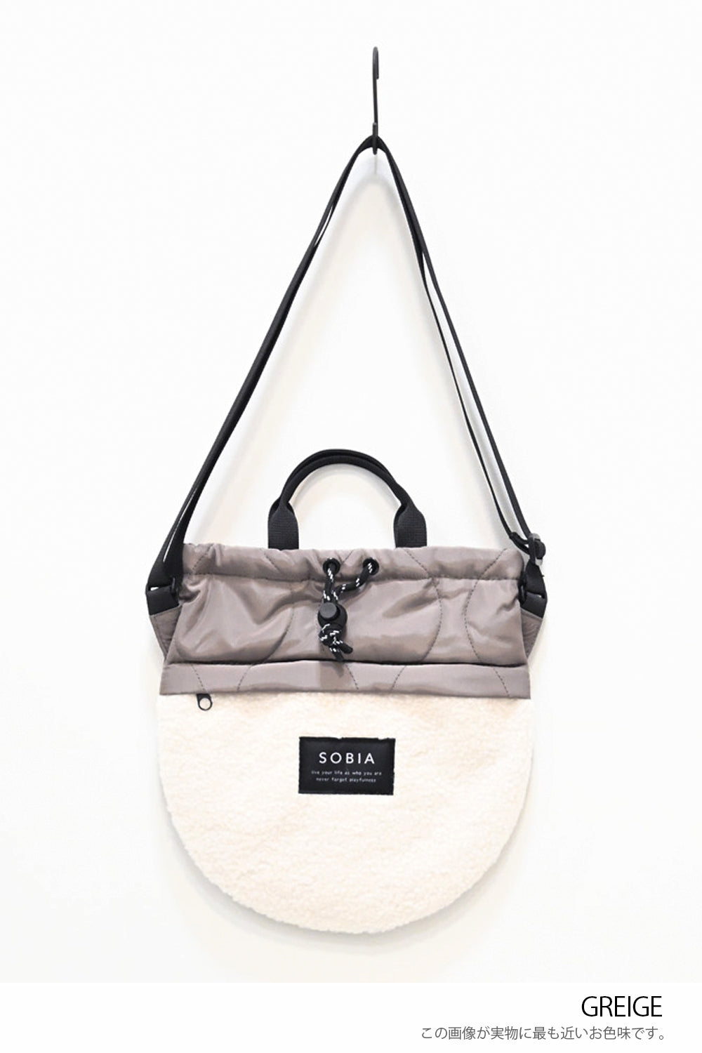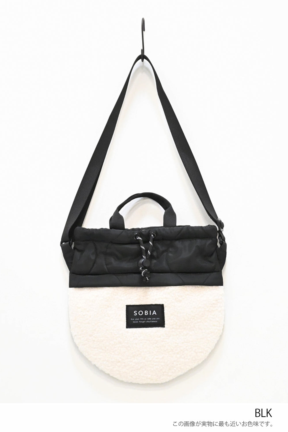 ころんとした丸いフォルムが可愛い、キルトボア素材のサークル型ミニショルダー。