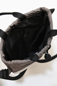 フラットショルダーと巾着ショルダーの2WAYのシルエットを楽しめます。