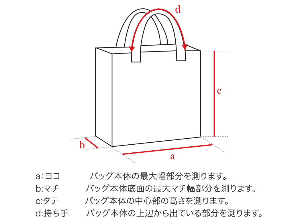 | サイズ | ヨコ | マチ | タテ | 持ち手 |