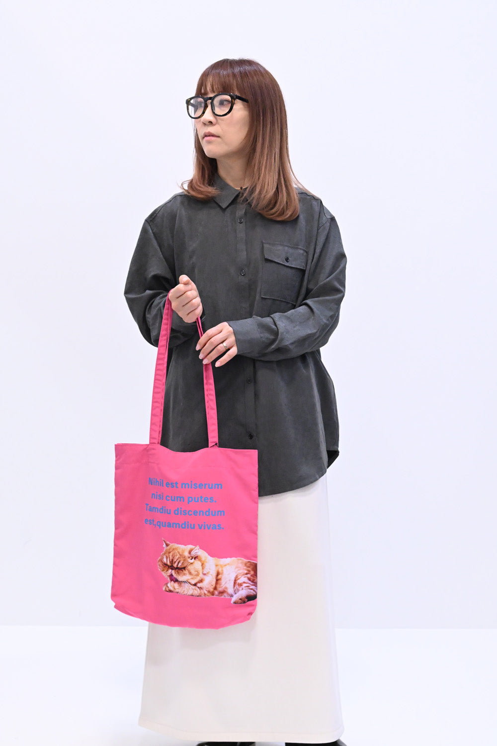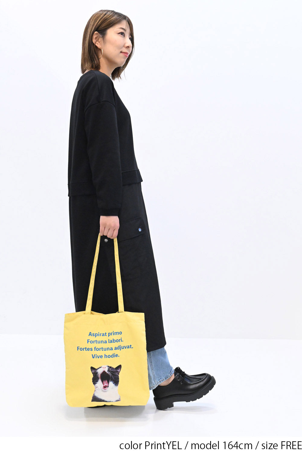 シンプルな服装でもバッグのアニマルプリントが映え、アクセントとして活躍します。