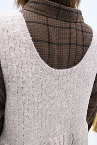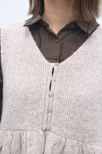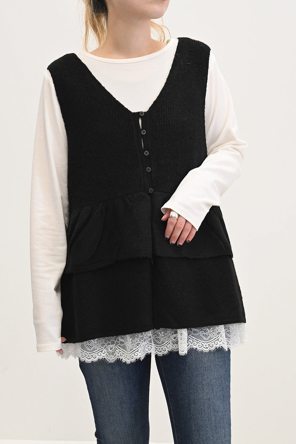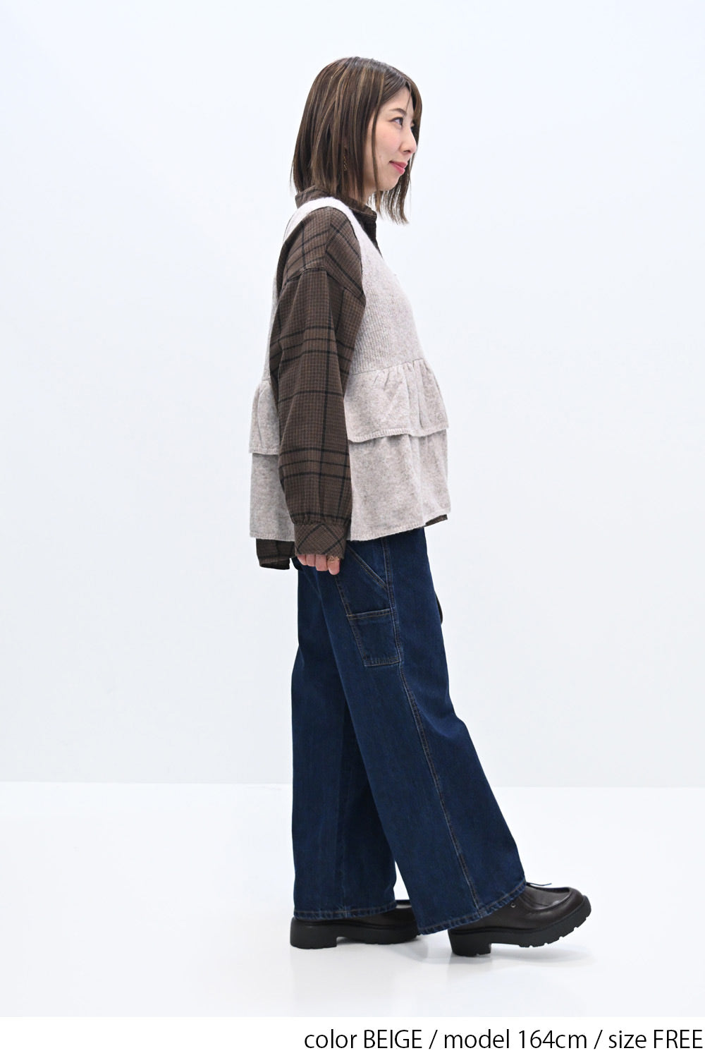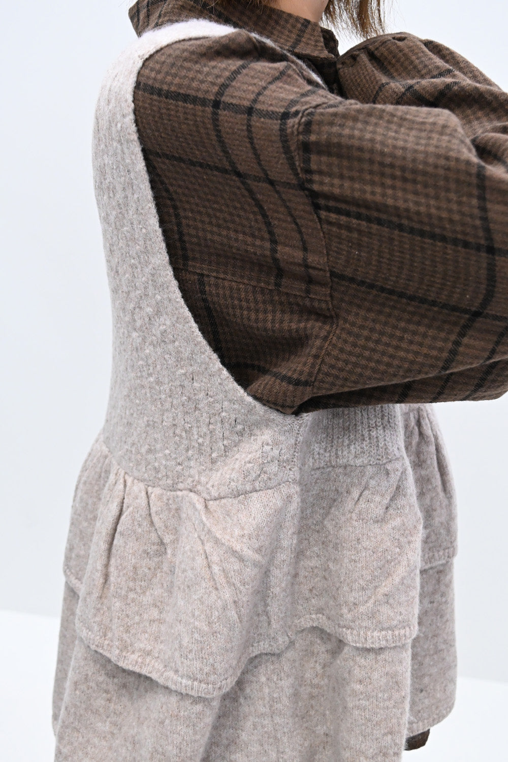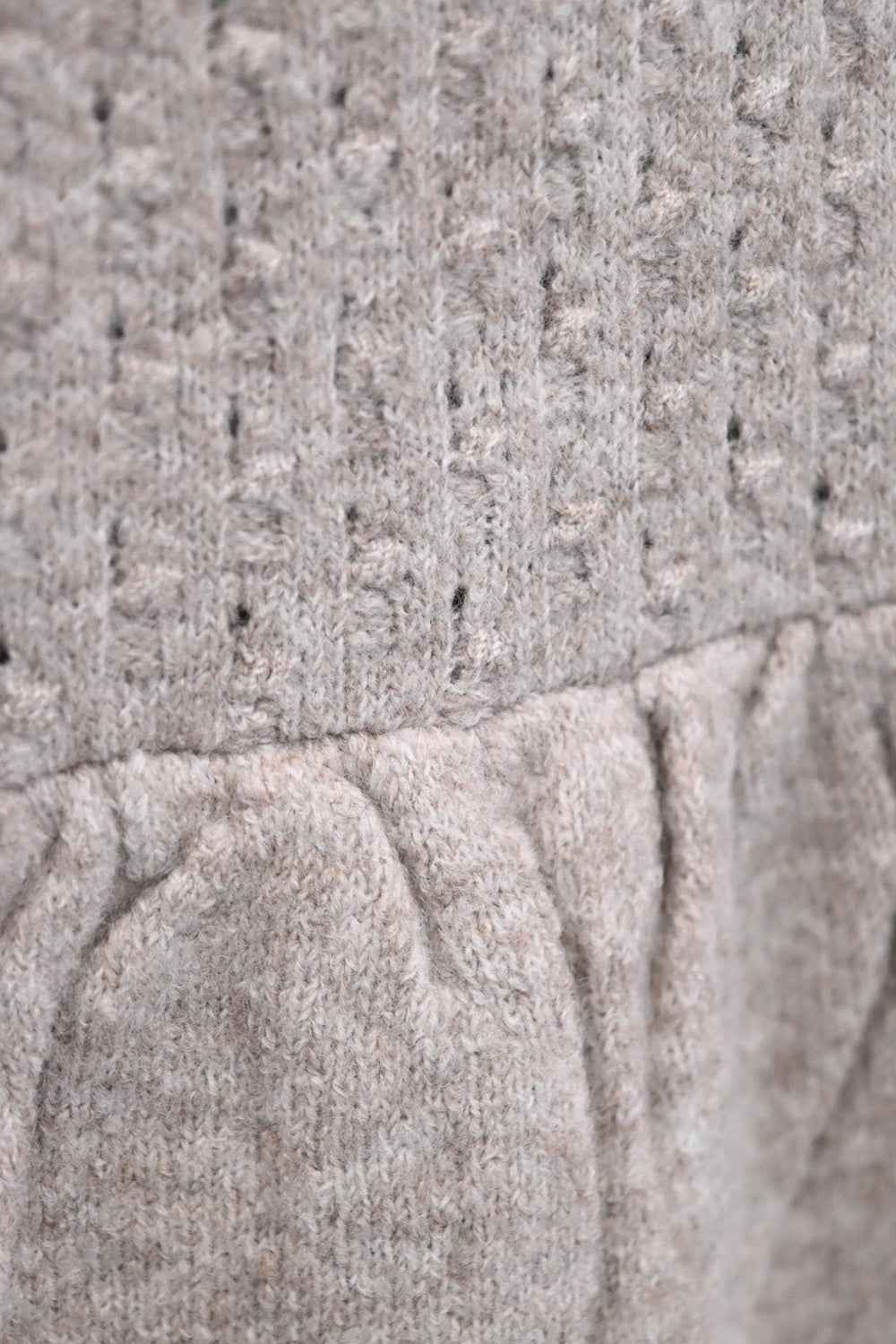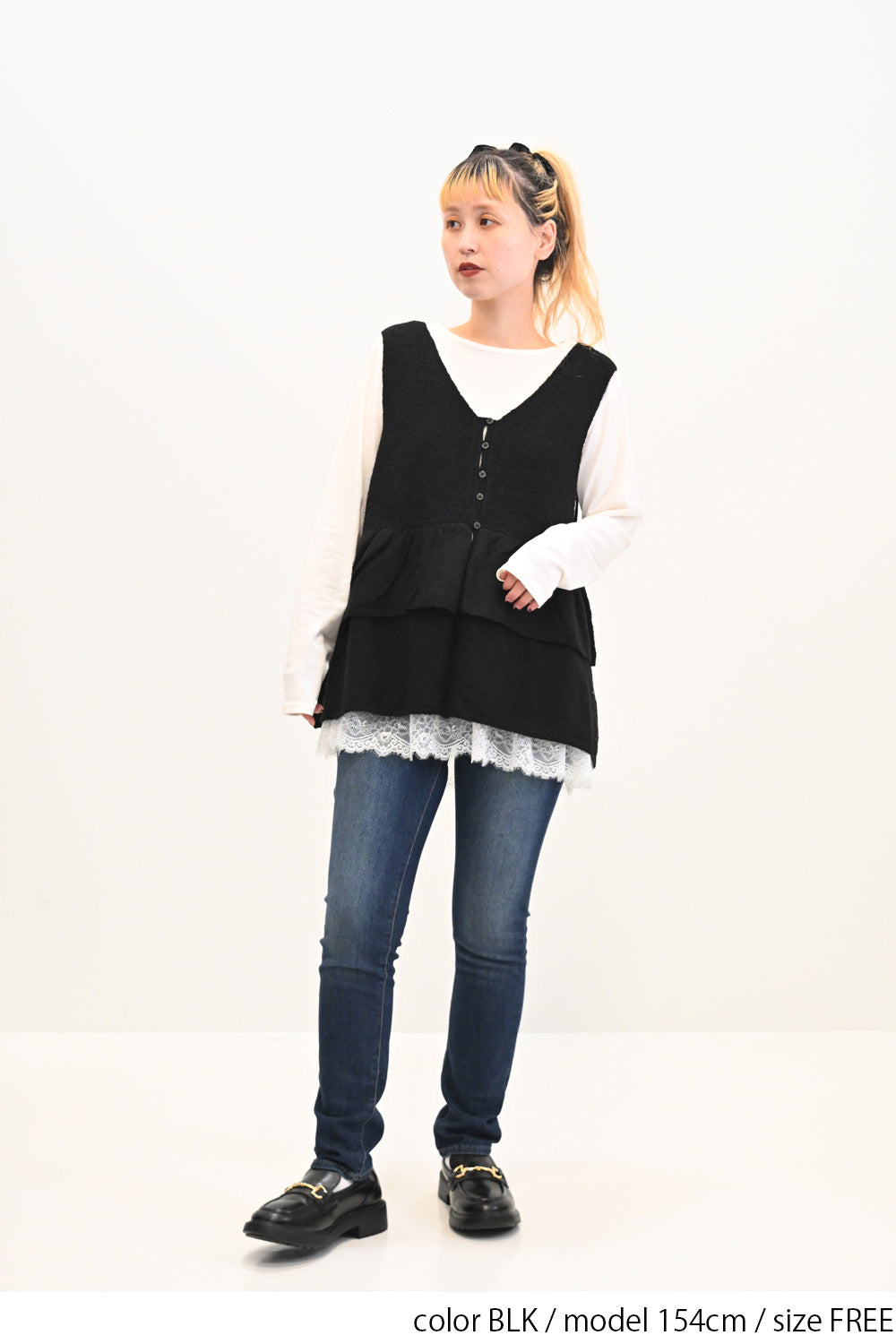 ふんわりとした裾フリルが目を惹く、愛らしい雰囲気のニットベスト。