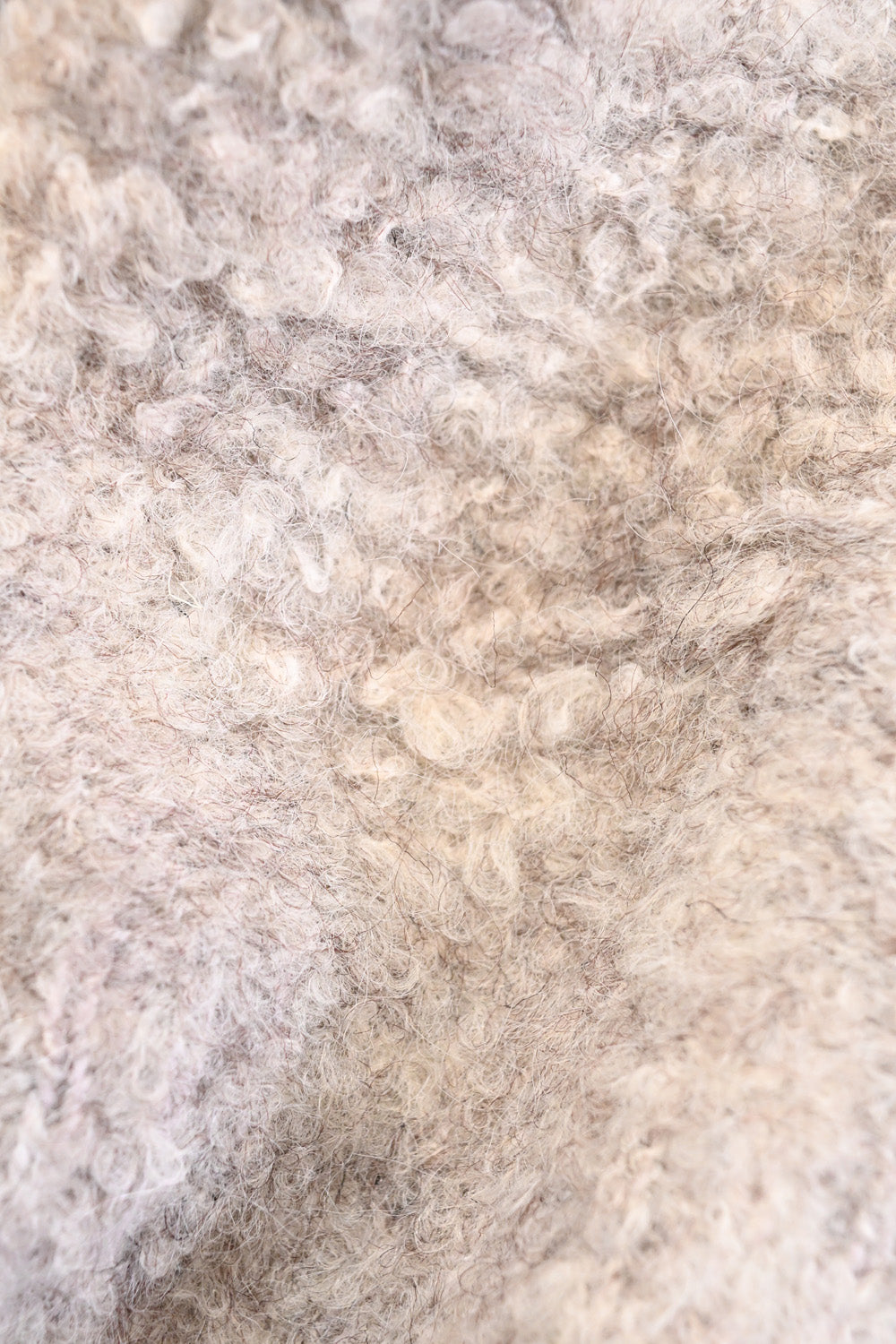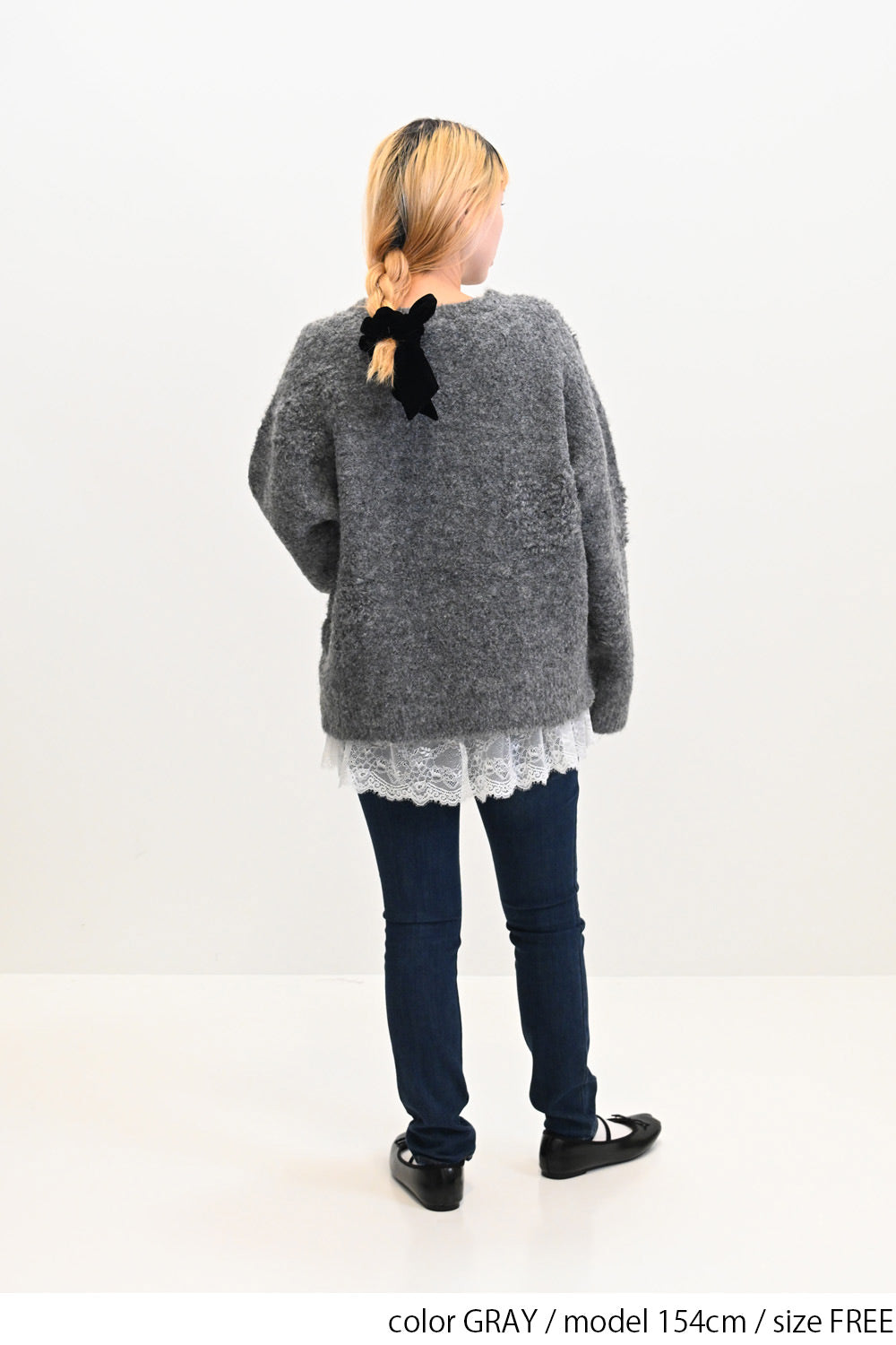 毛足のある表面感が、シンプルなコーデに華やかさを添えます。