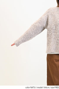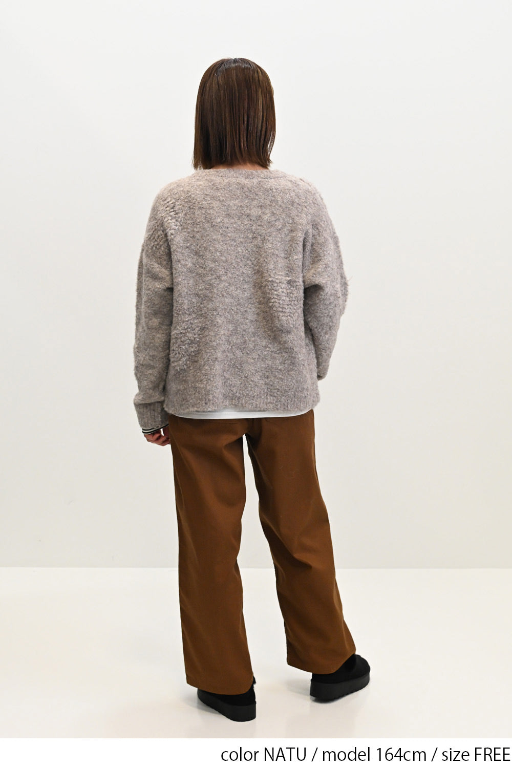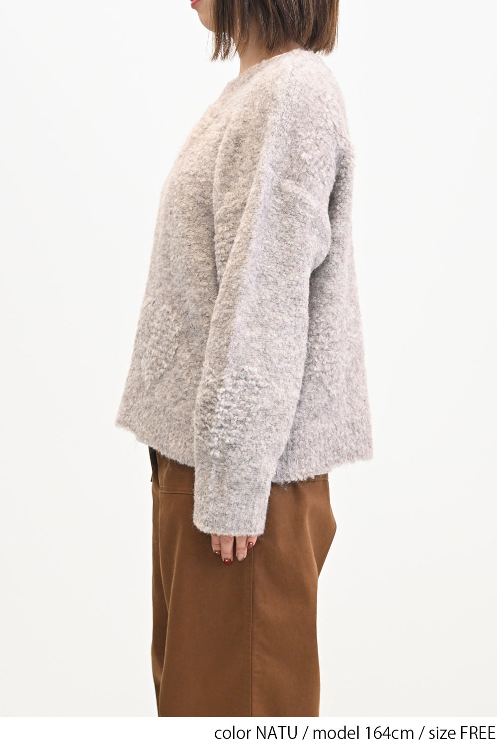 ふっくらとした編み地が自然なボリュームを生み、シンプルながらも一枚で存在感のあるスタイリングが叶います。