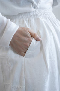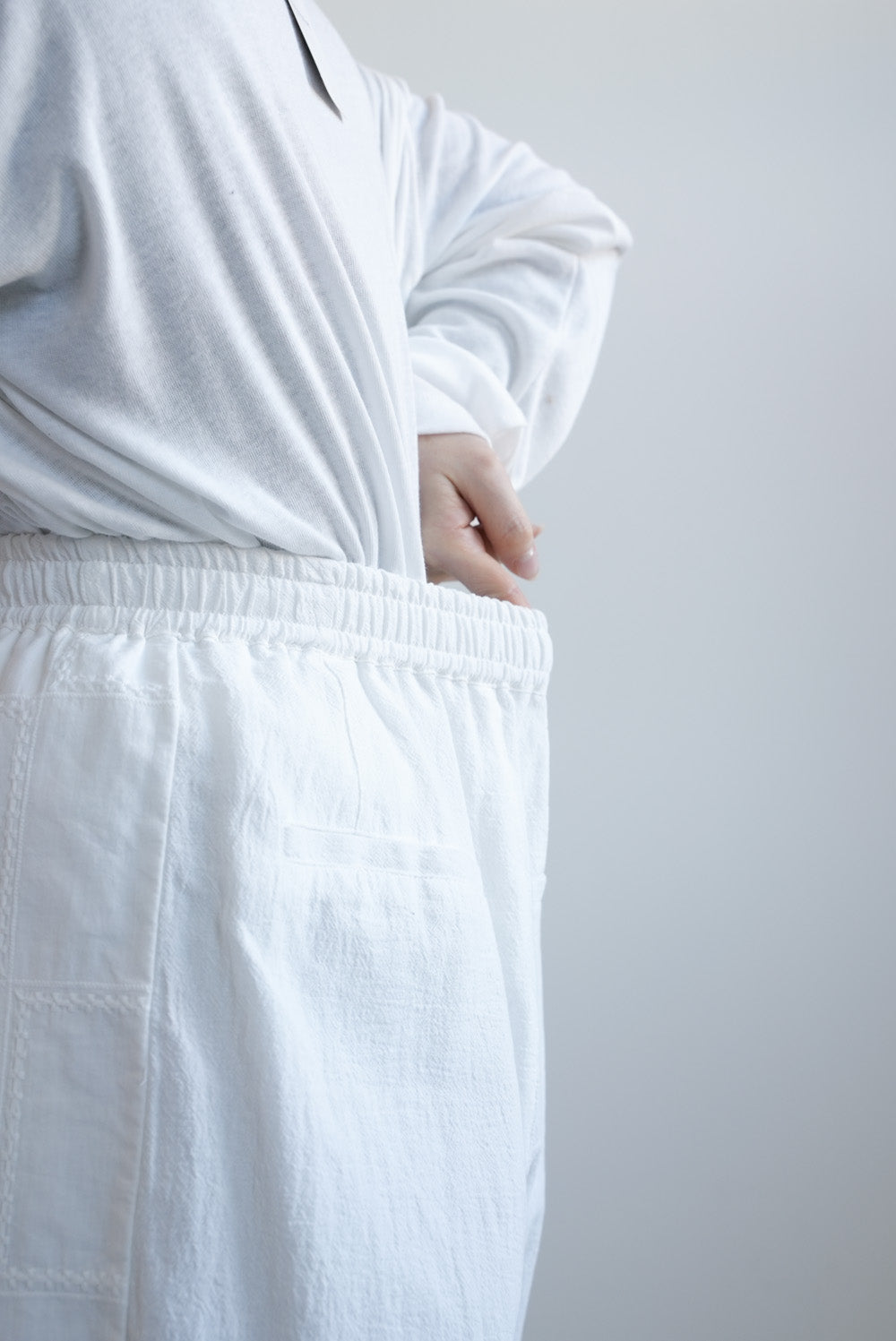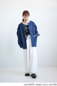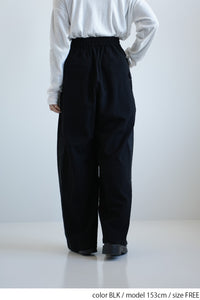 ウエストは総ゴム仕様に調節紐付きで、締め付け感が少なくリラックスして着用できます。