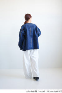 程よいワイドシルエットで、体のラインを拾いにくく、大人のデイリーコーデに取り入れやすい一本です。