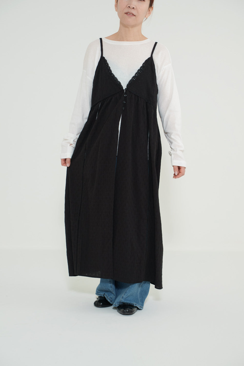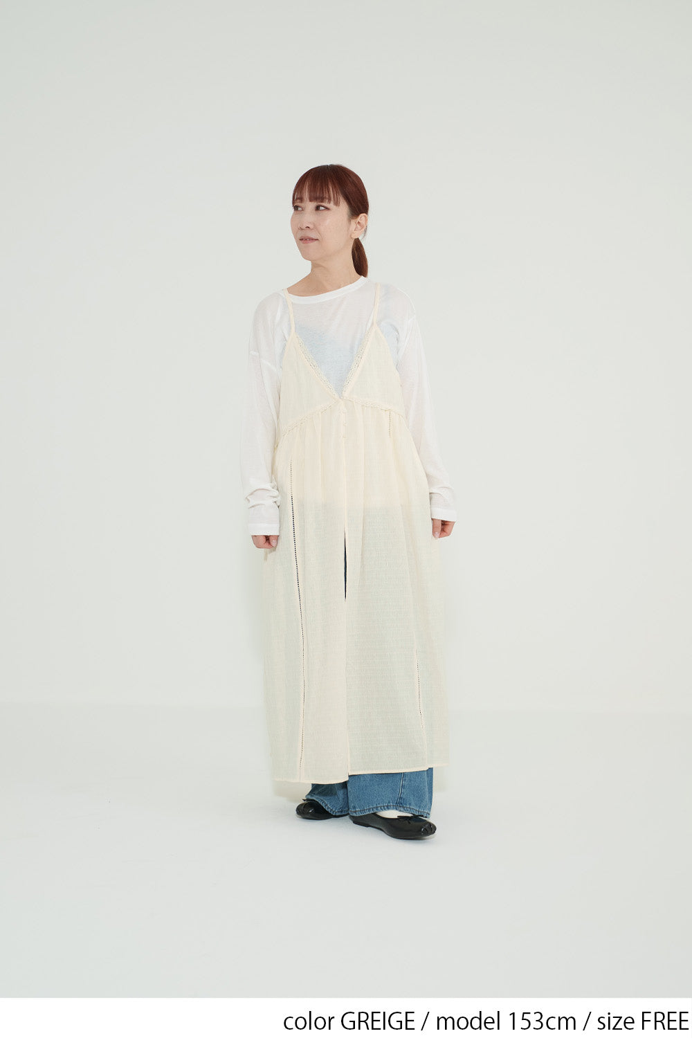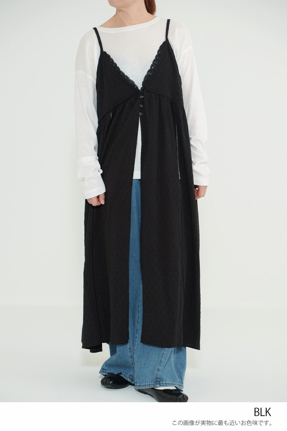 重ねるだけでコーデに奥行きが生まれる、着回し力の高いキャミワンピースです。