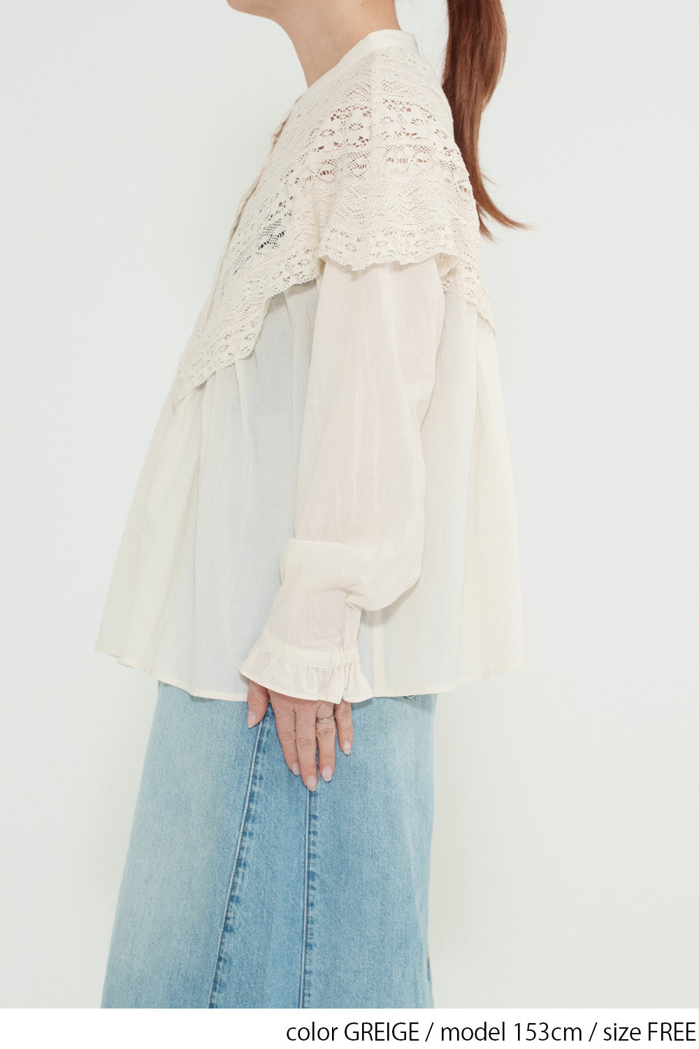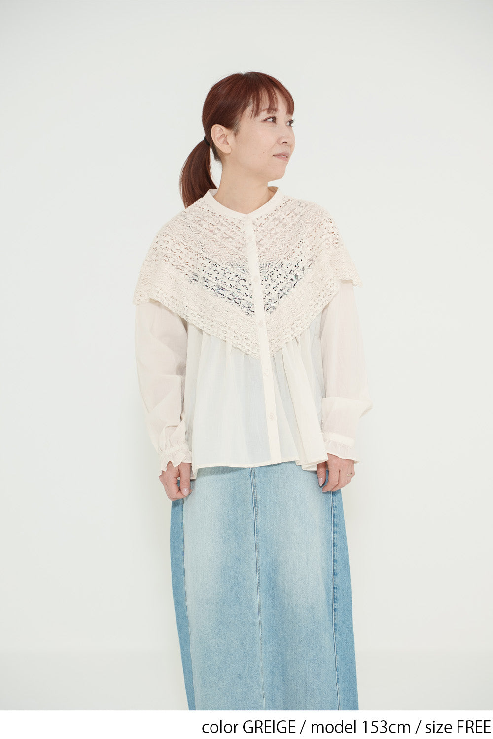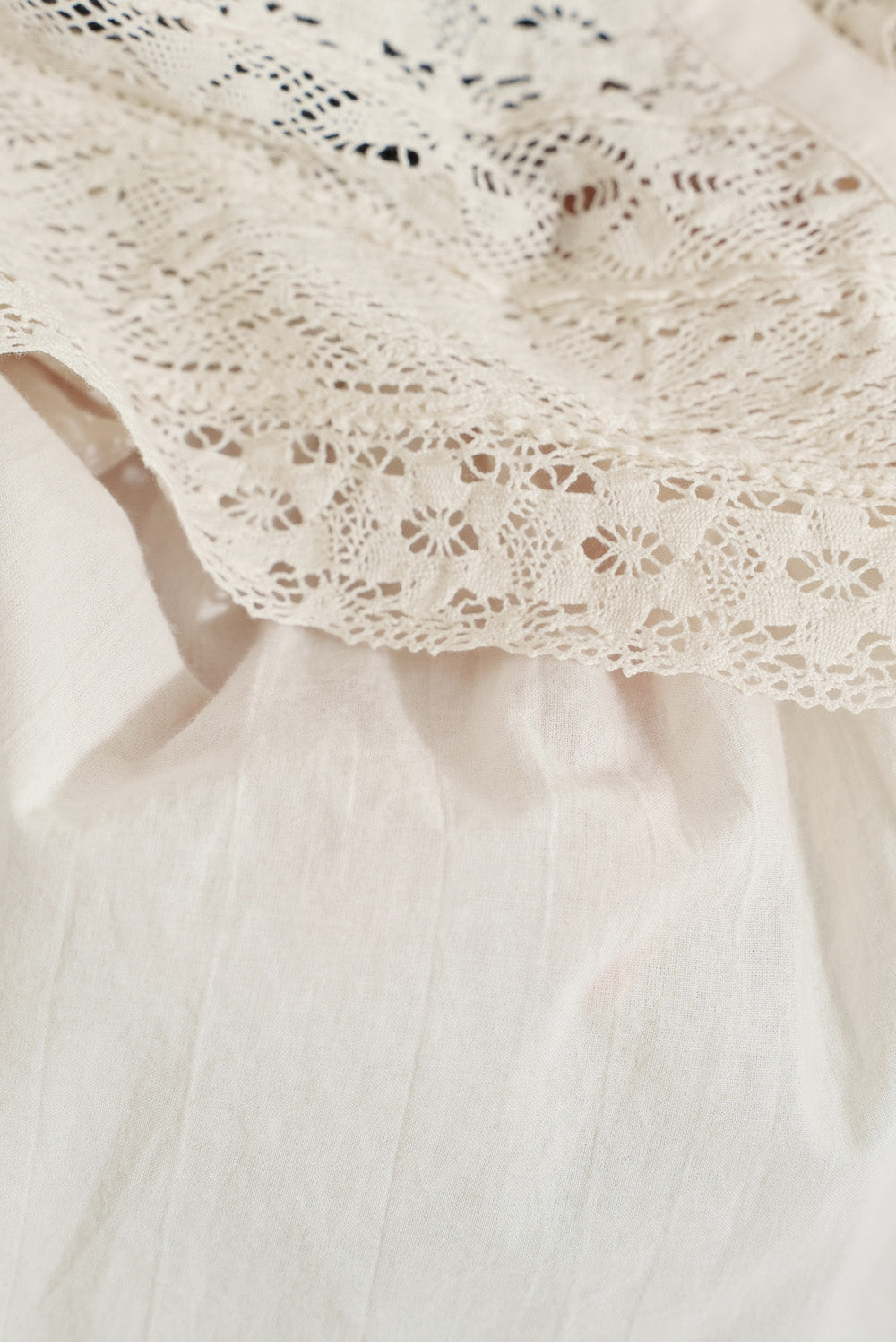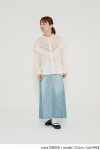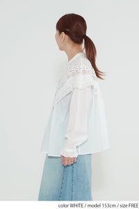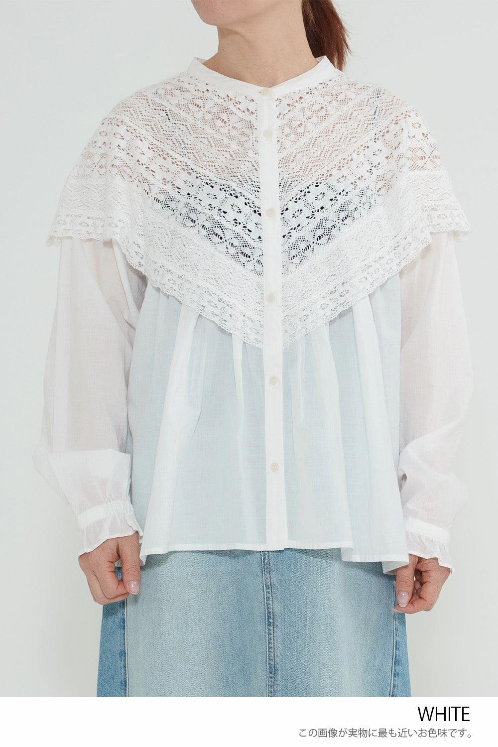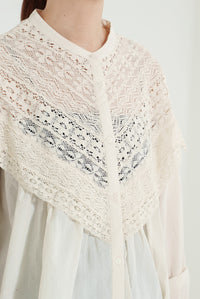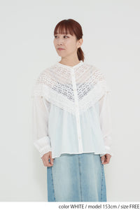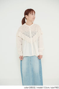 コットンやリネンの風合いとレースの繊細さが調和し、やわらかく女性らしい着こなしが完成します。
