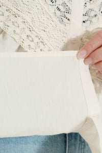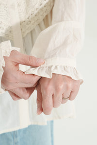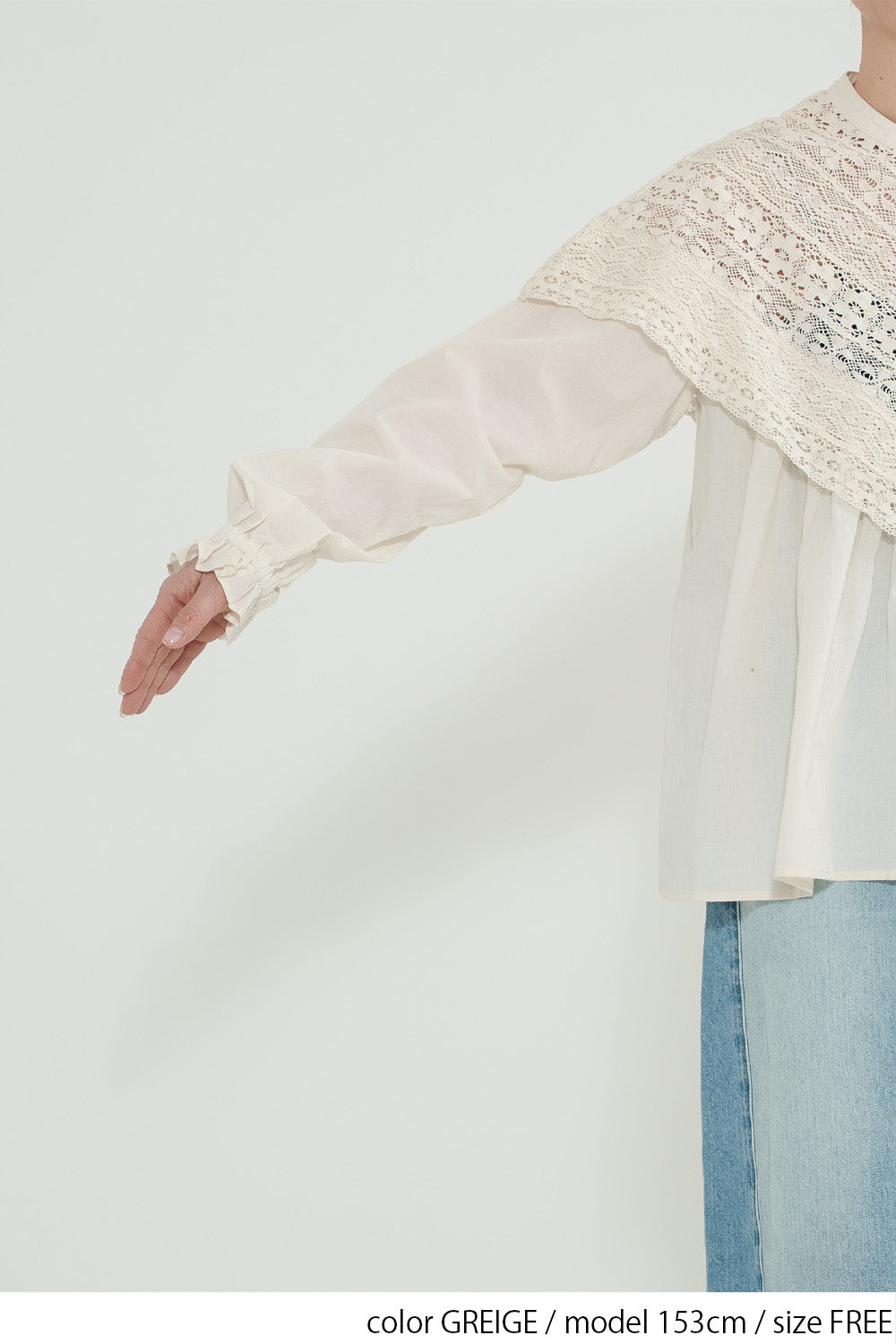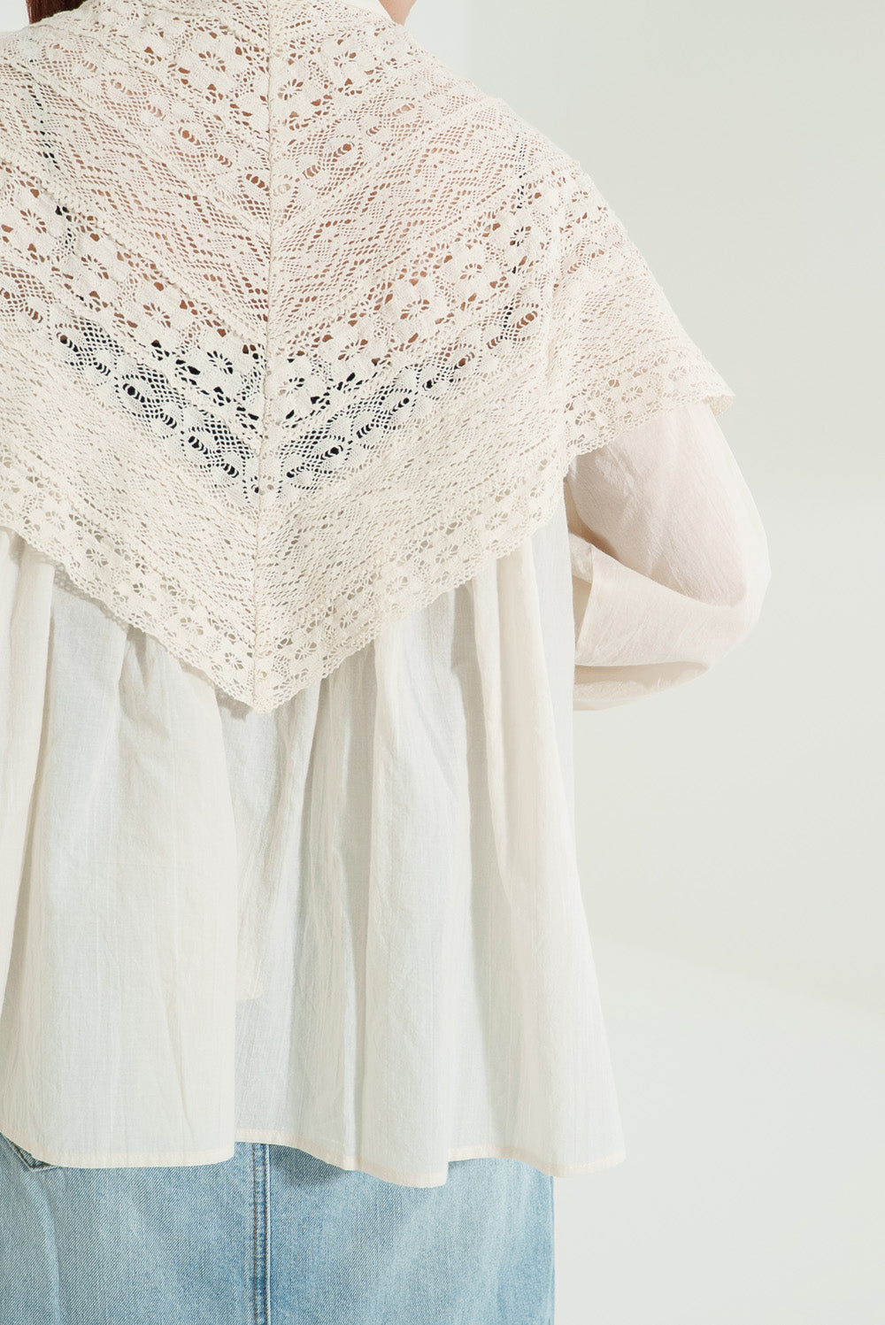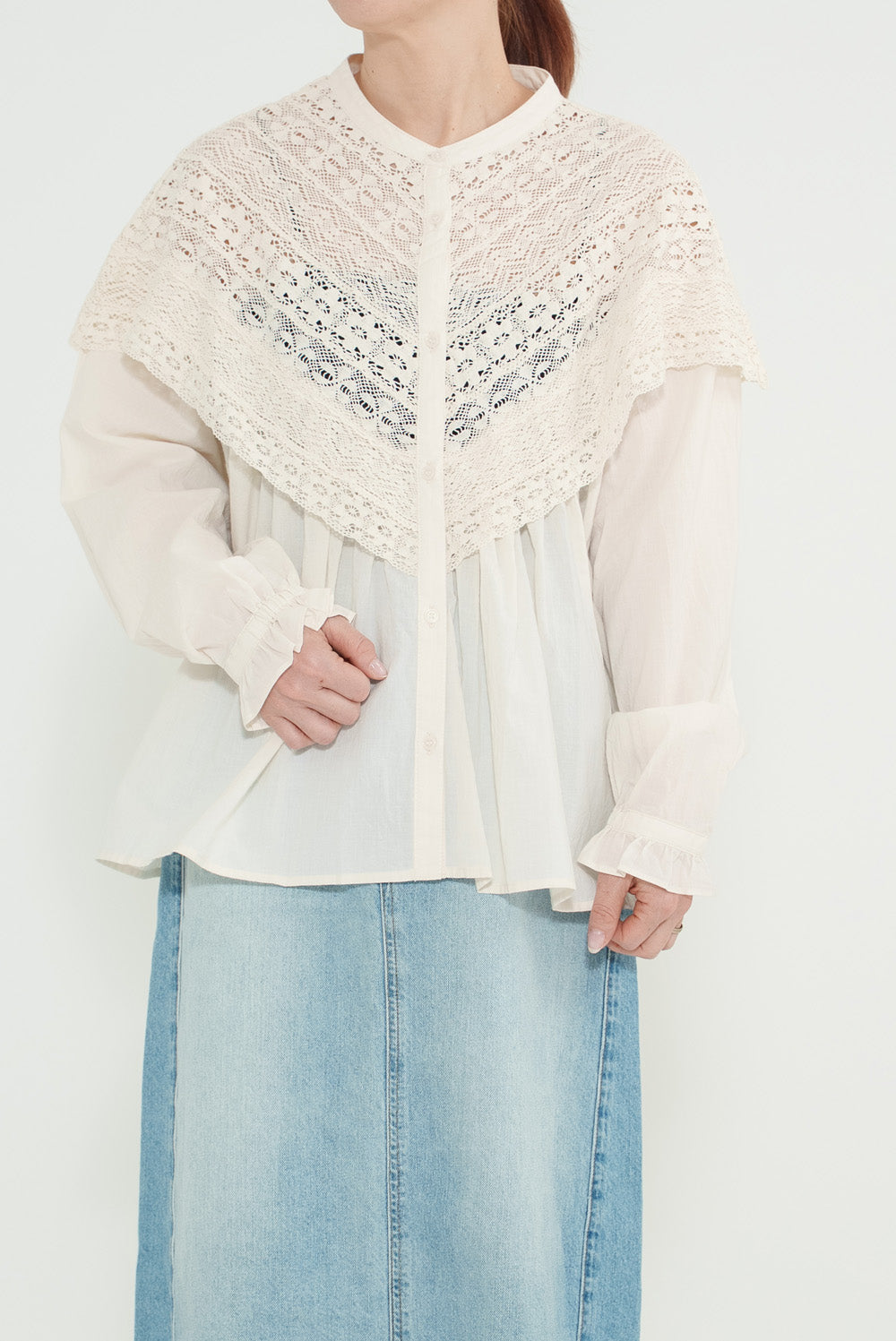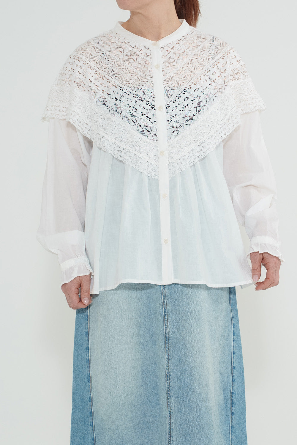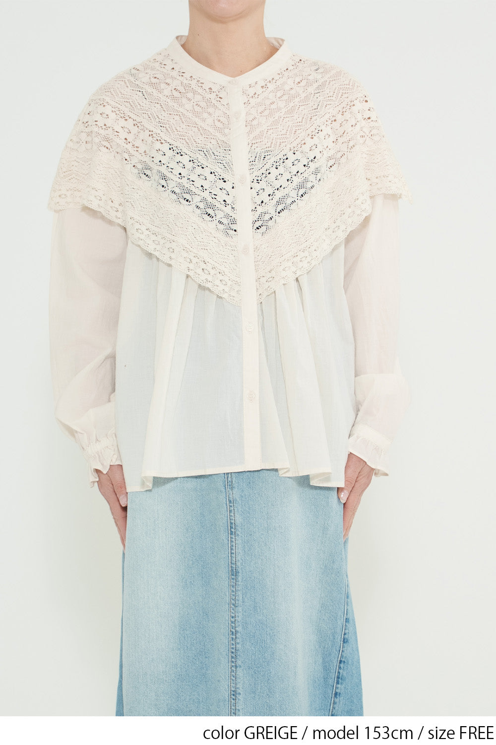 コットンやリネンの風合いとレースの繊細さが調和し、やわらかく女性らしい着こなしが完成します。