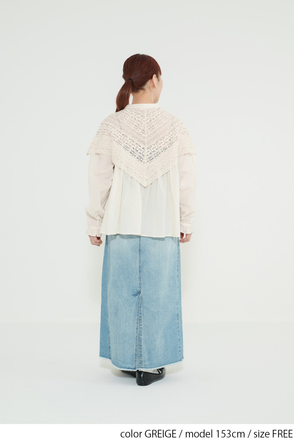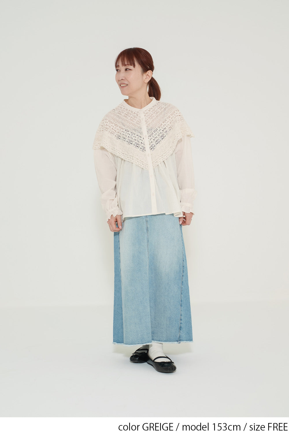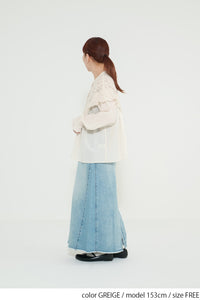 レースの甘さをデニムが程よく中和し、大人の余裕を感じるデイリースタイルに仕上がります。