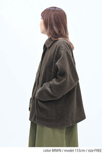前を閉めてトップス風に着ても、ラフに羽織ってもサマになる万能アイテム。