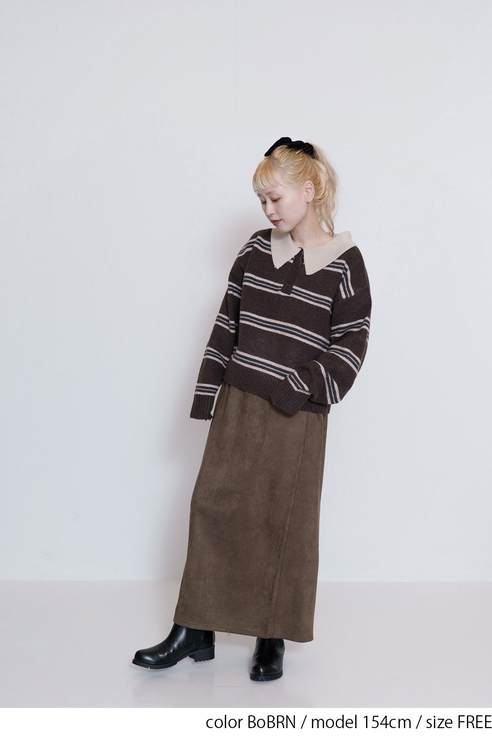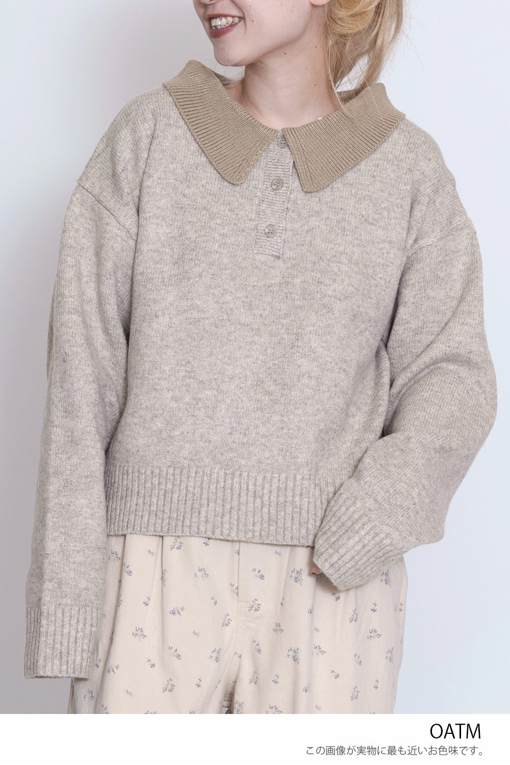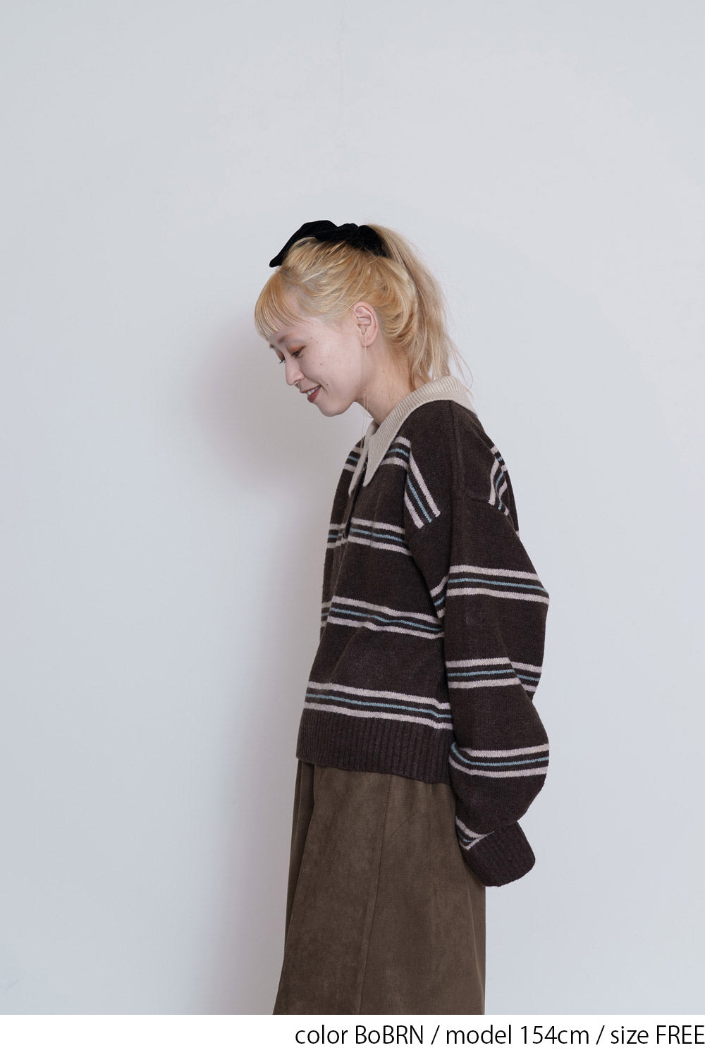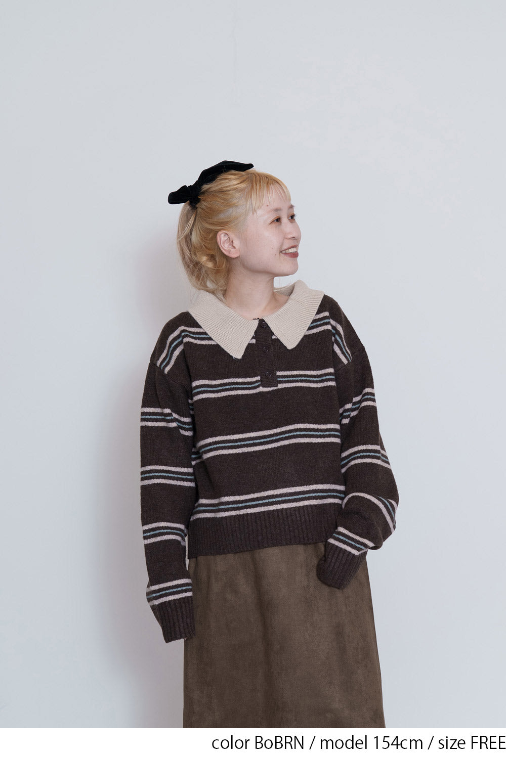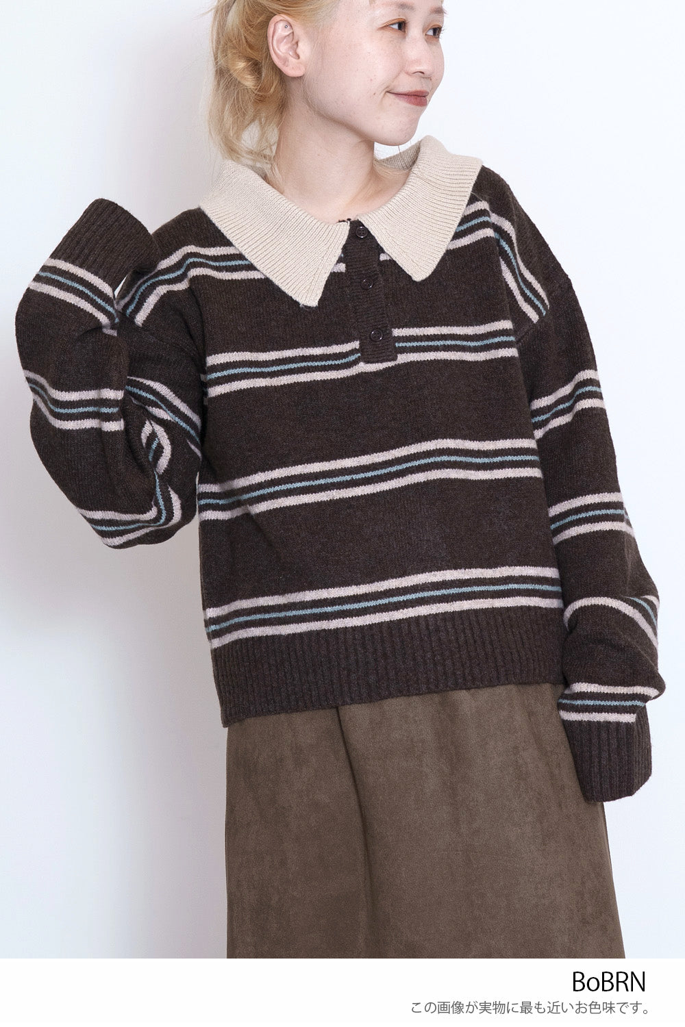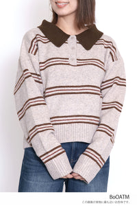 衿配色が映える、アルパカタッチのボーダーポロ。