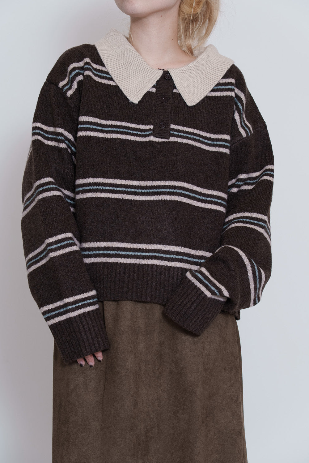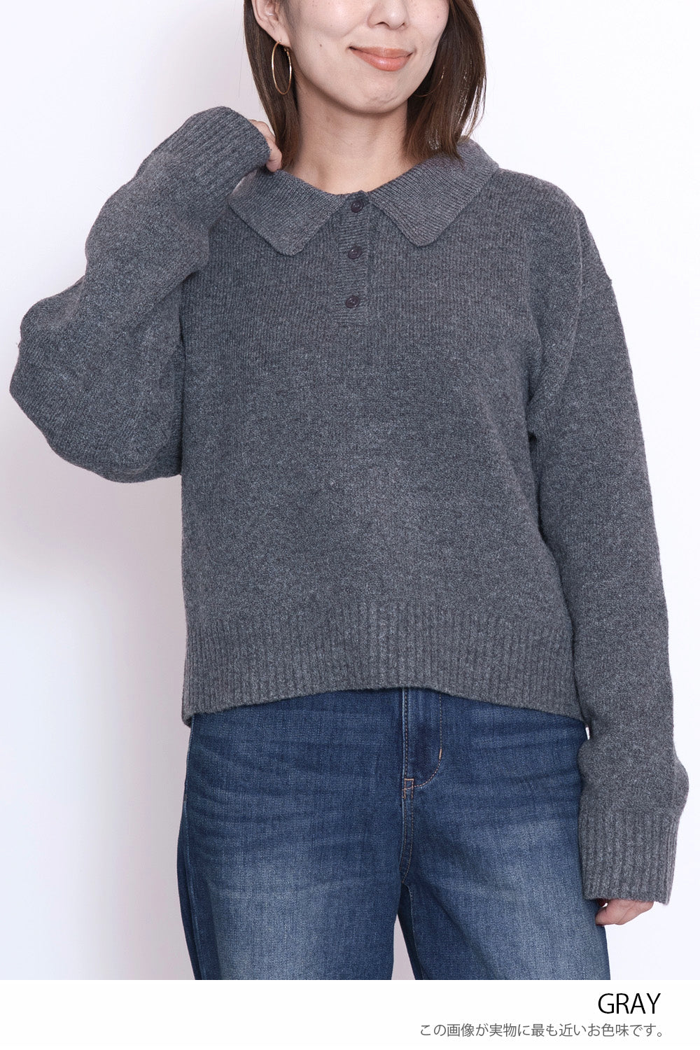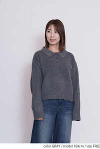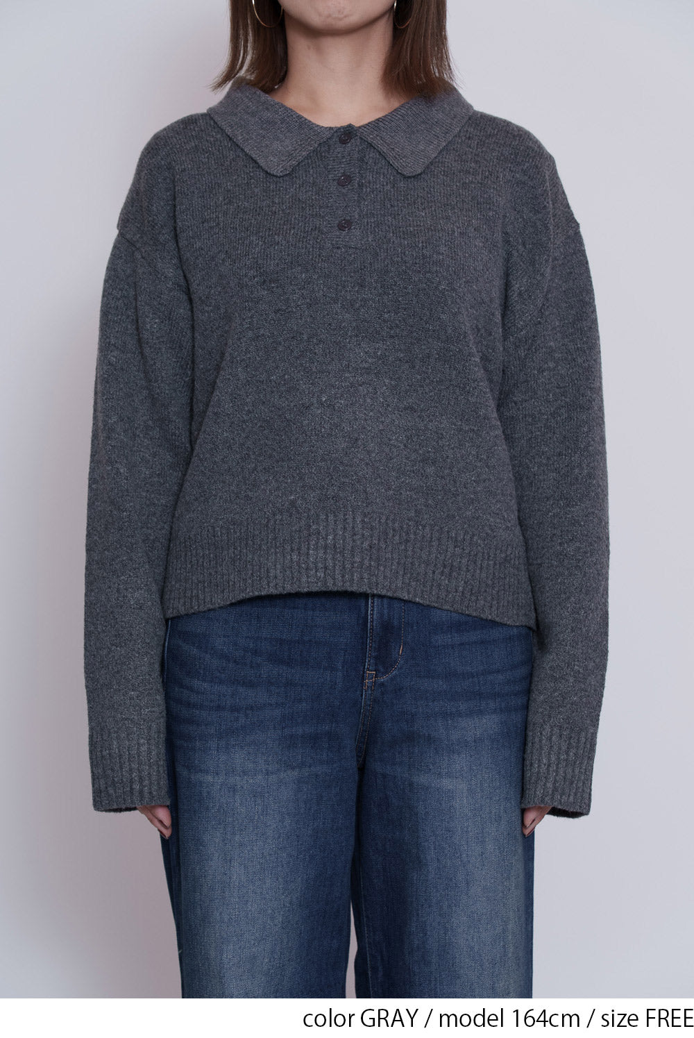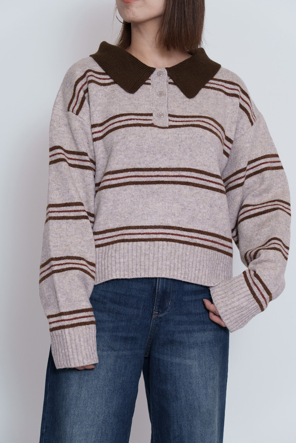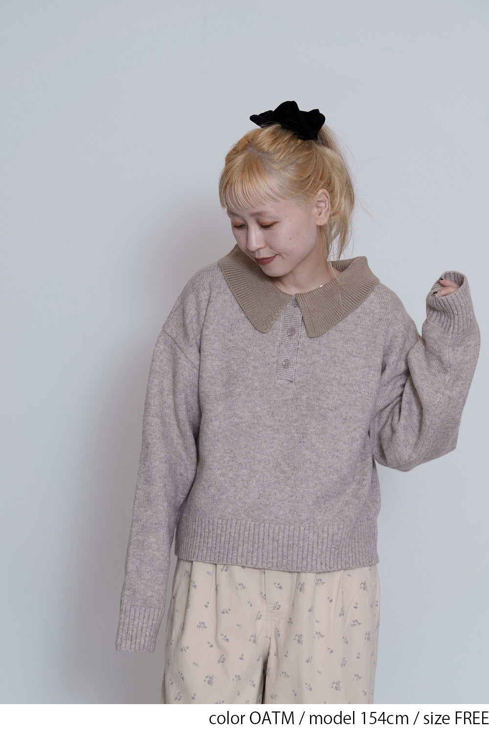 衿配色が映える、アルパカタッチのボーダーポロ。