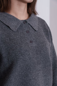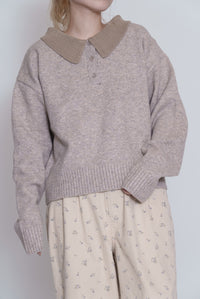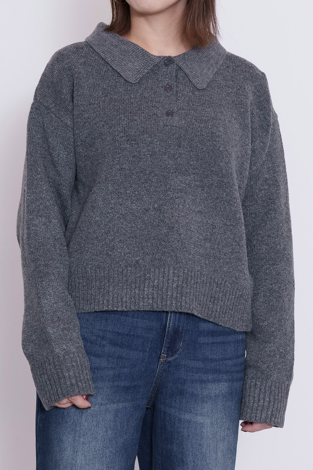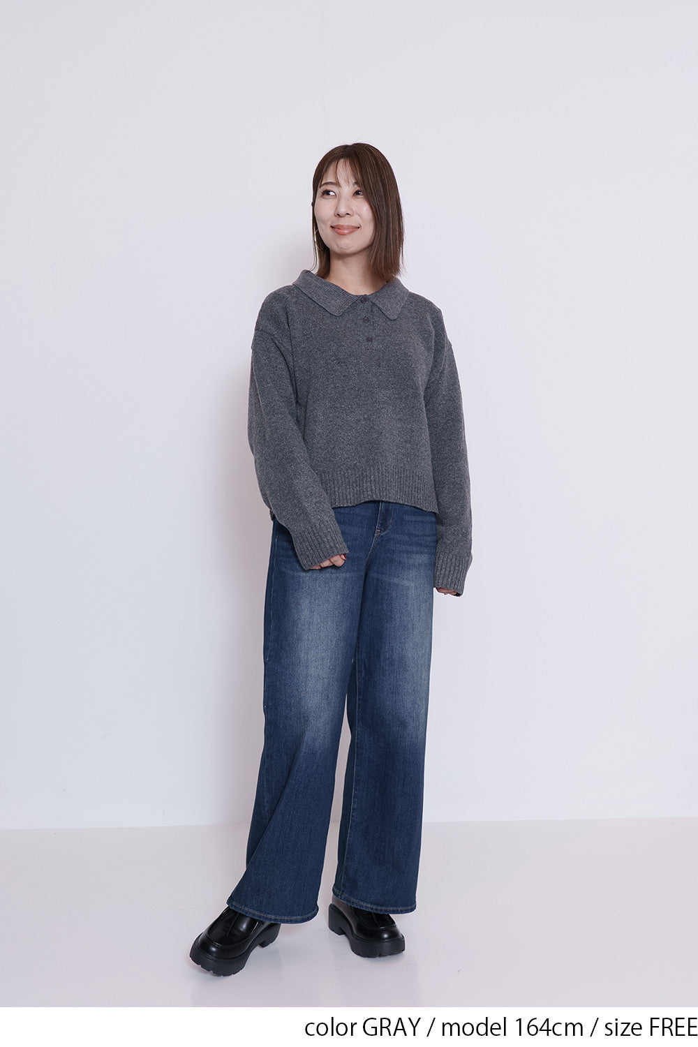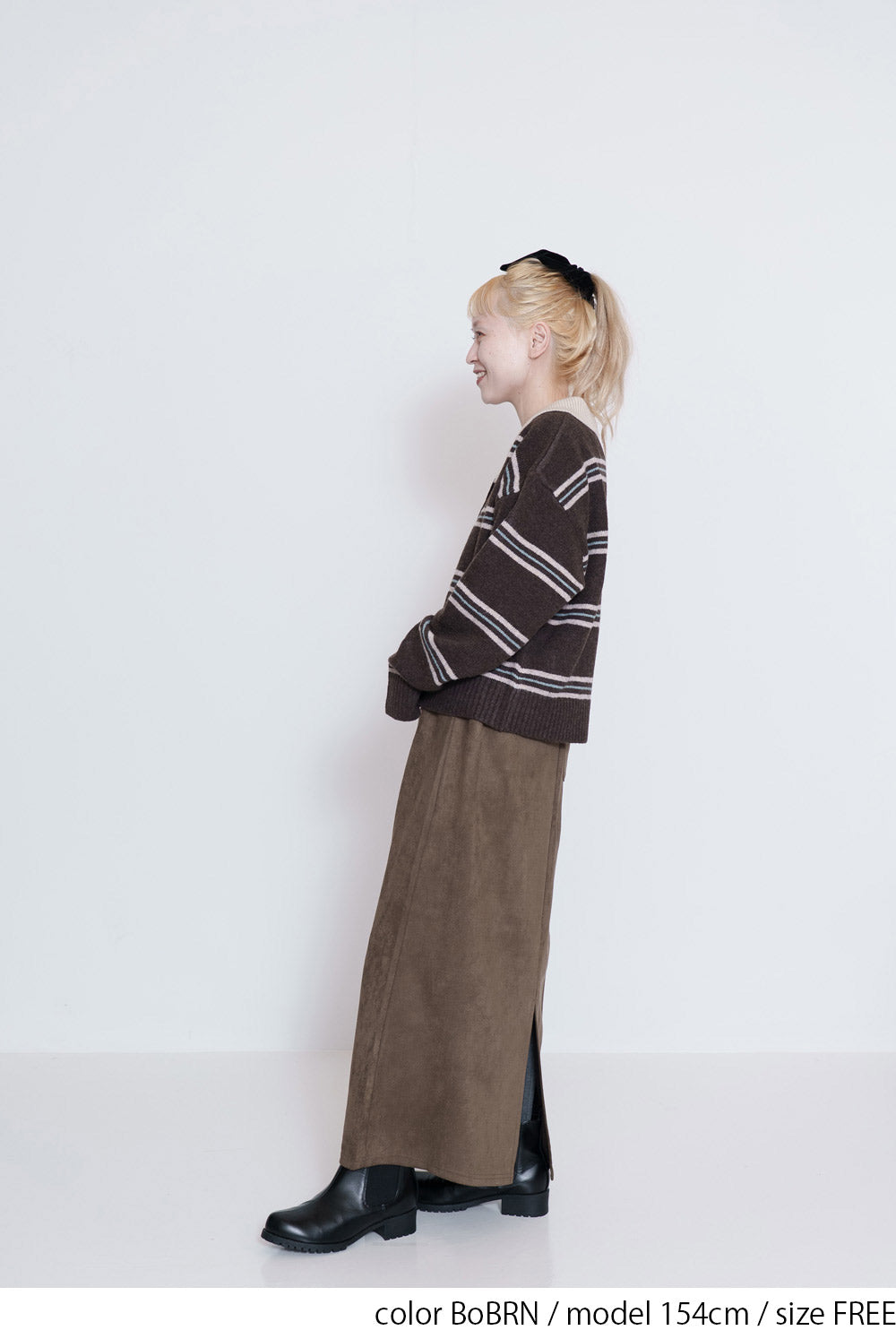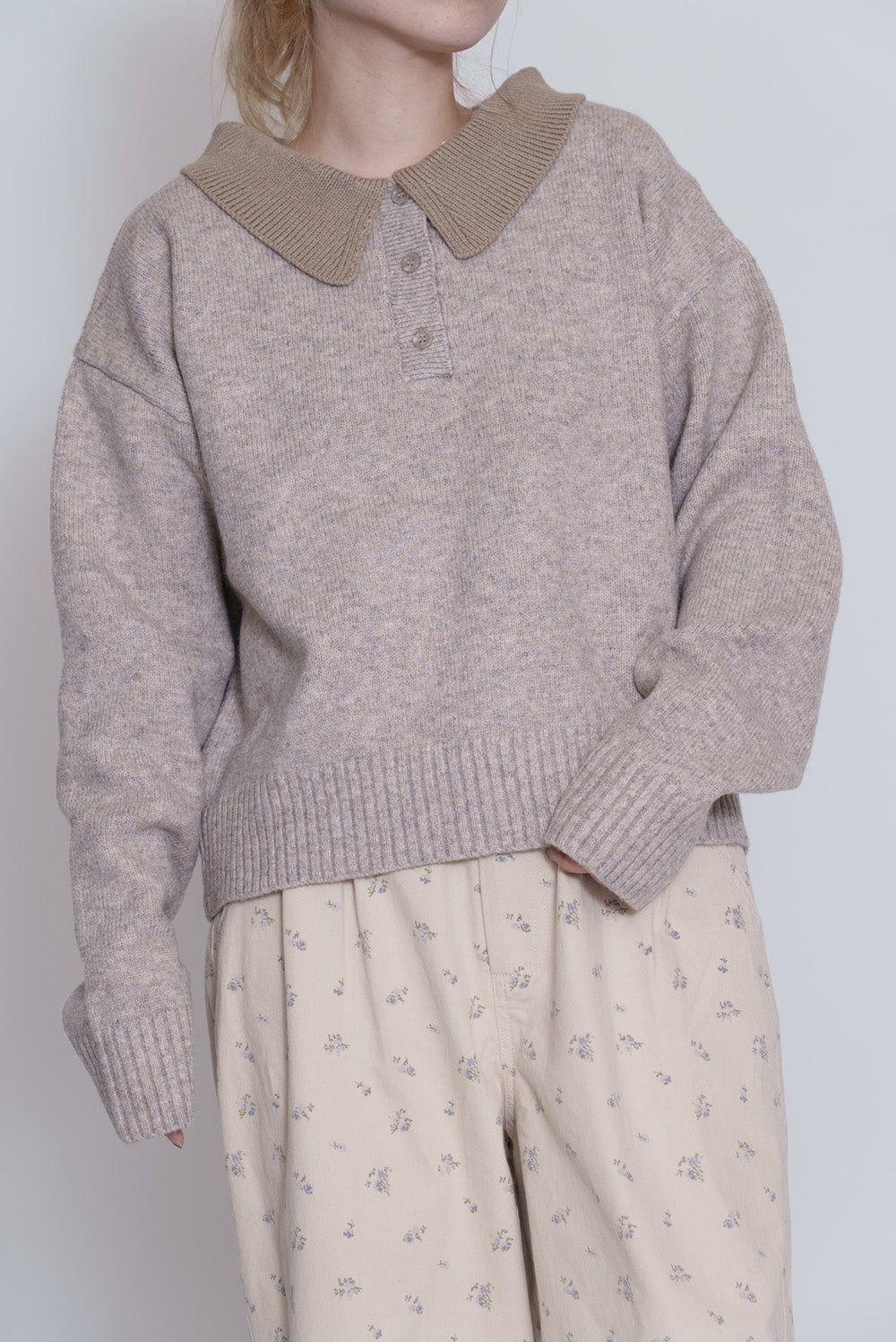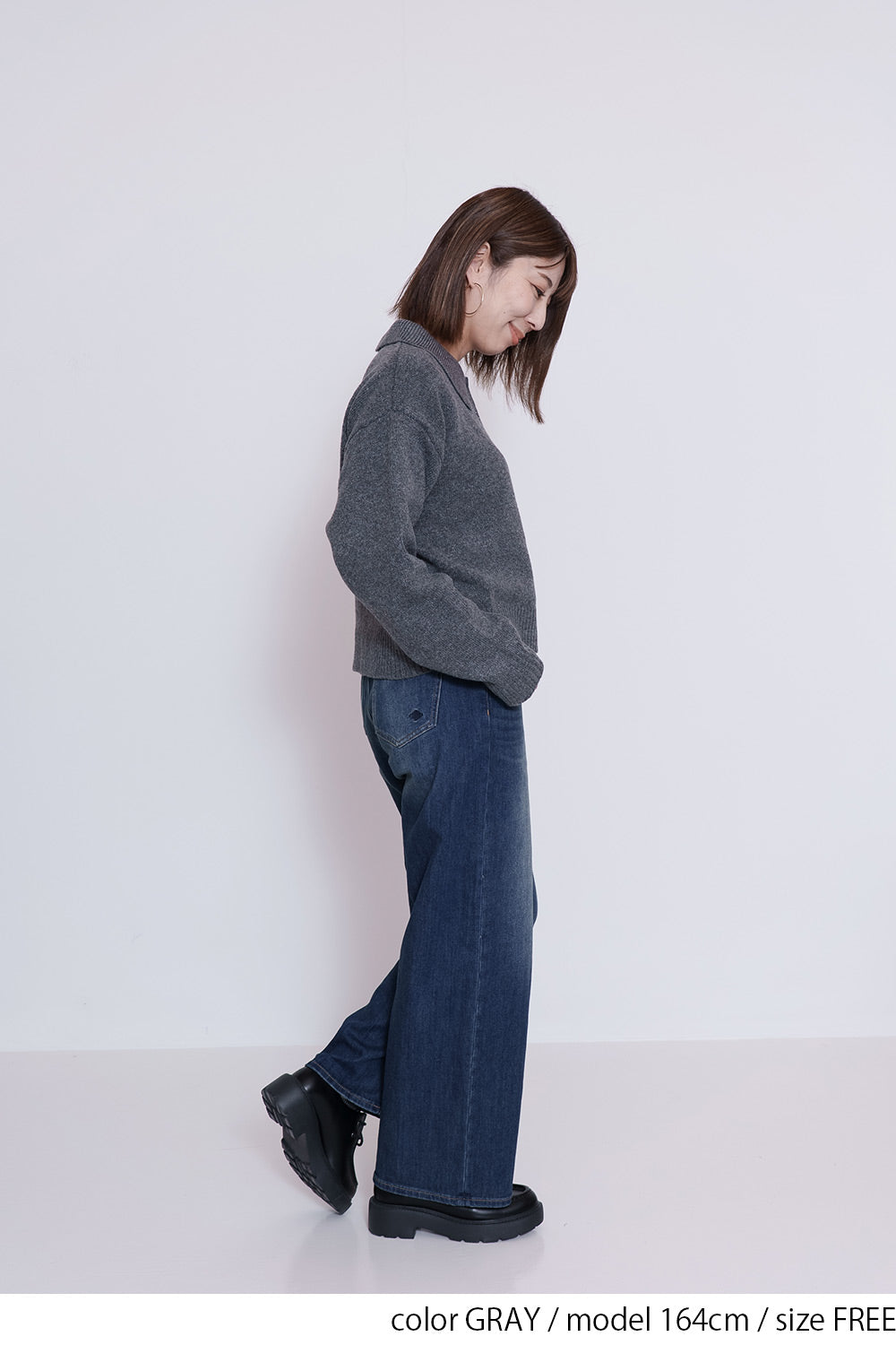 衿配色が映える、アルパカタッチのボーダーポロ。